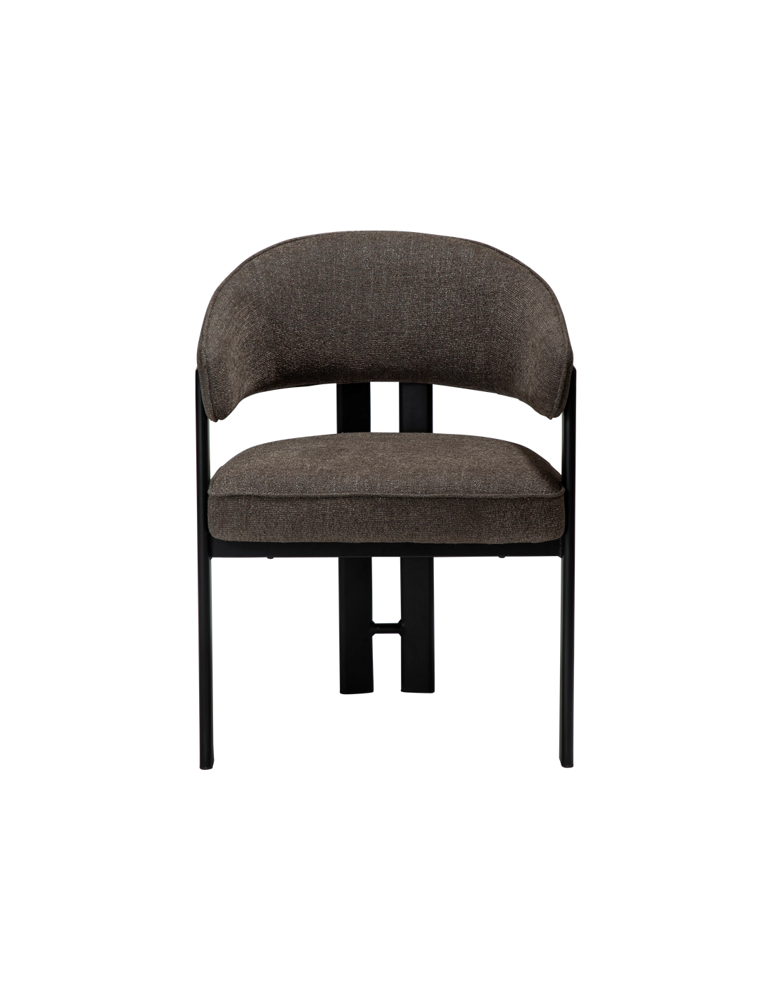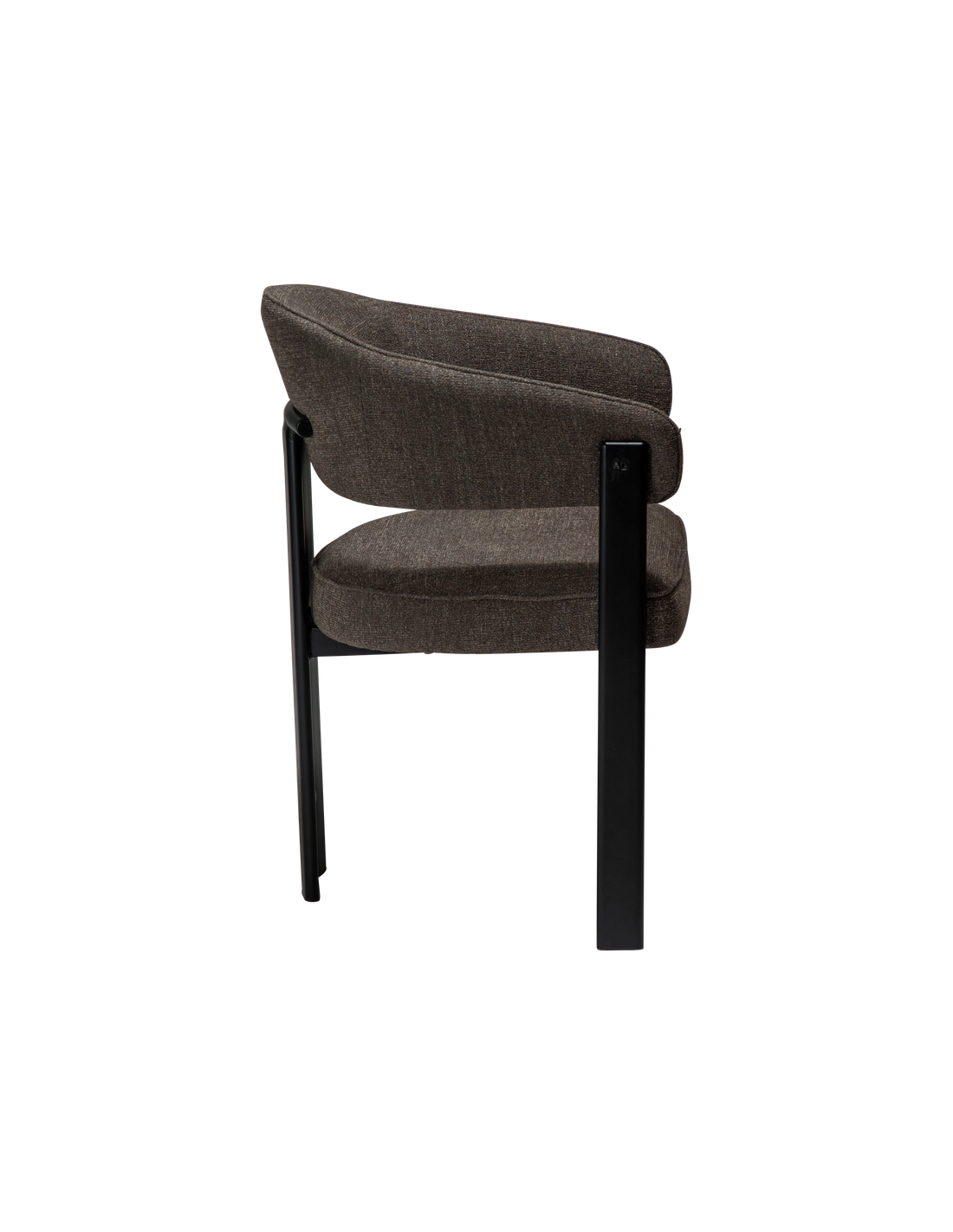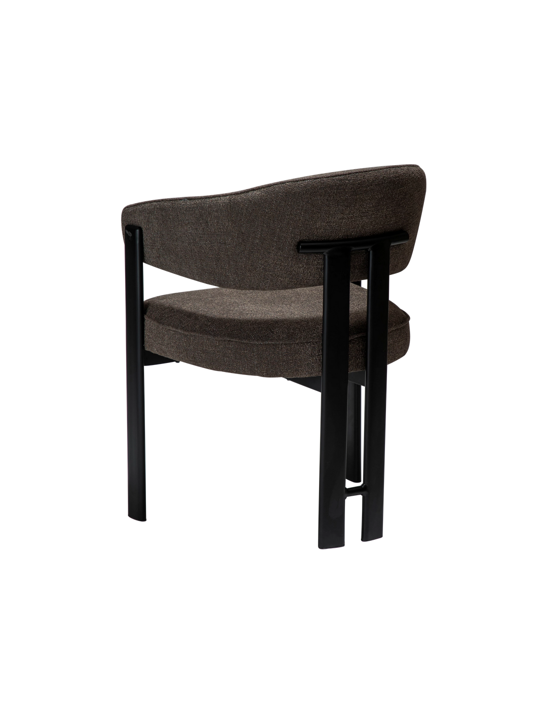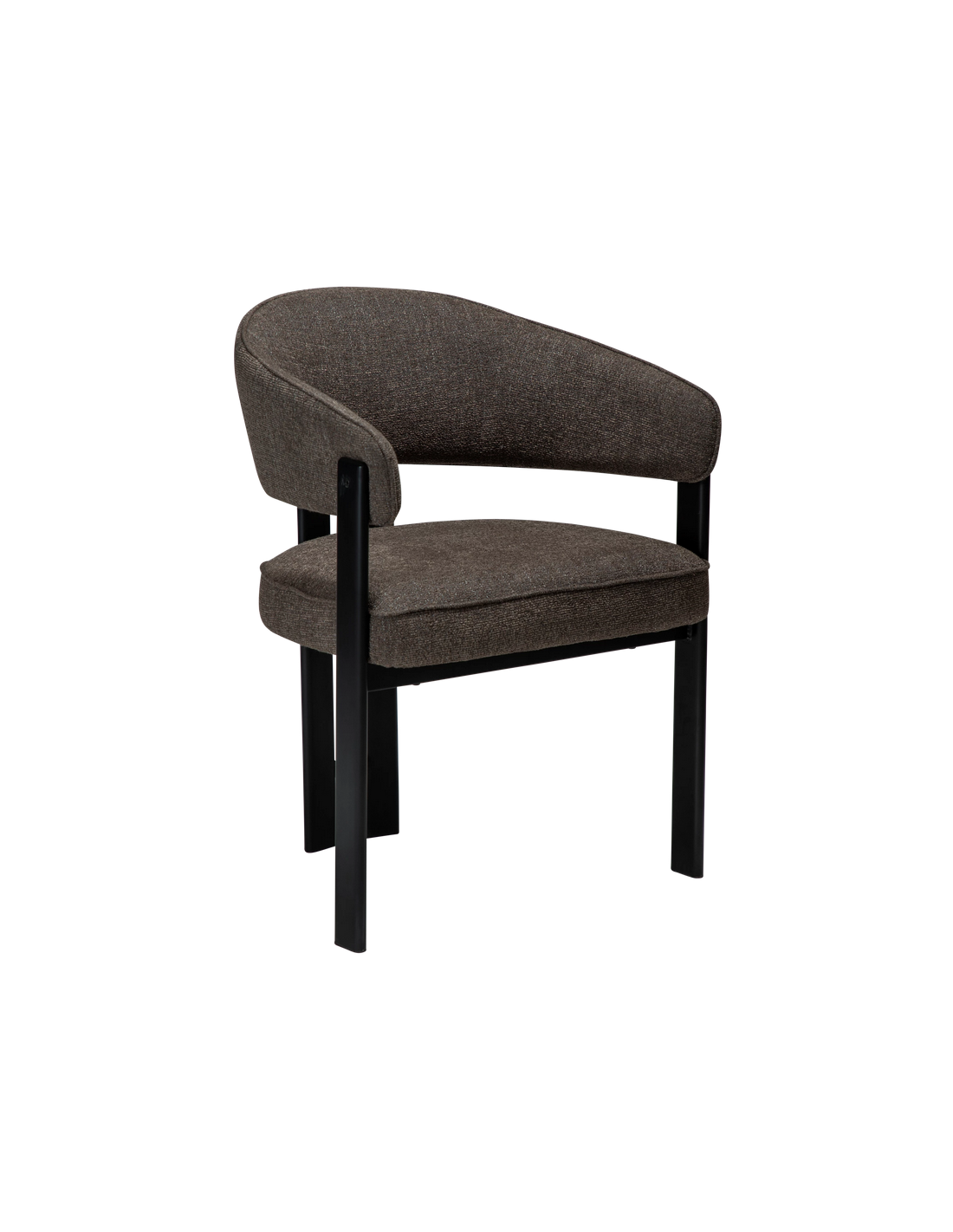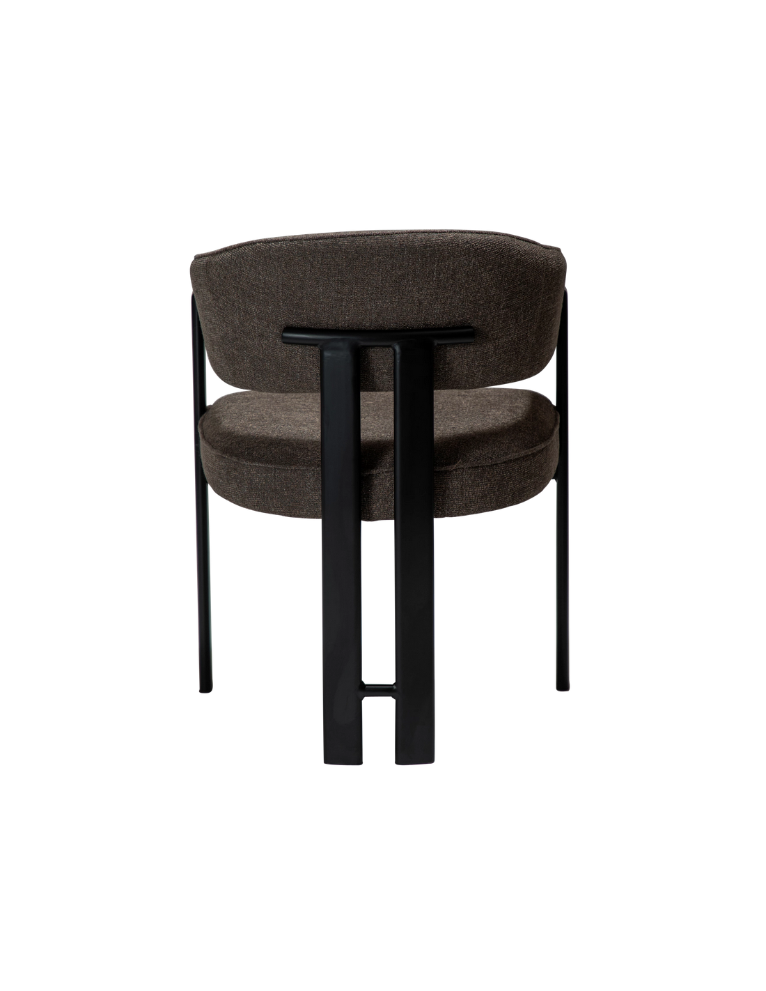 DUCT Spisebordsstol udført i et dansk design fra danske Dan-Form, fremstillet af sortlakeret metal og brun bouclé polyester. Stolen måler 81,5 cm i højden over ryggen og 60,5 x 56,5 cm i bredde og dybde og er polstret med højkvalitets skum.