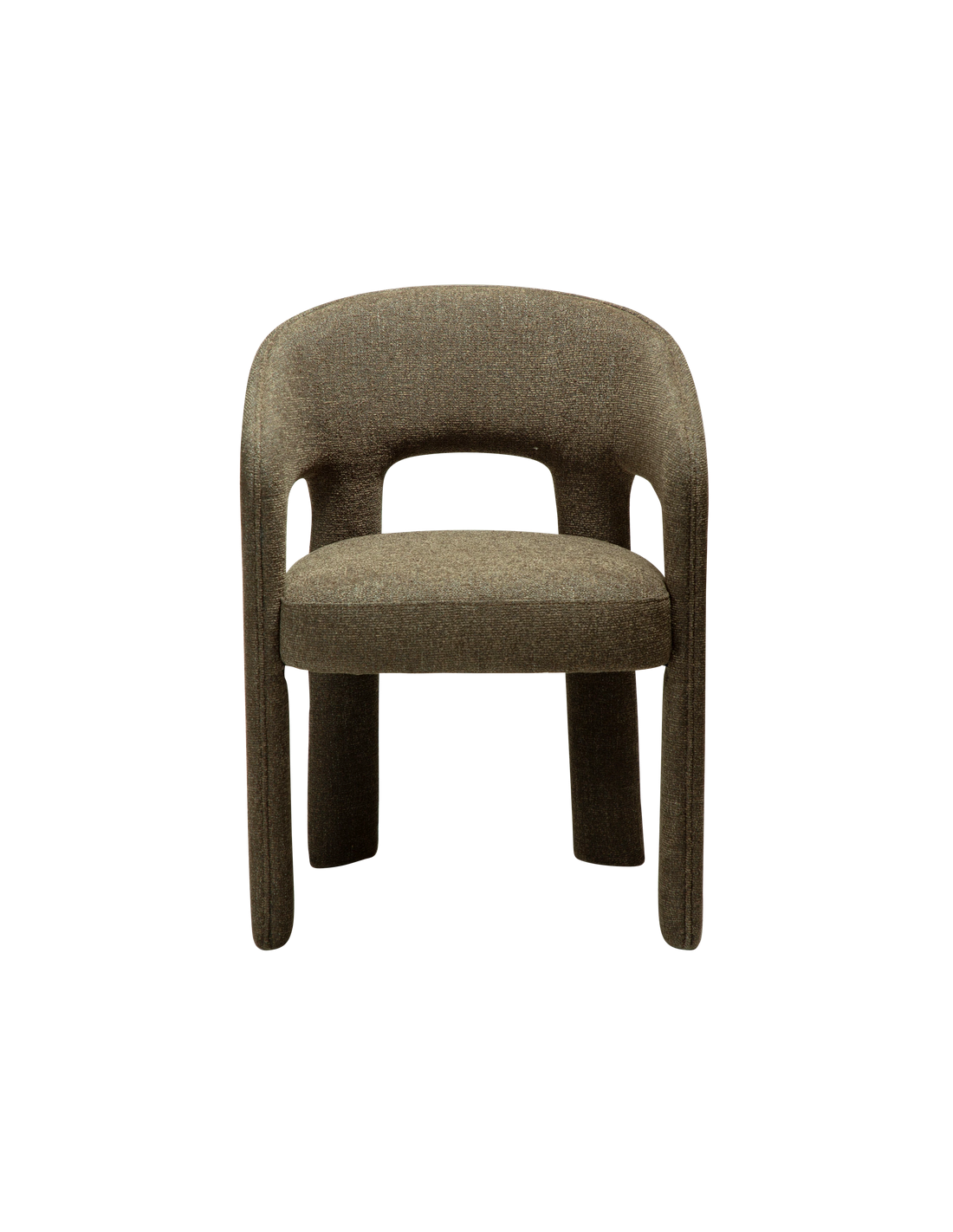SPLENDOR Spisebordsstol udført i et dansk design fra danske Dan-Form, fremstillet af mørk olivengrøn bouclé polyester. Stolen måler 79 cm i højden over ryggen og 58 x 58 cm i bredde og dybde og er polstret med højkvalitets skum.