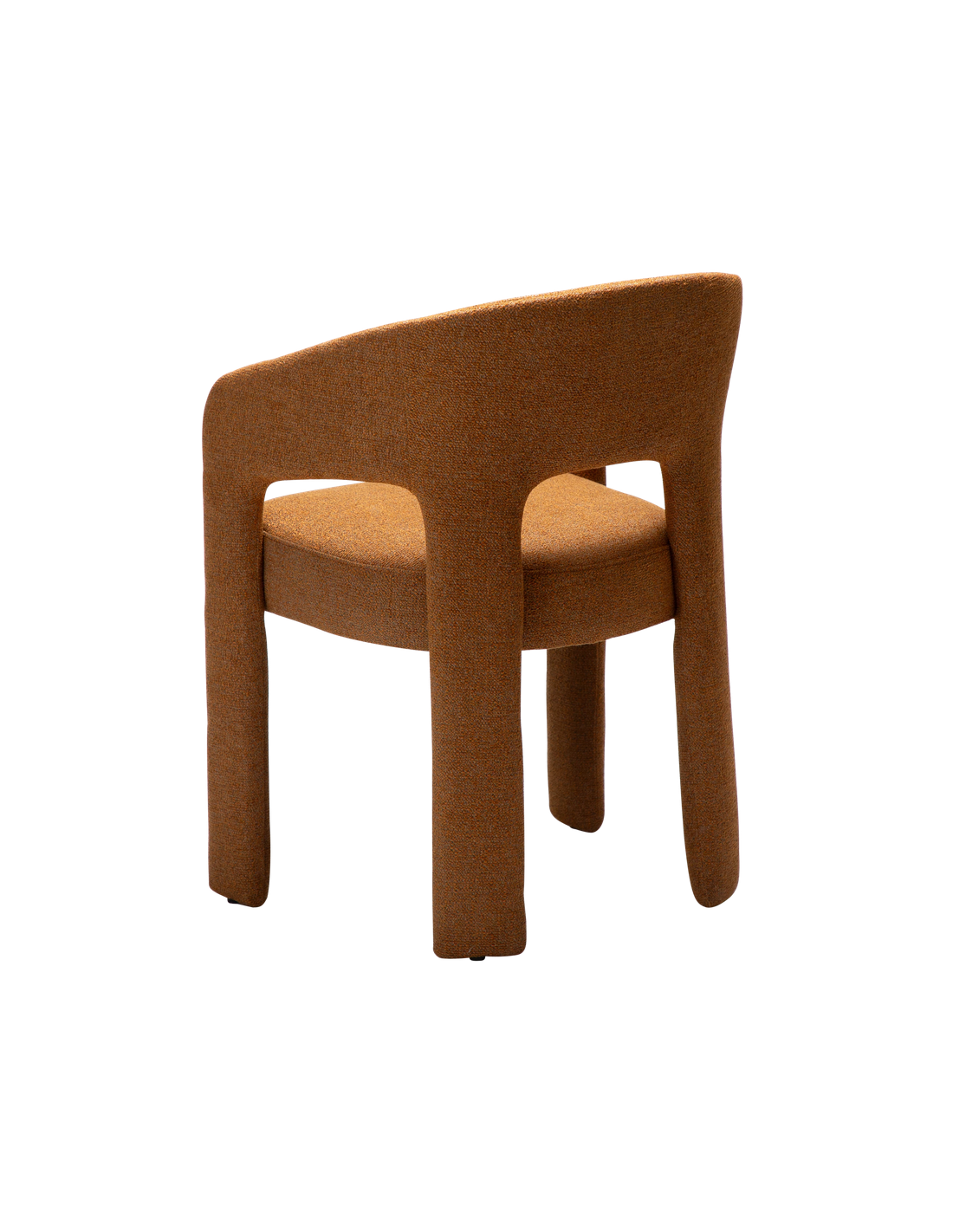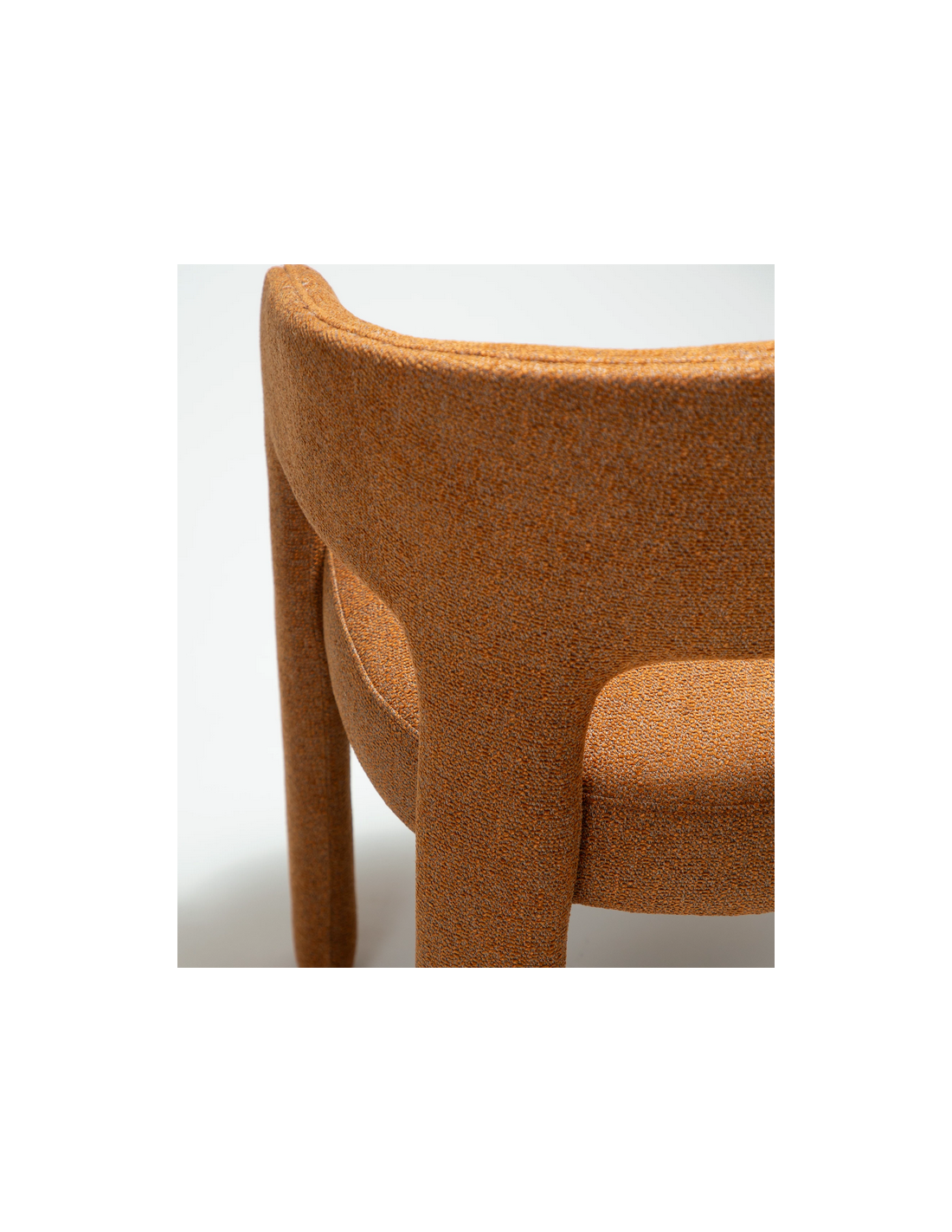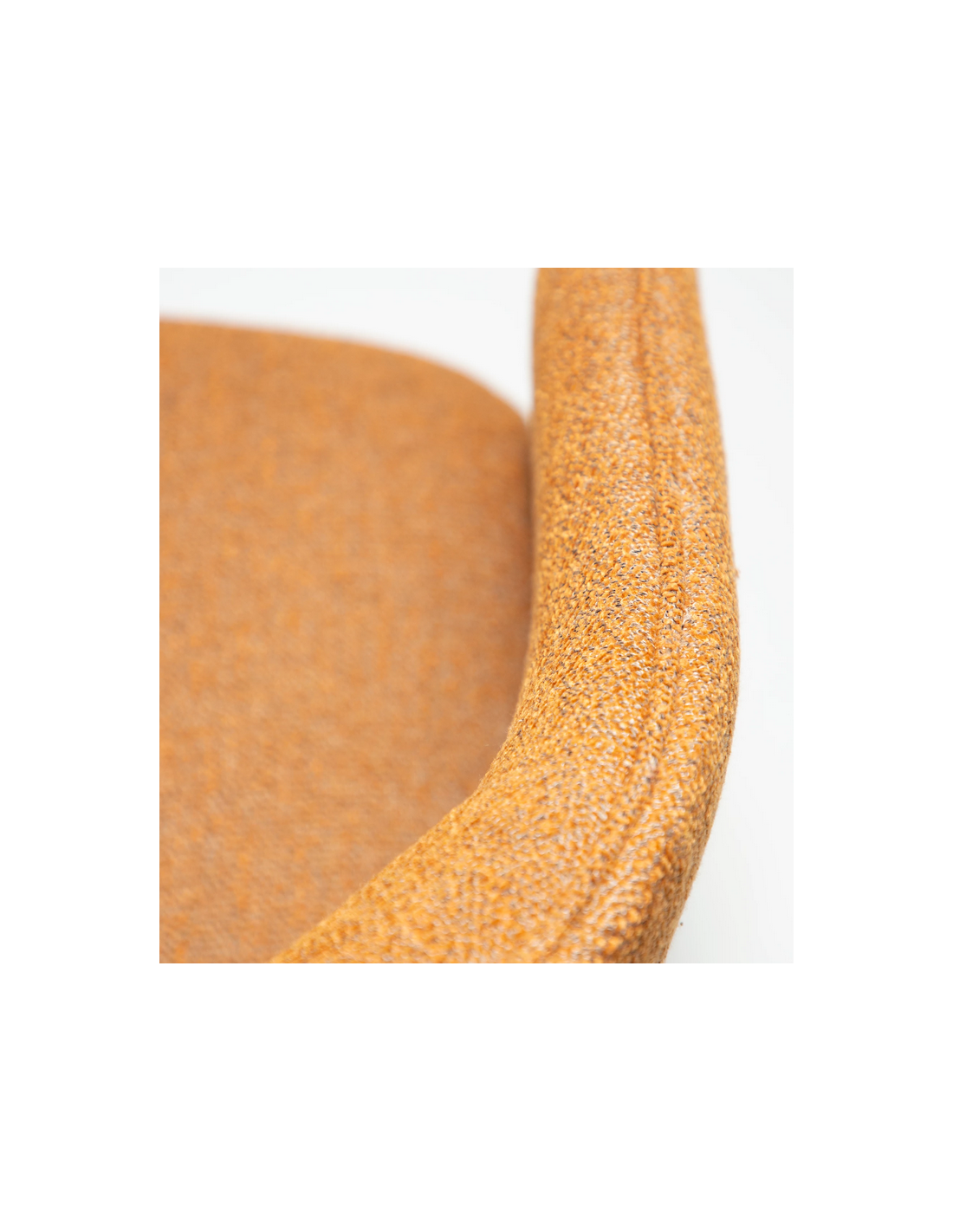 SPLENDOR Spisebordsstol udført i et dansk design fra danske Dan-Form, fremstillet af græskar farvet bouclé polyester. Stolen måler 79 cm i højden over ryggen og 58 x 58 cm i bredde og dybde og er polstret med højkvalitets skum.