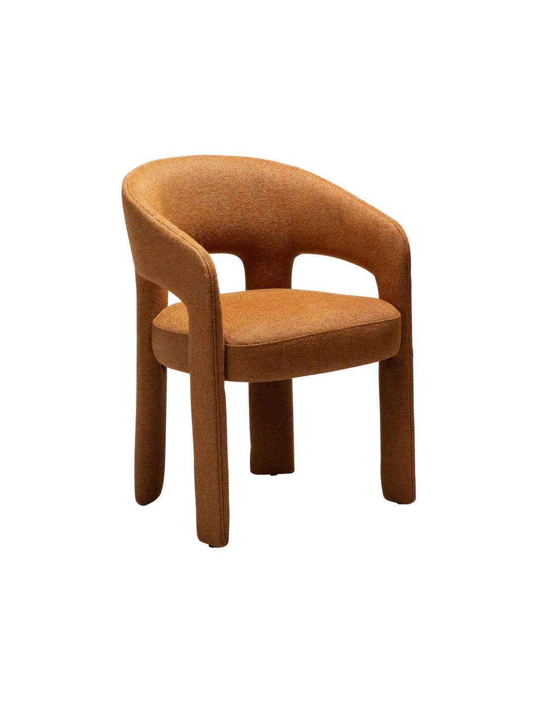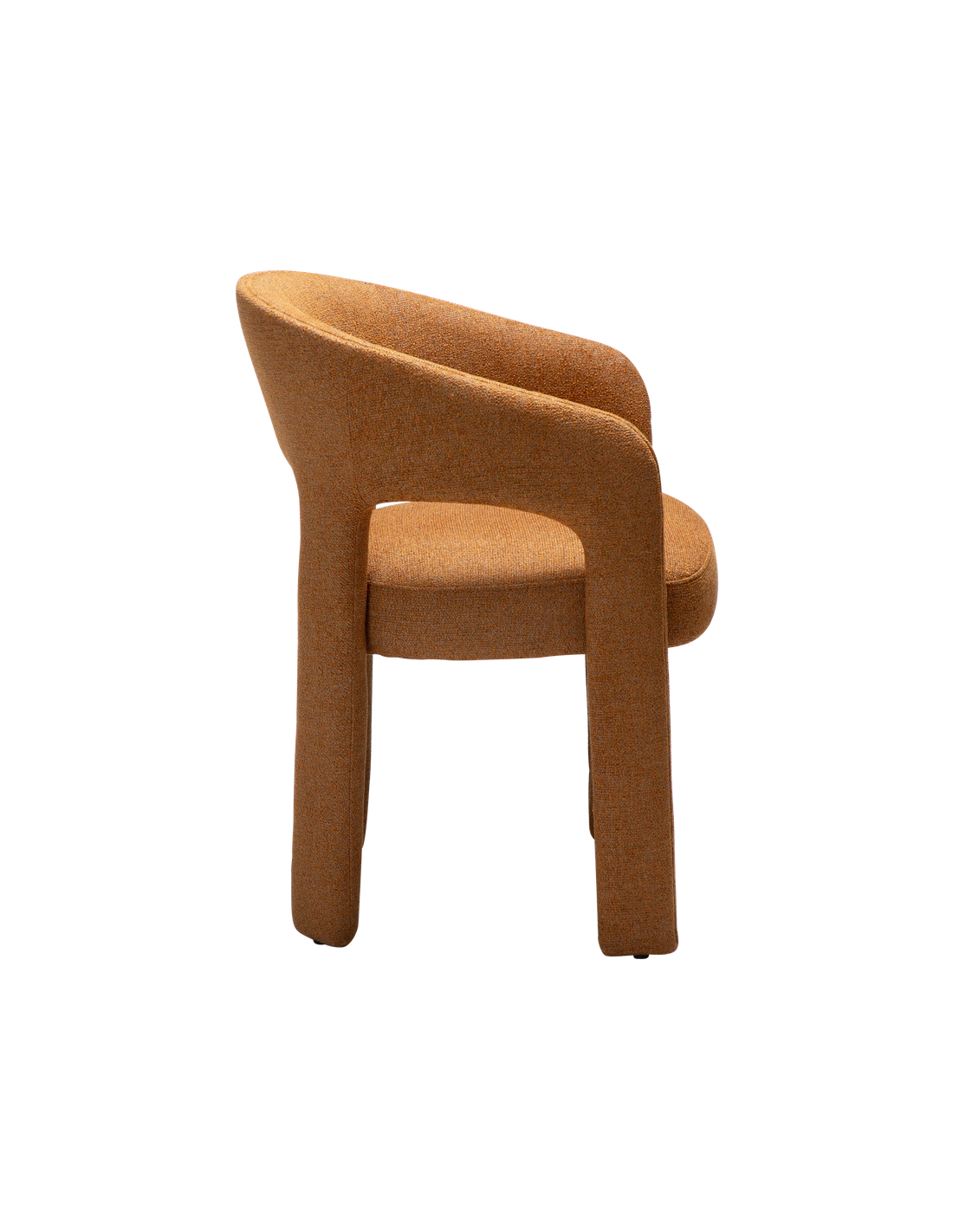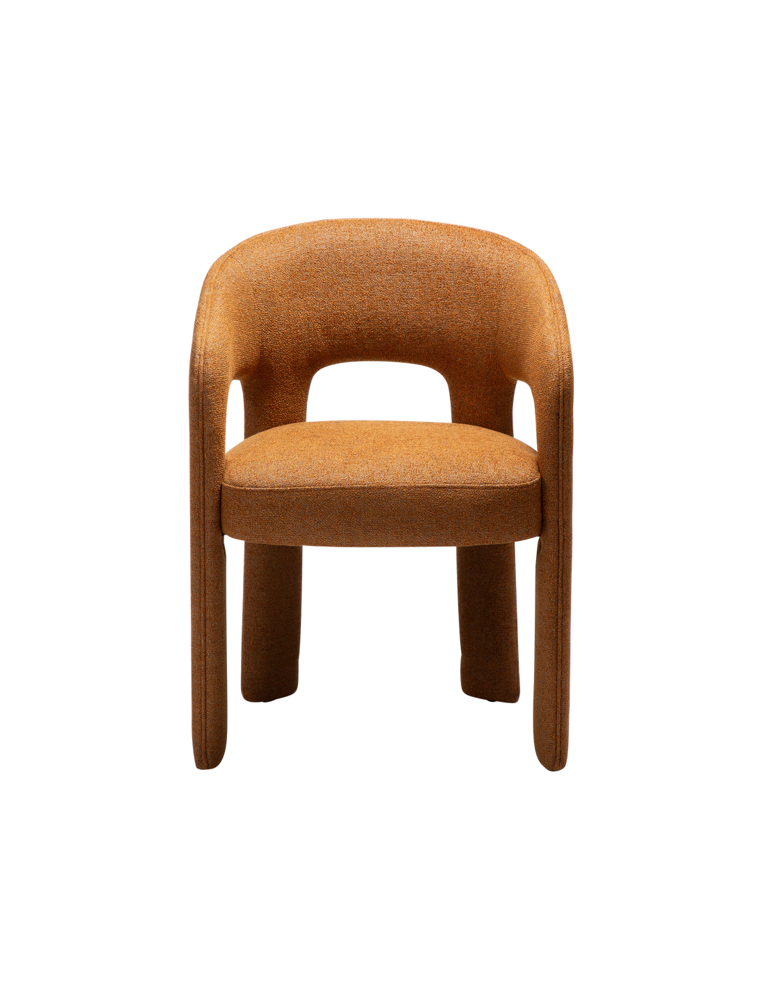 SPLENDOR Spisebordsstol udført i et dansk design fra danske Dan-Form, fremstillet af græskar farvet bouclé polyester. Stolen måler 79 cm i højden over ryggen og 58 x 58 cm i bredde og dybde og er polstret med højkvalitets skum.