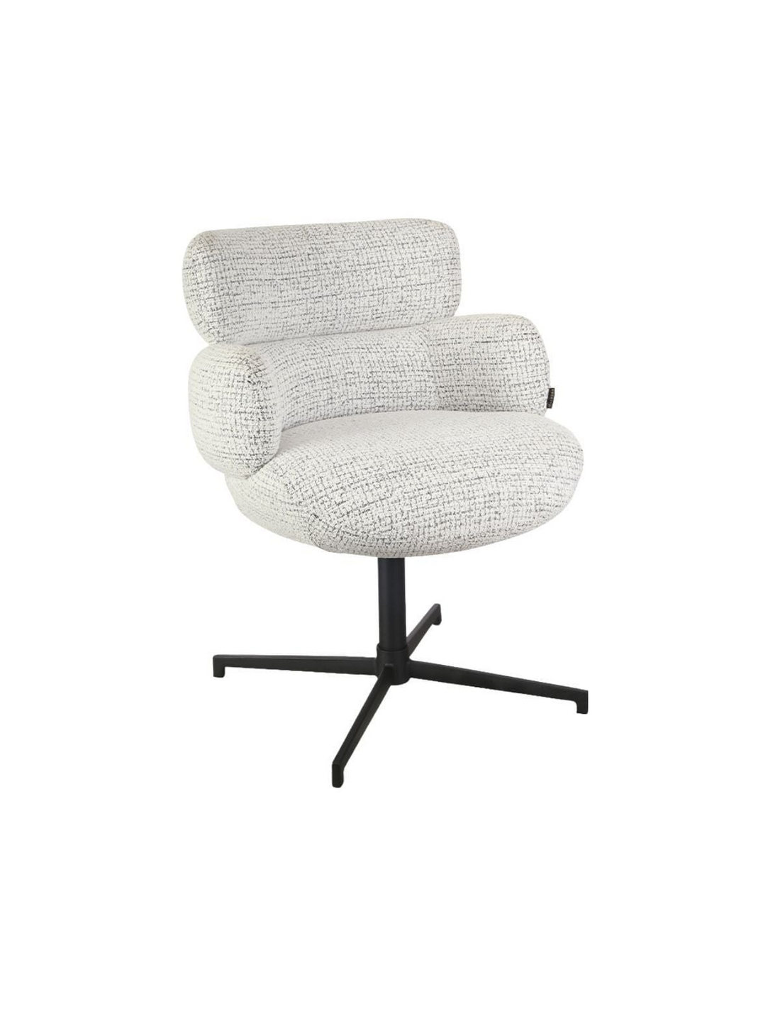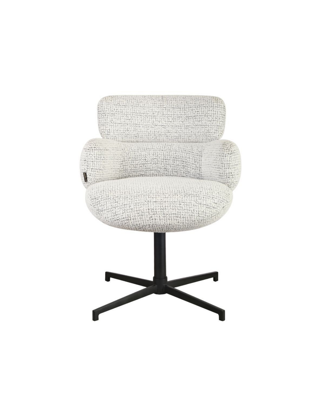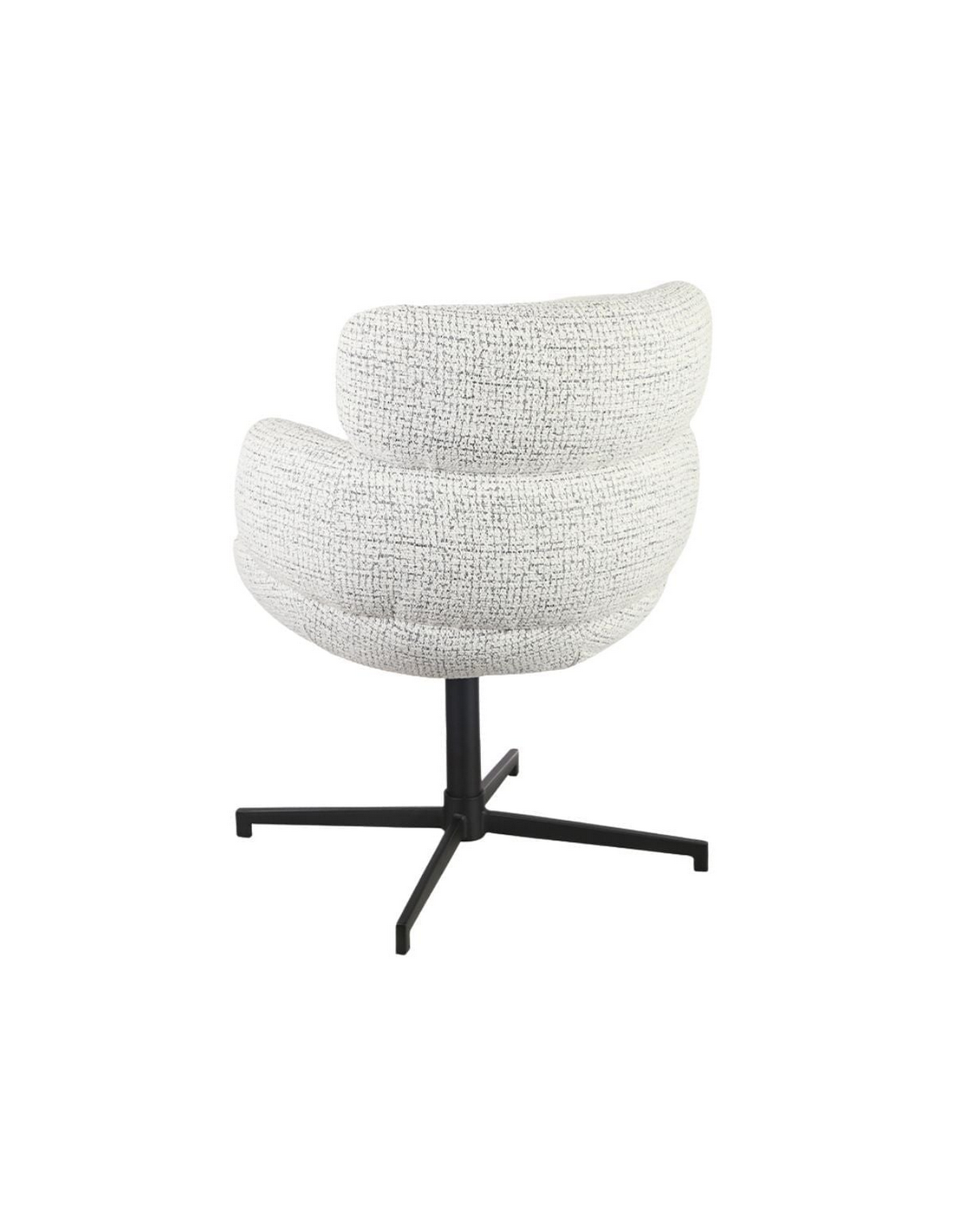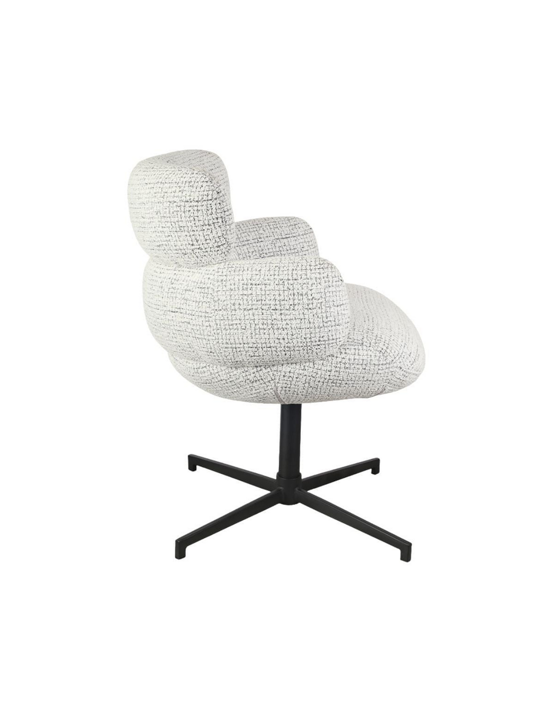 COCO Spisebordsstol med drejefod og armlæn udført i et Skandinavisk design af sortlakeret metal og off-white bouclé polyester. Spisebordsstolen måler 83,5 cm i højden over ryggen og med en siddehøjde på 51 cm.
