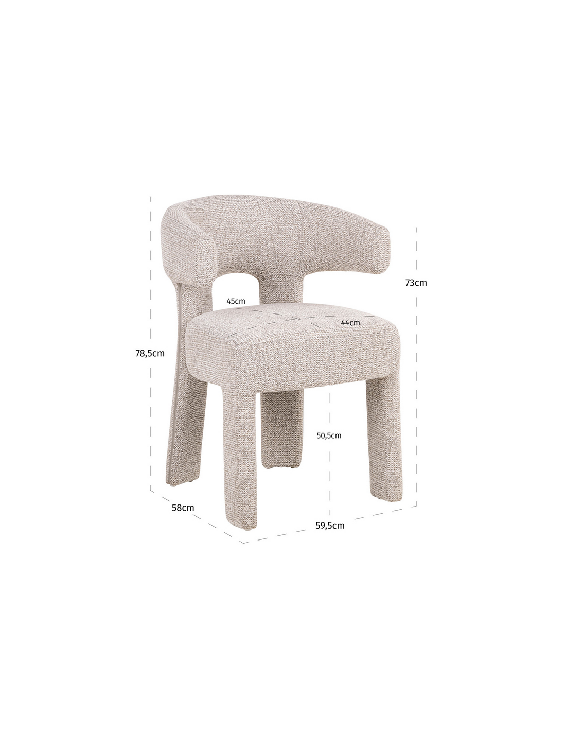 NERIO Spisebordsstol udført i et design fra hollandske Richmond Interiors i naturfarvet polyester. Stolen måler 78,5 cm i højden over ryggen og 59,5 x 58 cm i bredde og dybde.