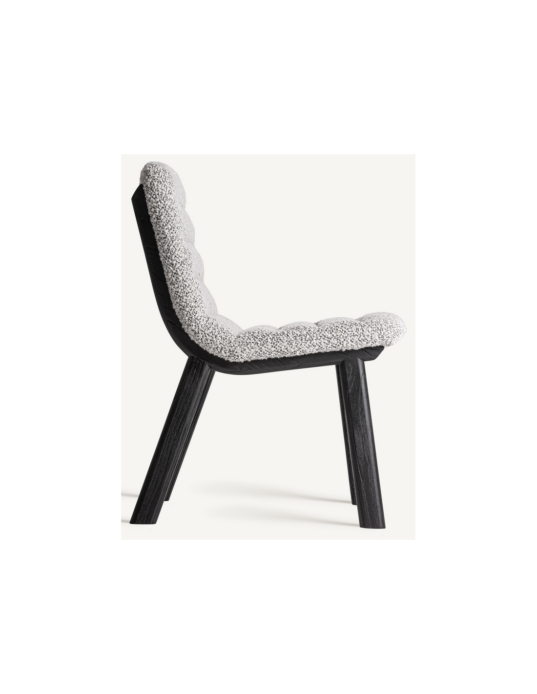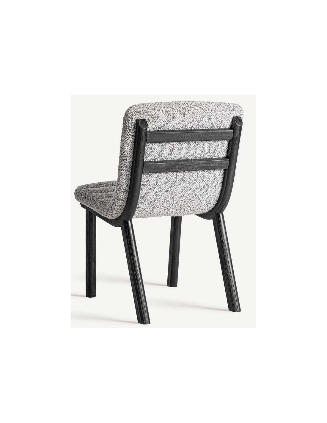 JACQUARD Spisebordsstol udført i et design, fremstillet af sortlakeret mangotræ og grå bouclé polyester. Stolen måler 80 cm i højden over ryggen og 47 cm i siddehøjden.