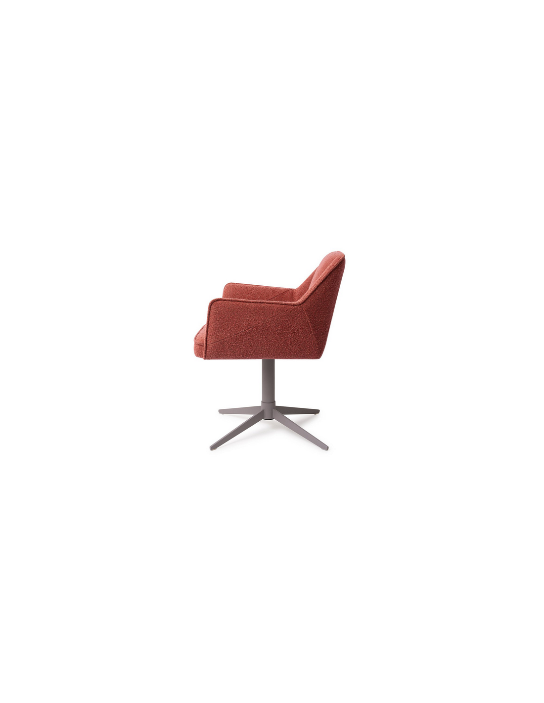 Tome spisebordsstol med armlæn og drejefod, udført i et moderne design med stel i grålakeret stål og sæde i saffron rød polyester. Stolen måler 80 cm i højden over ryggen og med siddehøjde på 48 cm.