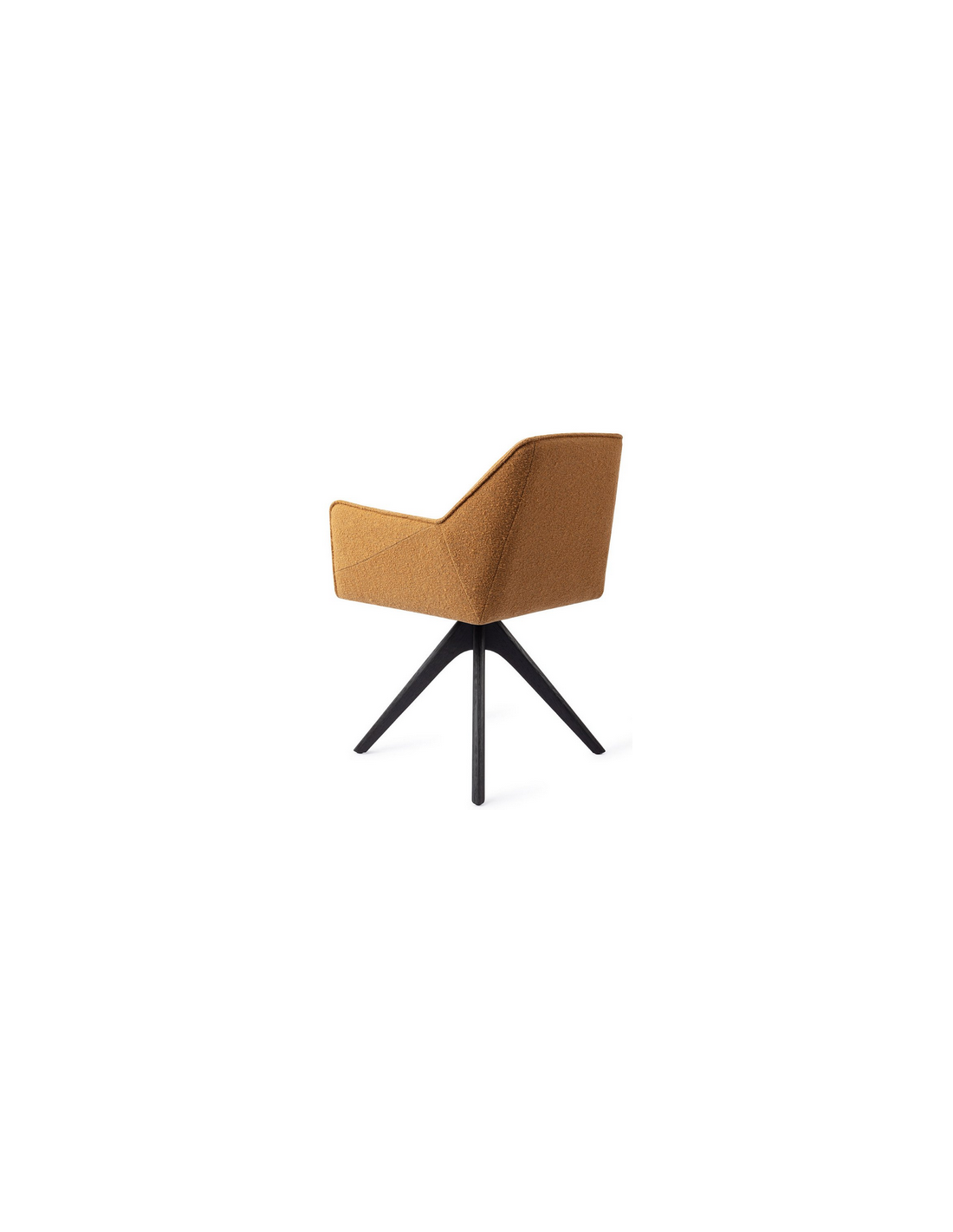 Tome spisebordsstol med armlæn og drejefod, udført i et moderne design med stel i sortlakeret egetræ og sæde i kamelbrun polyester. Stolen måler 80 cm i højden over ryggen og med siddehøjde på 48 cm.