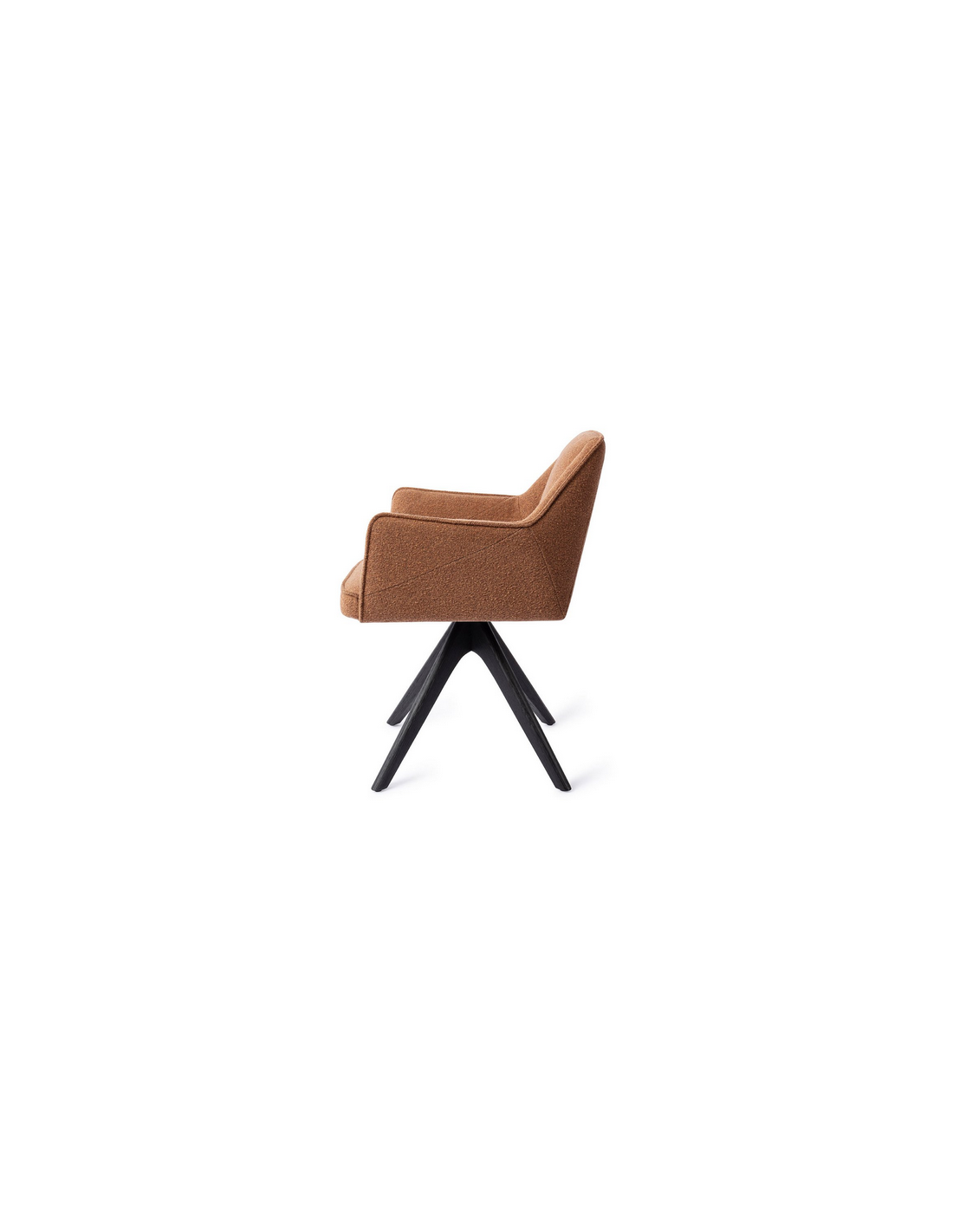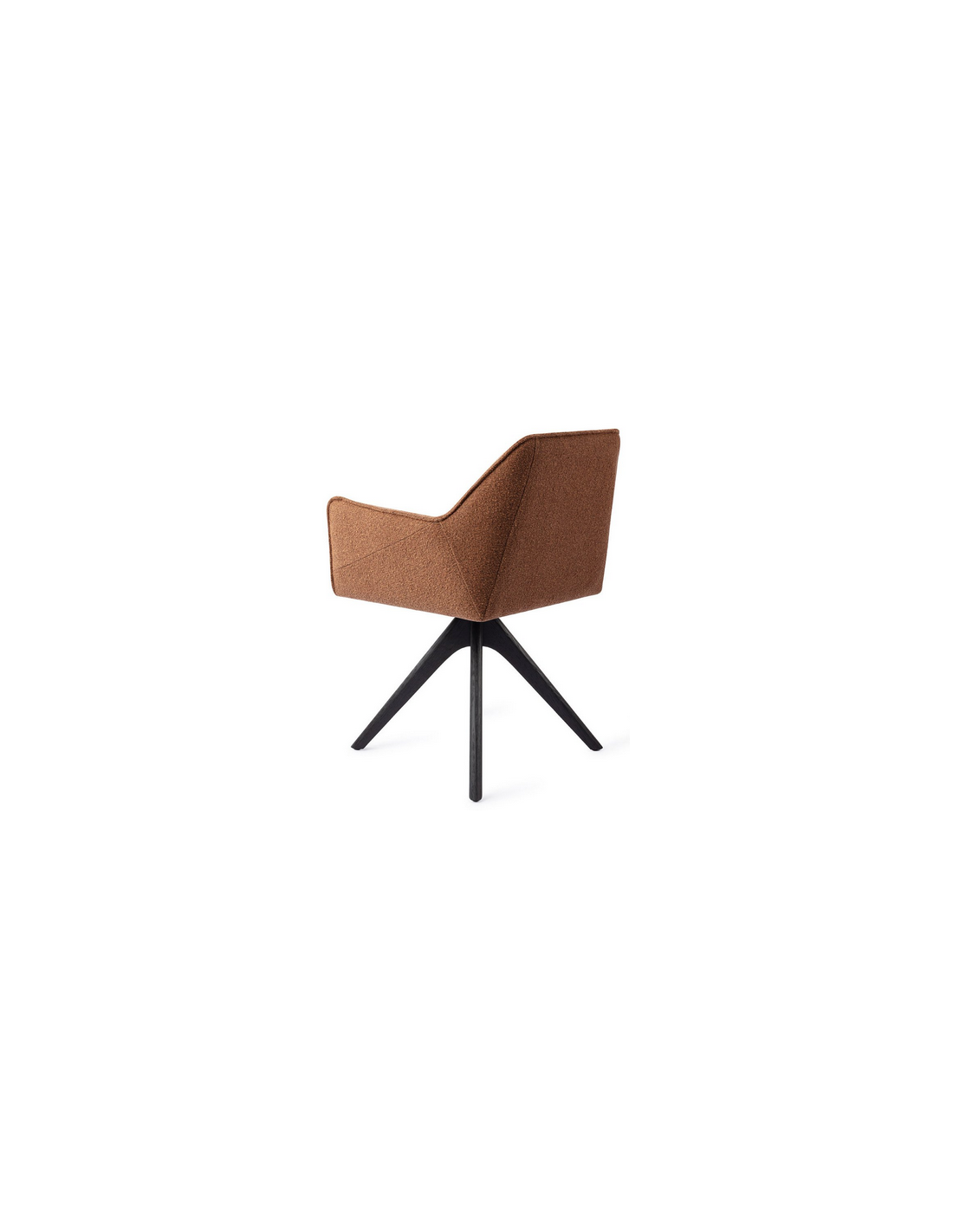 Tome spisebordsstol med armlæn og drejefod, udført i et moderne design med stel i sortlakeret egetræ og sæde i kanelbrun polyester. Stolen måler 80 cm i højden over ryggen og med siddehøjde på 48 cm.