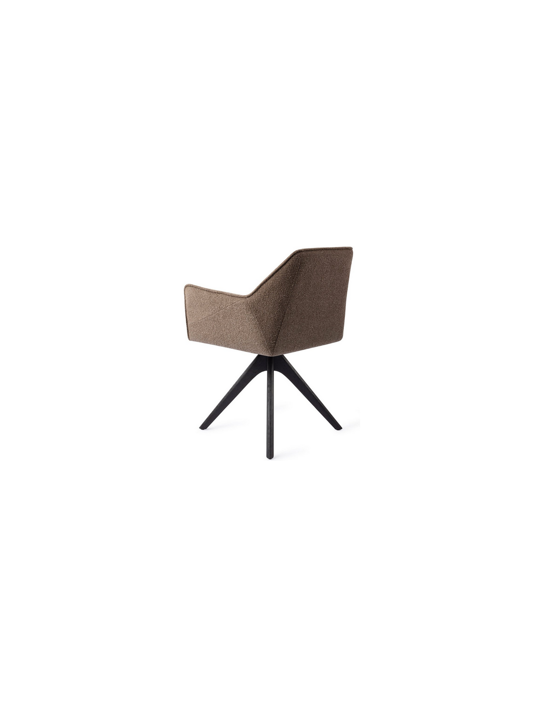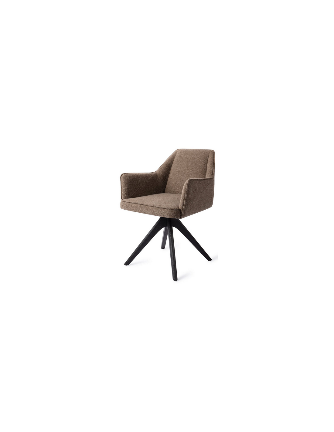 Tome spisebordsstol med armlæn og drejefod, udført i et moderne design med stel i sortlakeret egetræ og sæde i jordbrun polyester. Stolen måler 80 cm i højden over ryggen og med siddehøjde på 48 cm.