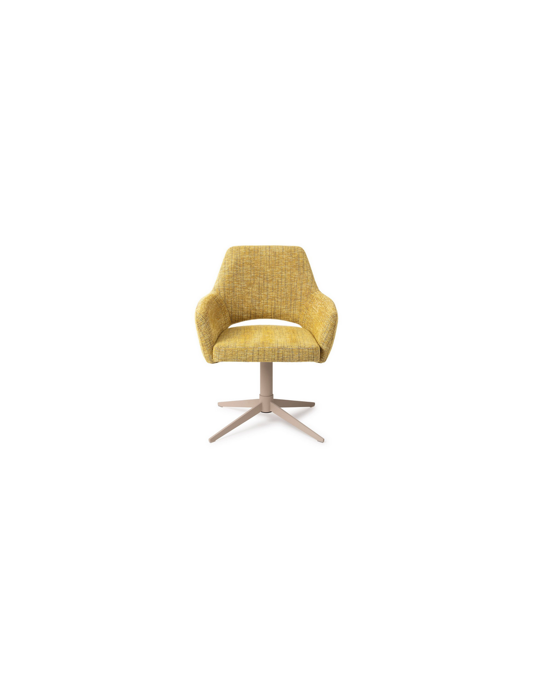 YANAI Spisebordsstol med armlæn og drejefod, udført i et moderne design med stel i beigelakeret stål og sæde i gul polyester. Stolen måler 83 cm i højden over ryggen og med siddehøjde på 49 cm.