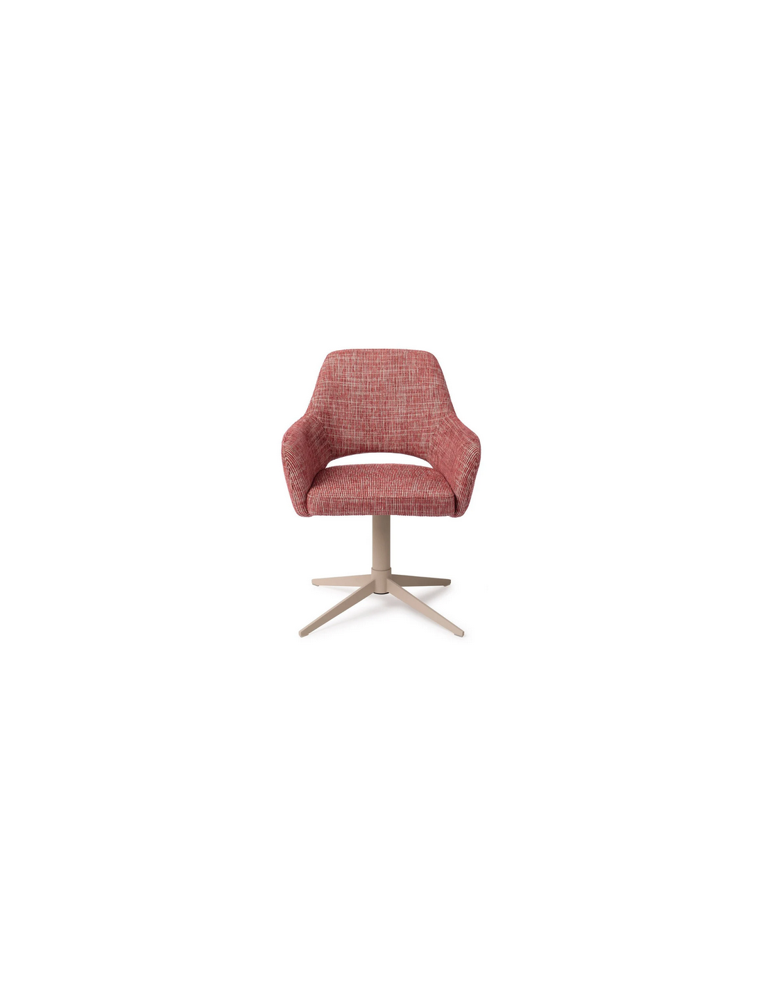 YANAI Spisebordsstol med armlæn og drejefod, udført i et moderne design med stel i beigelakeret stål og sæde i bær rød polyester. Stolen måler 83 cm i højden over ryggen og med siddehøjde på 49 cm.