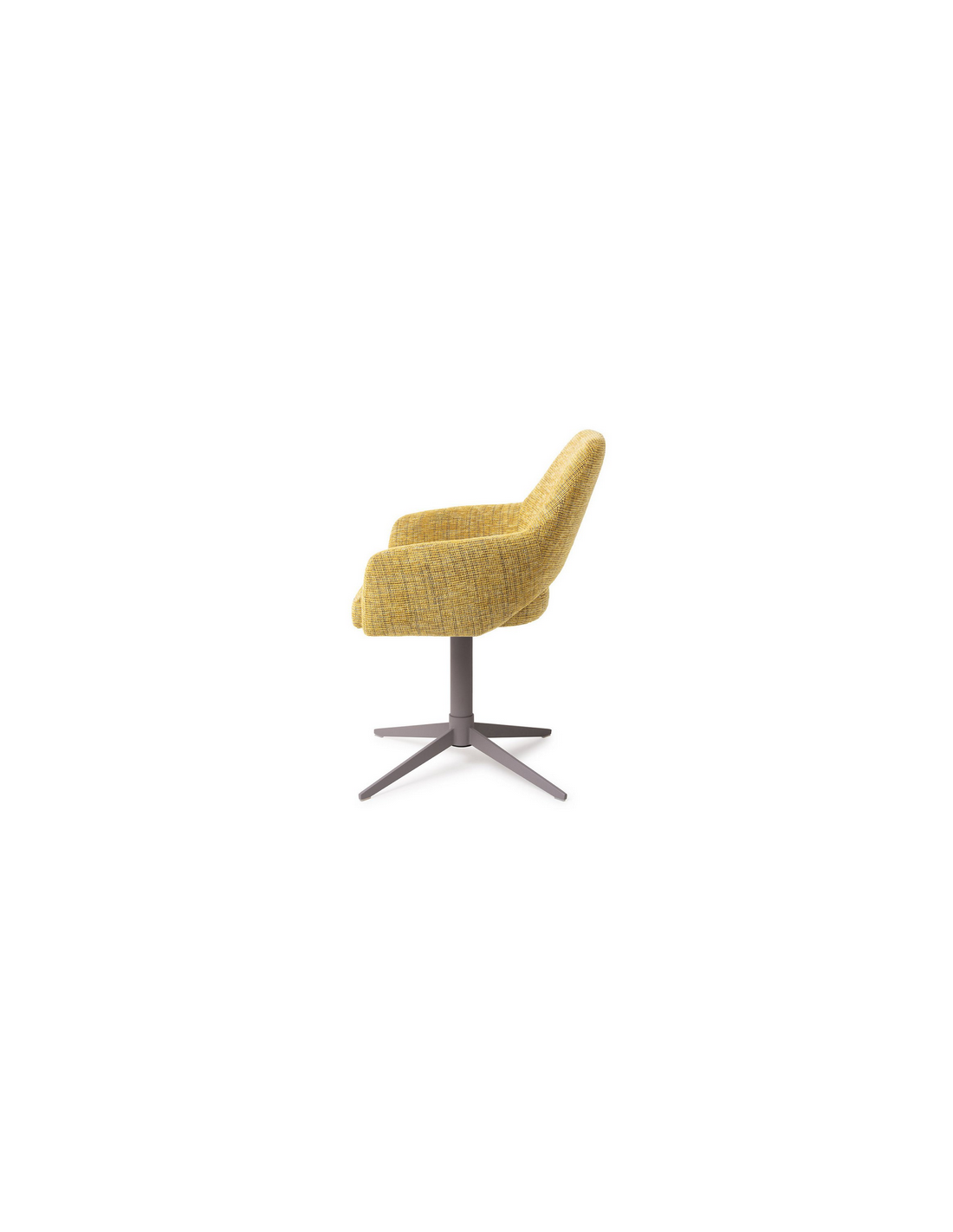 YANAI Spisebordsstol med armlæn og drejefod, udført i et moderne design med stel i grålakeret stål og sæde i gul polyester. Stolen måler 83 cm i højden over ryggen og med siddehøjde på 49 cm.