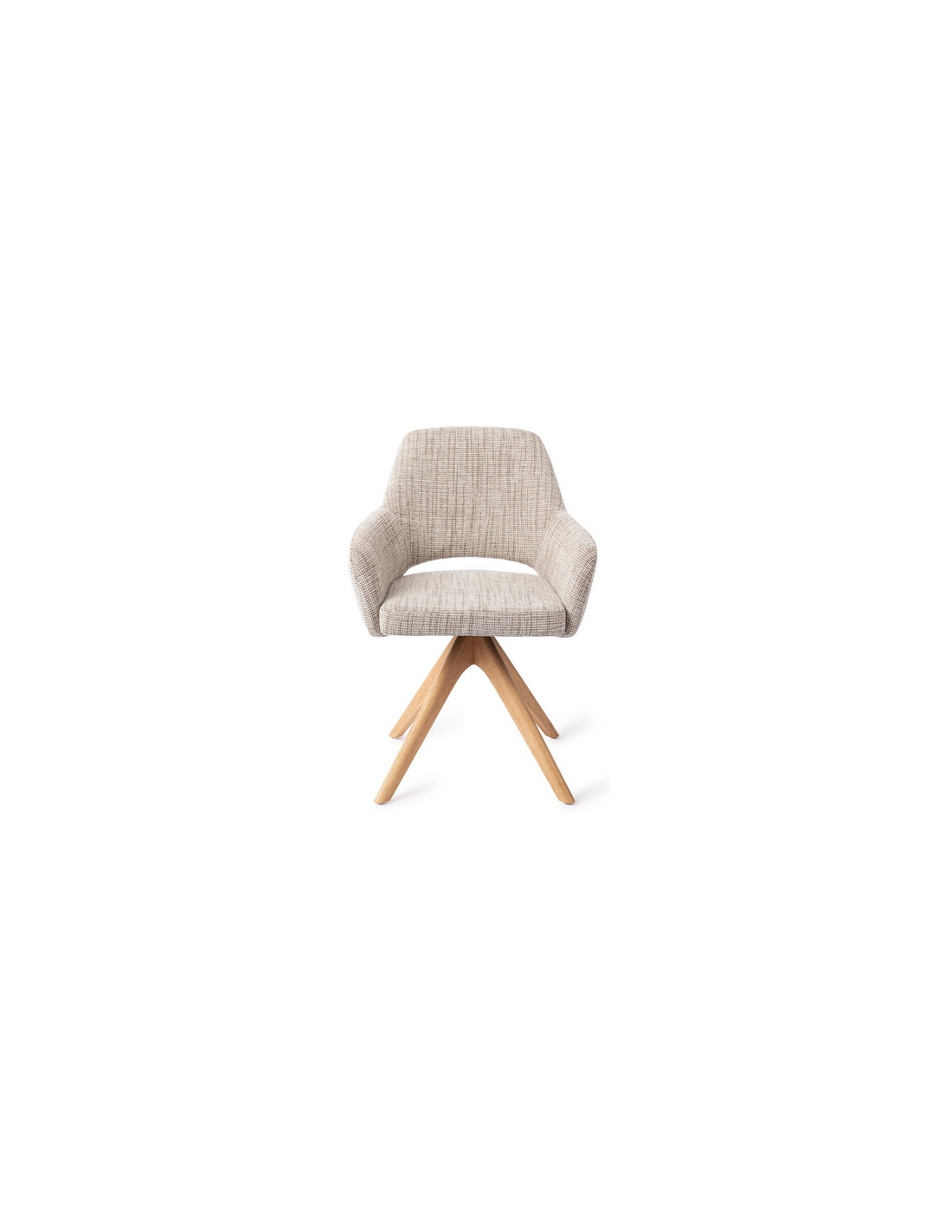 YANAI Spisebordsstol med armlæn og drejefod, udført i et moderne design med stel i egetræ og sæde i meleret toffeefarvet polyester. Stolen måler 83 cm i højden over ryggen og med siddehøjde på 49 cm.