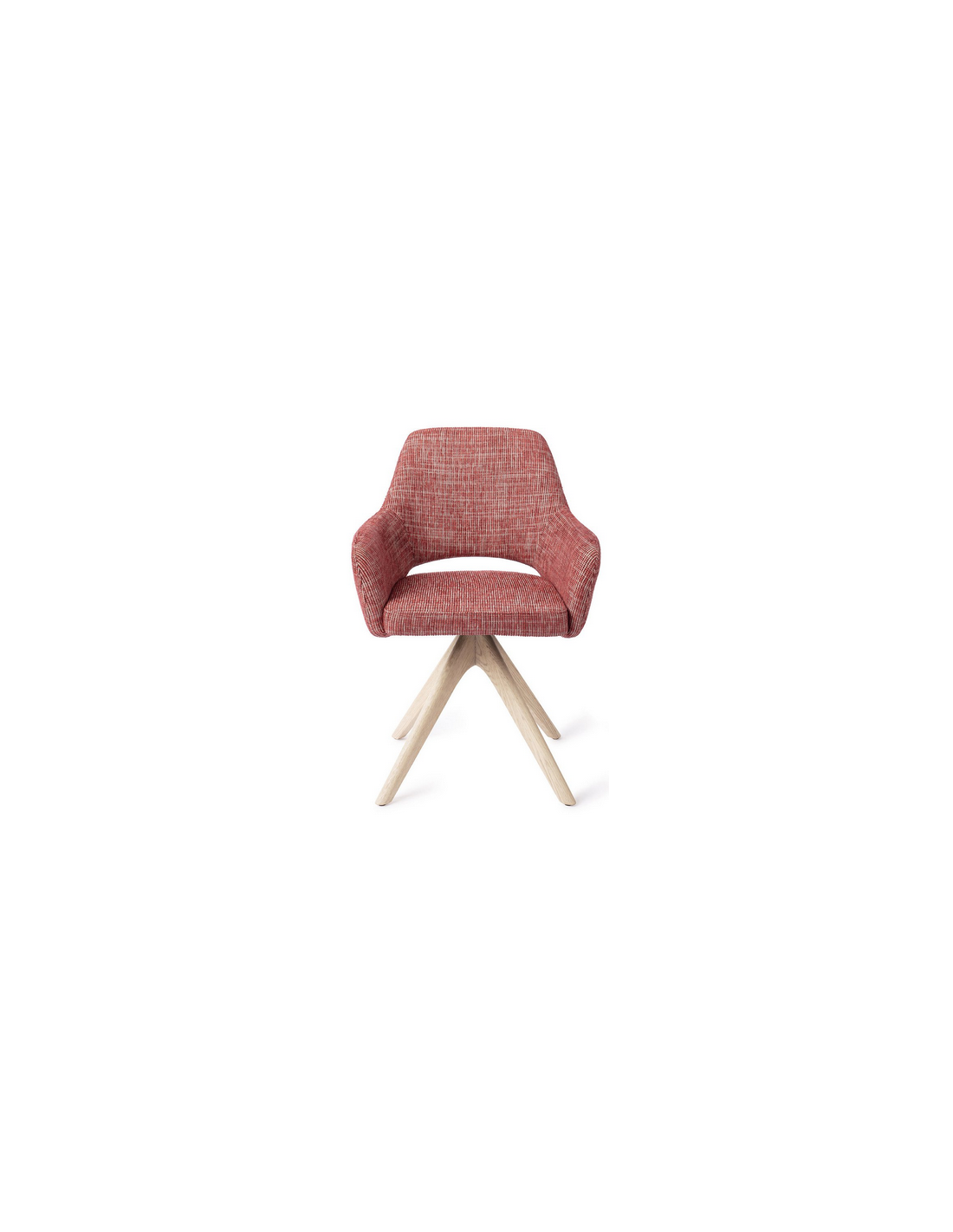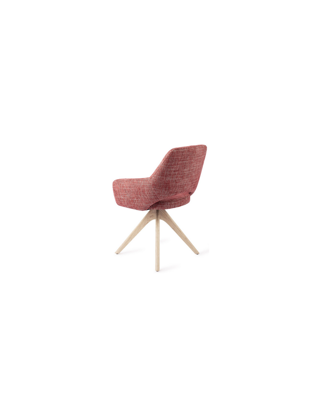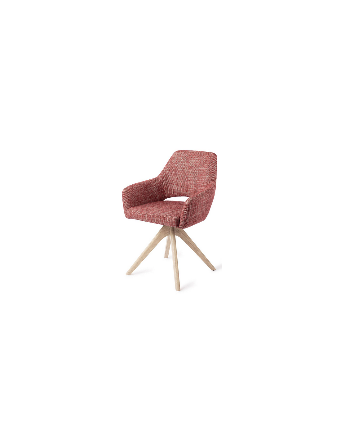 YANAI Spisebordsstol med armlæn og drejefod, udført i et moderne design med stel i bleget egetræ og sæde i bær rød polyester. Stolen måler 83 cm i højden over ryggen og med siddehøjde på 49 cm.