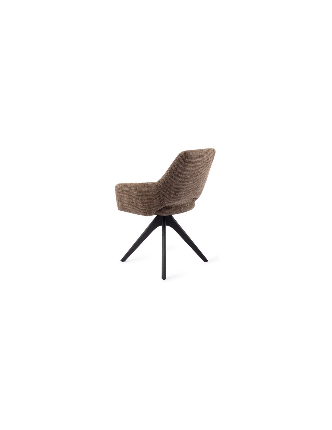 YANAI Spisebordsstol med armlæn og drejefod, udført i et moderne design med stel i sortlakeret egetræ og sæde i mørkebrun polyester. Stolen måler 83 cm i højden over ryggen og med siddehøjde på 49 cm.