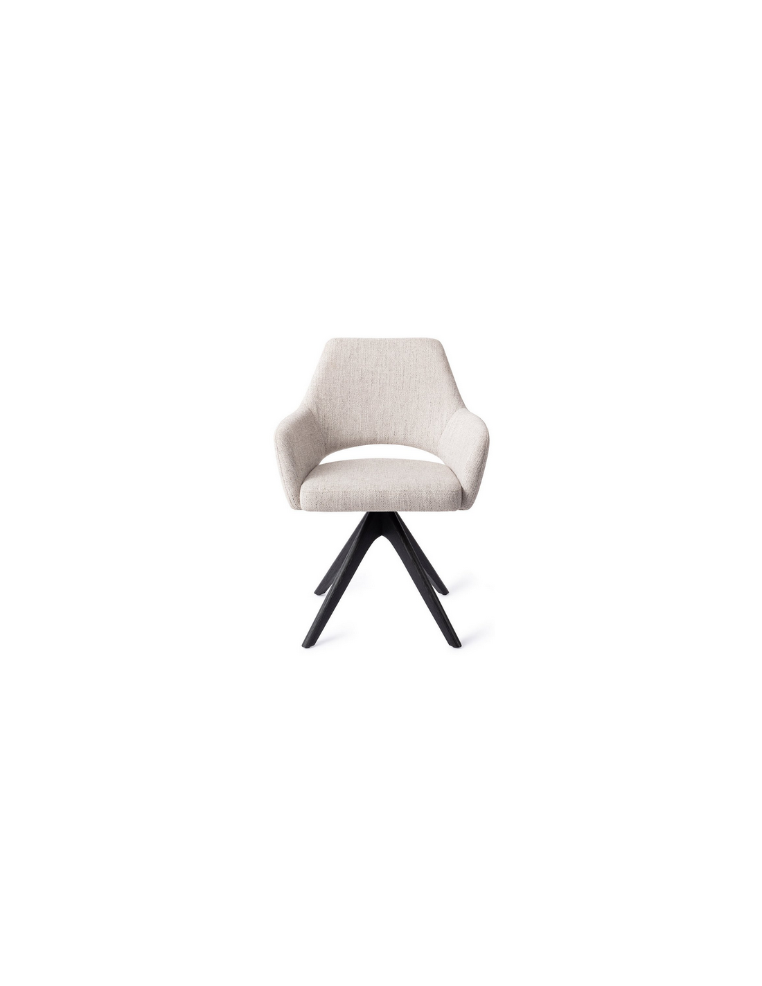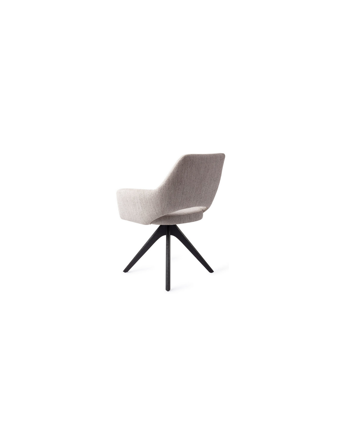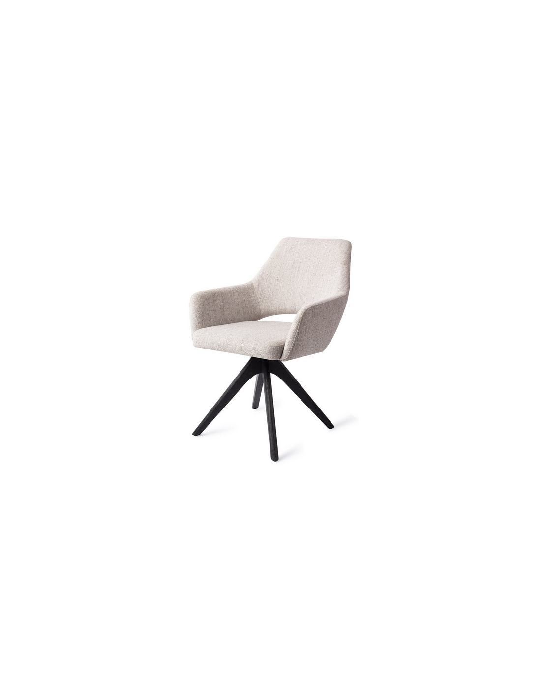 YANAI Spisebordsstol med armlæn og drejefod, udført i et moderne design med stel i sortlakeret egetræ og sæde i lysegrå polyester. Stolen måler 83 cm i højden over ryggen og med siddehøjde på 49 cm.