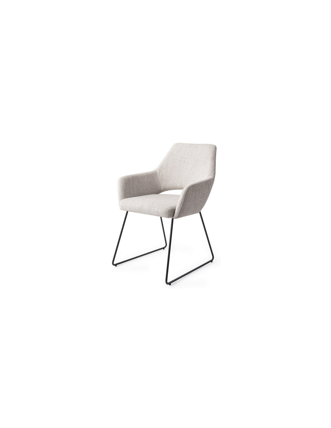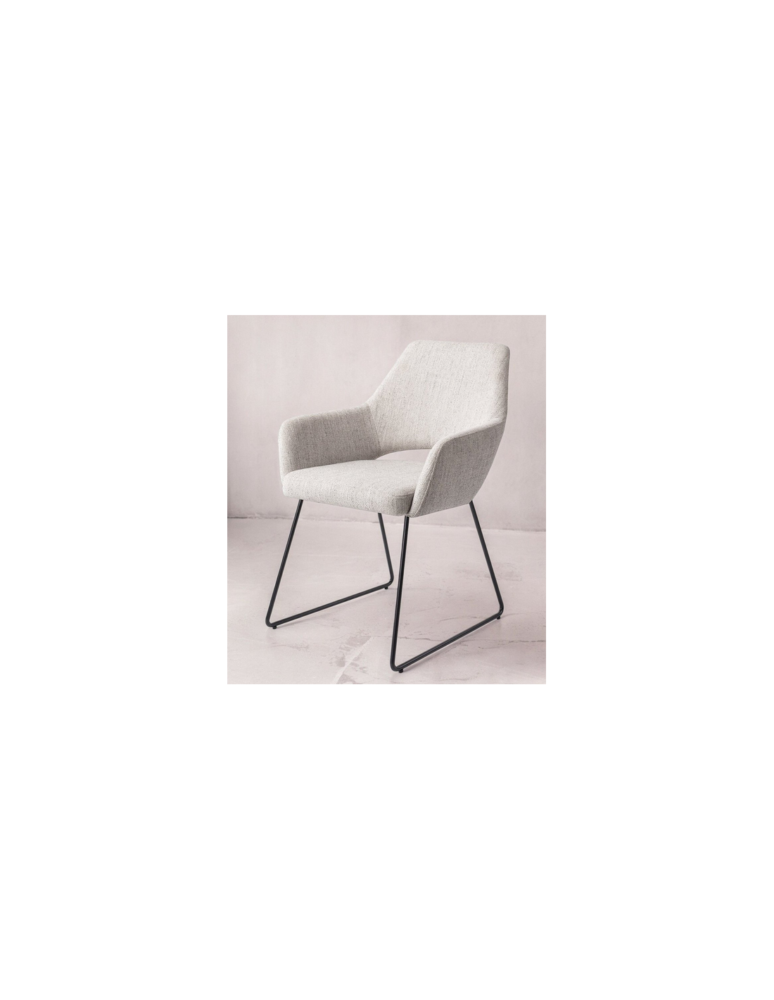 YANAI Spisebordsstol med armlæn, udført i et moderne design med stel i sortlakeret stål og sæde i lysegrå polyester. Stolen måler 83 cm i højden over ryggen og med siddehøjde på 49 cm.