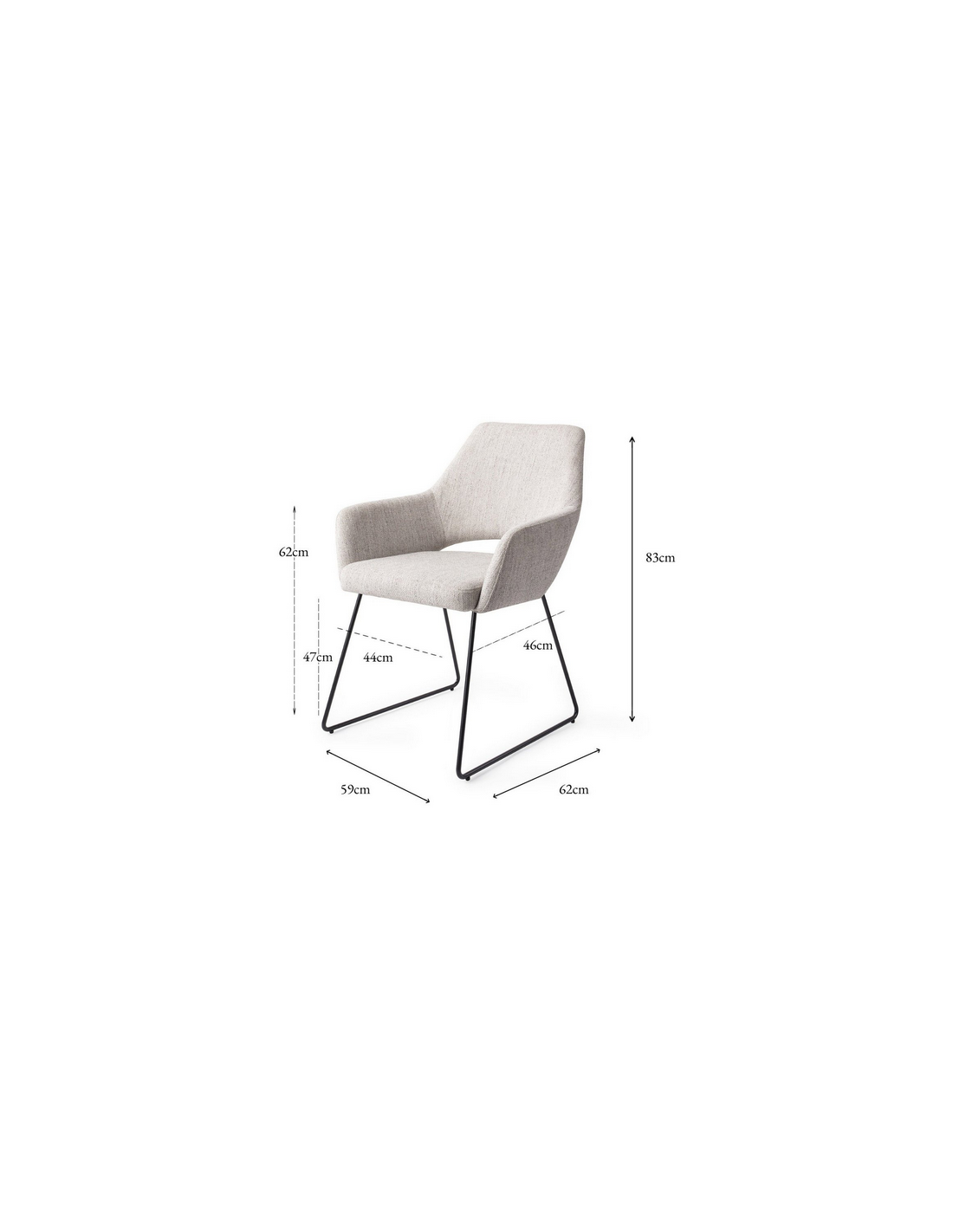 • Armlænshøjde fra gulv: 62 cm