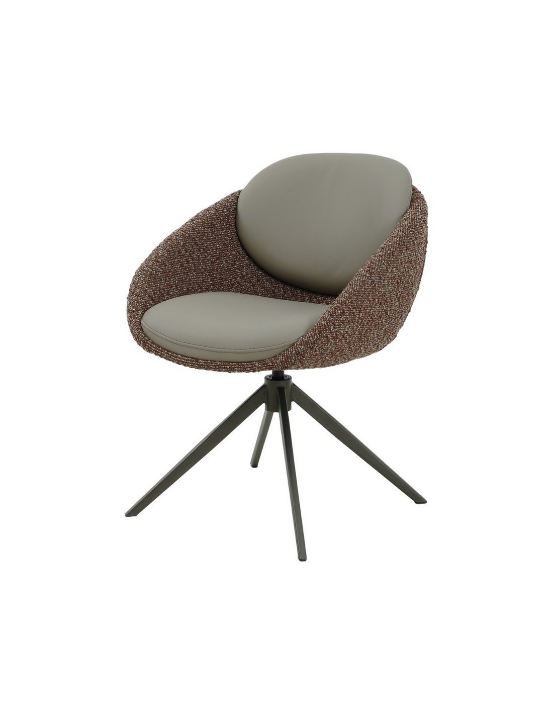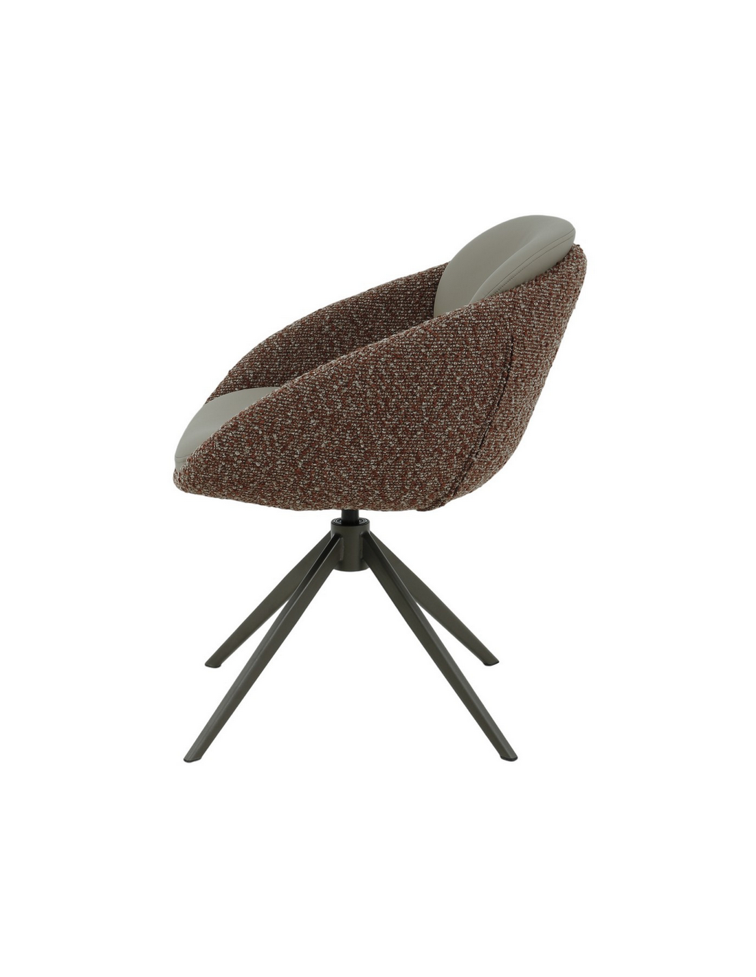 AVERIK Spisebordsstol med armlæn og drejefod i bouclé H80 cm - Grå/Rødbrun