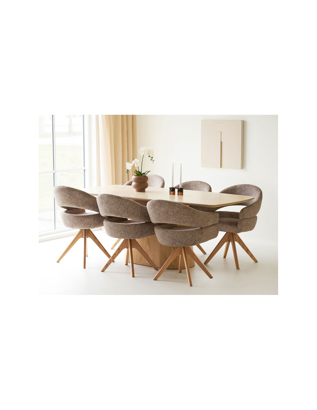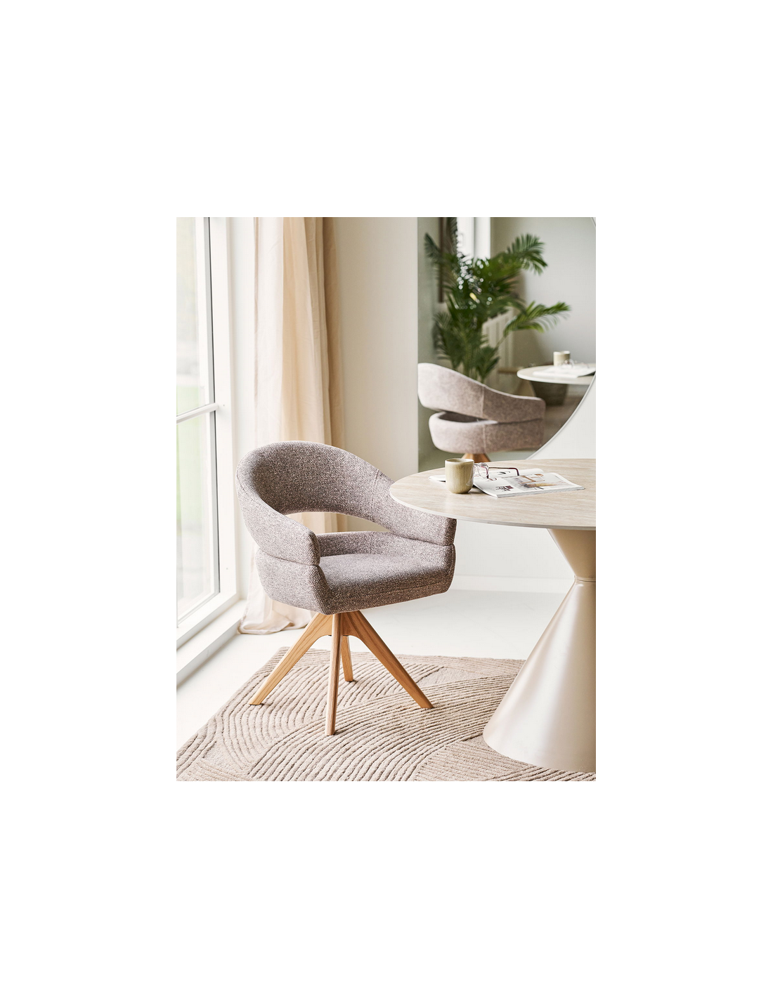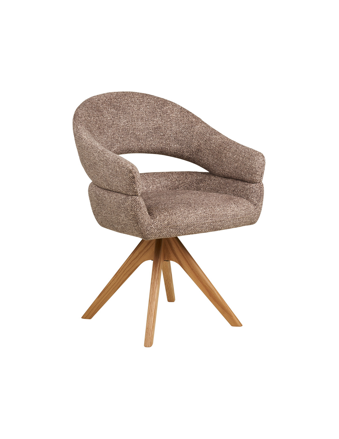Spisebordsstol med armlæn og drejefod i egetræ og polyester H83 cm - Eg/Brun