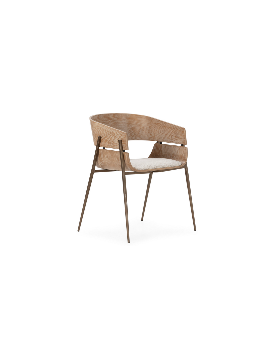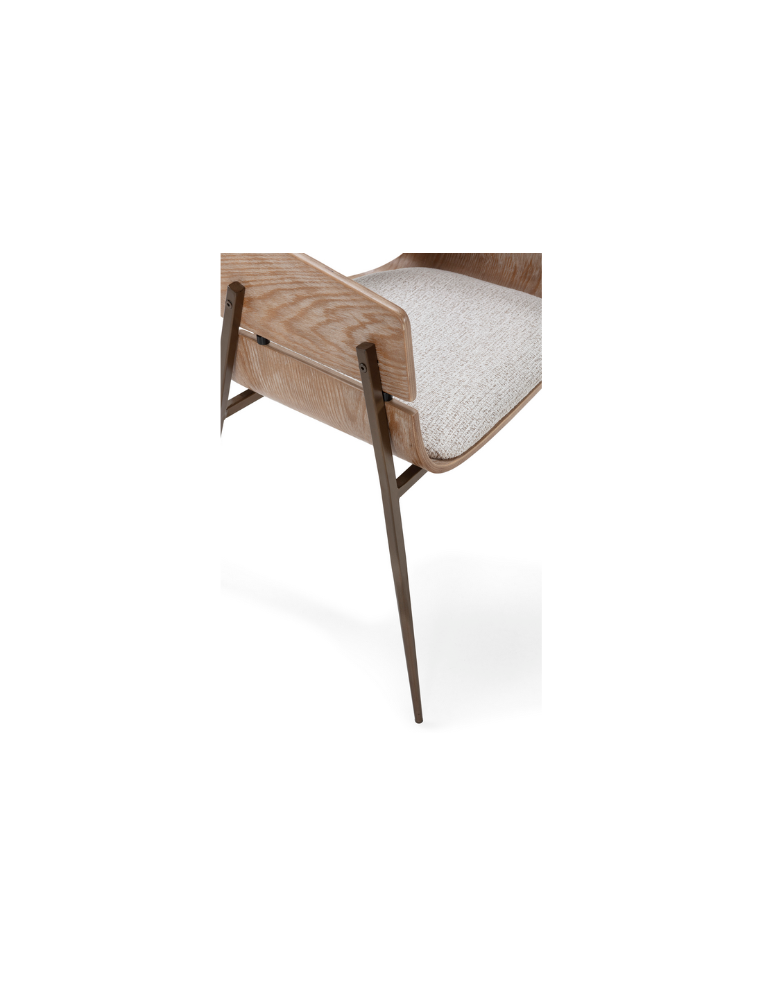 Sæt med 2 x NAIA Spisebordsstole med armlæn i metal, polyester og finér H77 cm - Bronzebrun/Lys eg/Beige