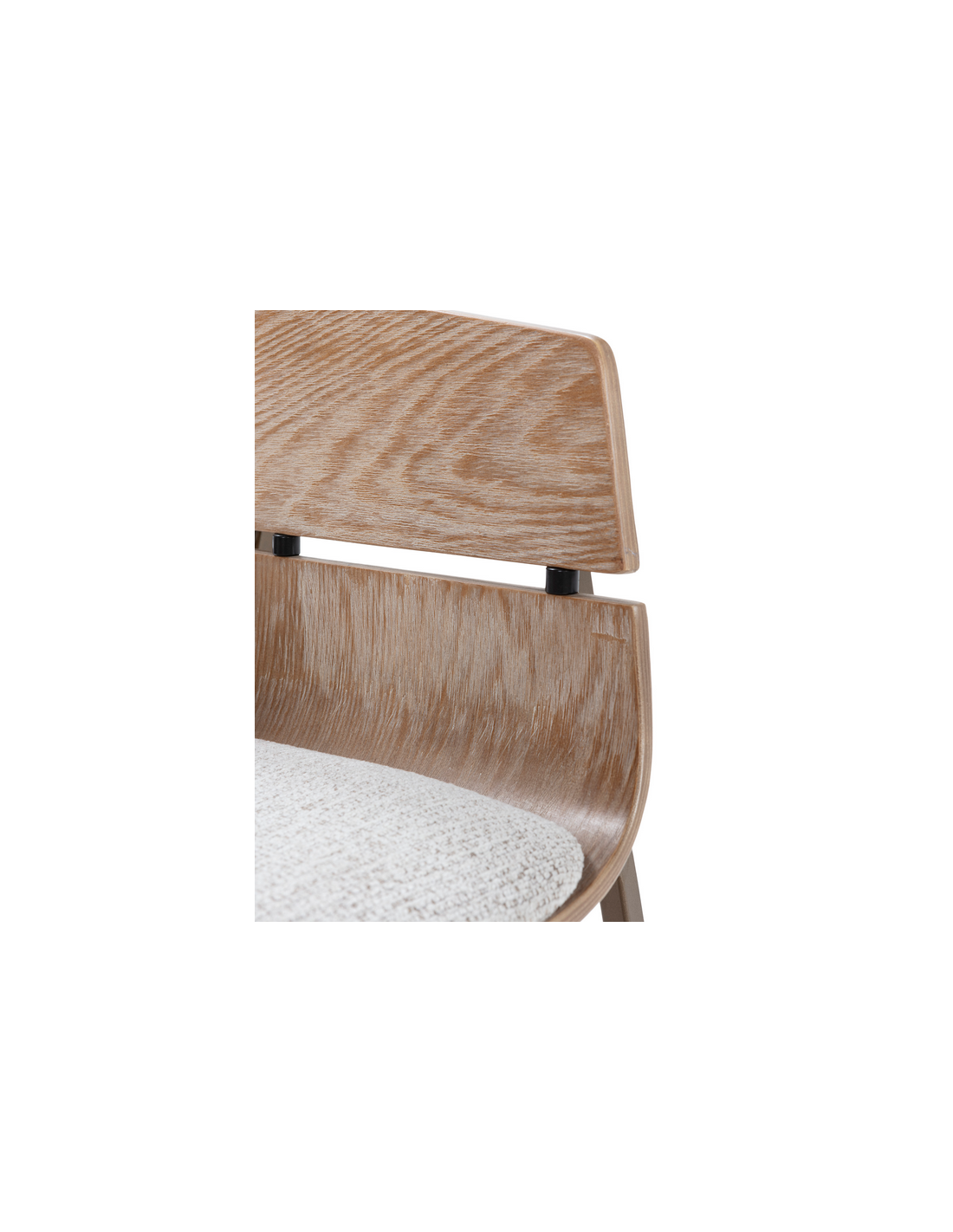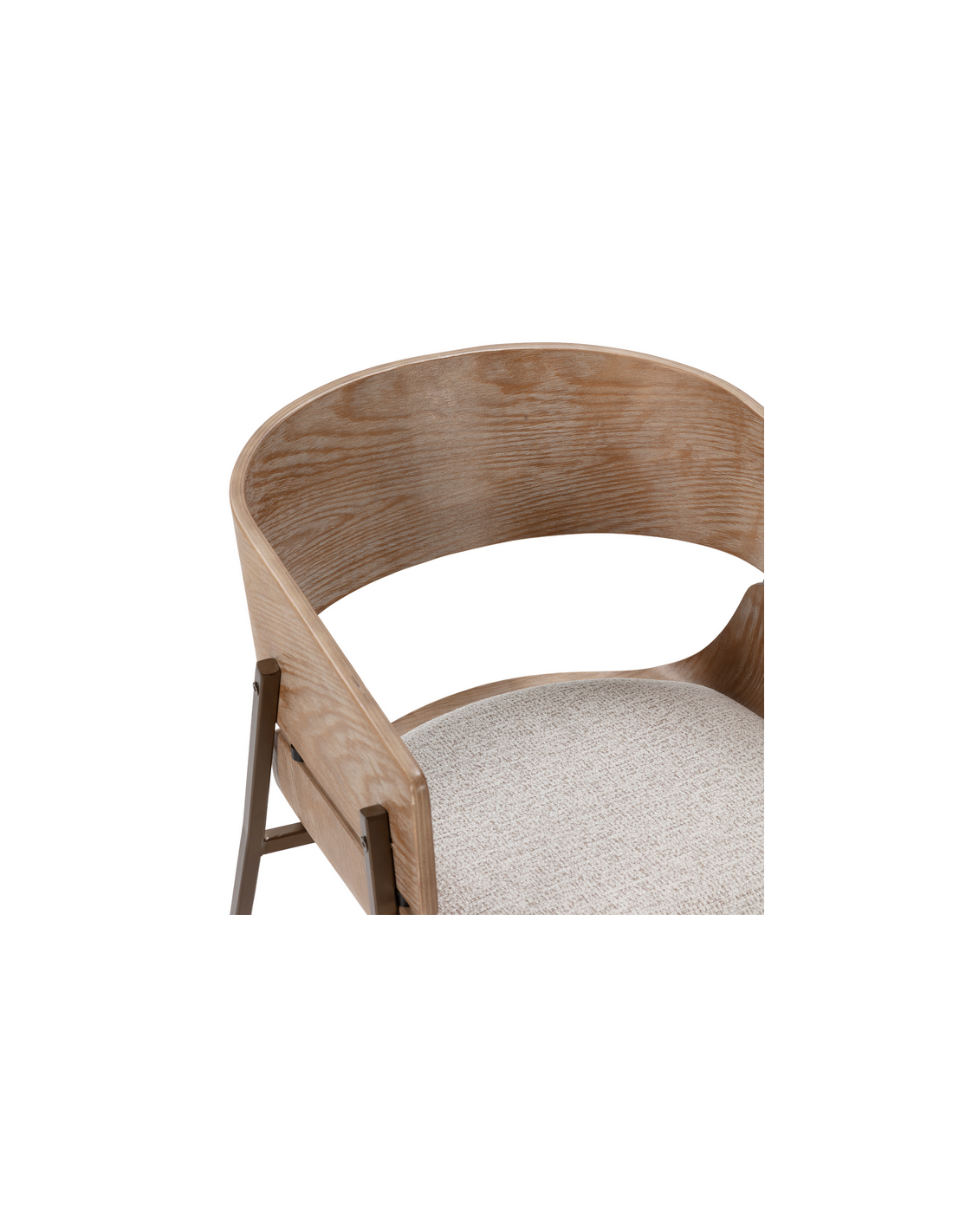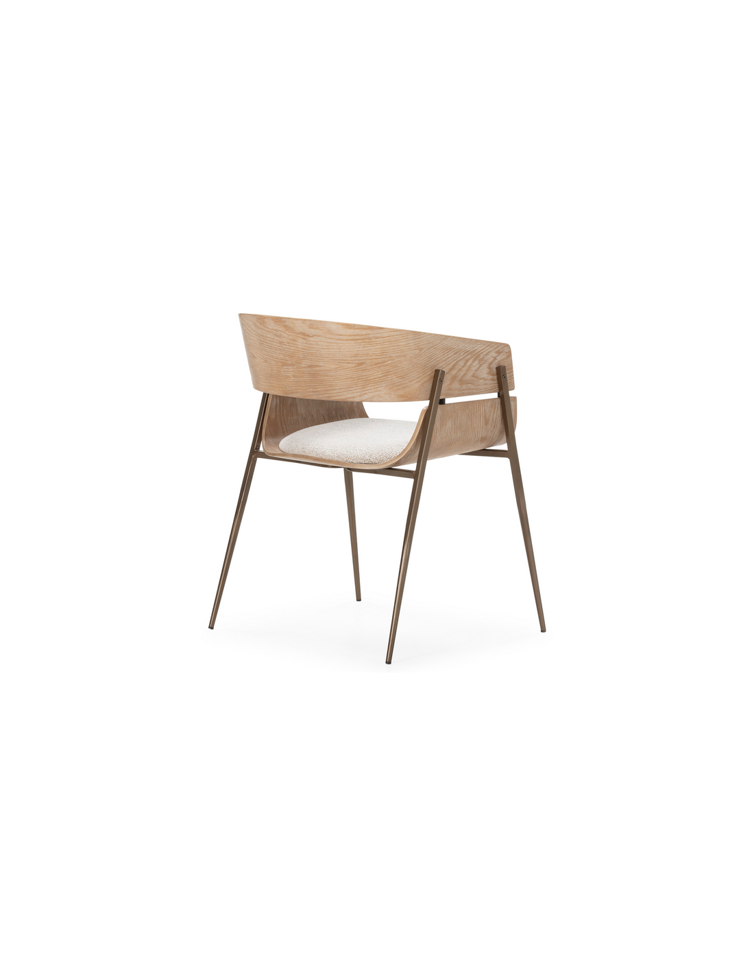 Sæt med 2 x NAIA Spisebordsstole med armlæn, udført i et Skandinavisk design af bronzebrunlakeret metal og lys egetræsfarvet finér med sæde i beige polyester. Stolene måler 77 cm i højden over ryggen og 51 x 56 cm i bredde og dybde.