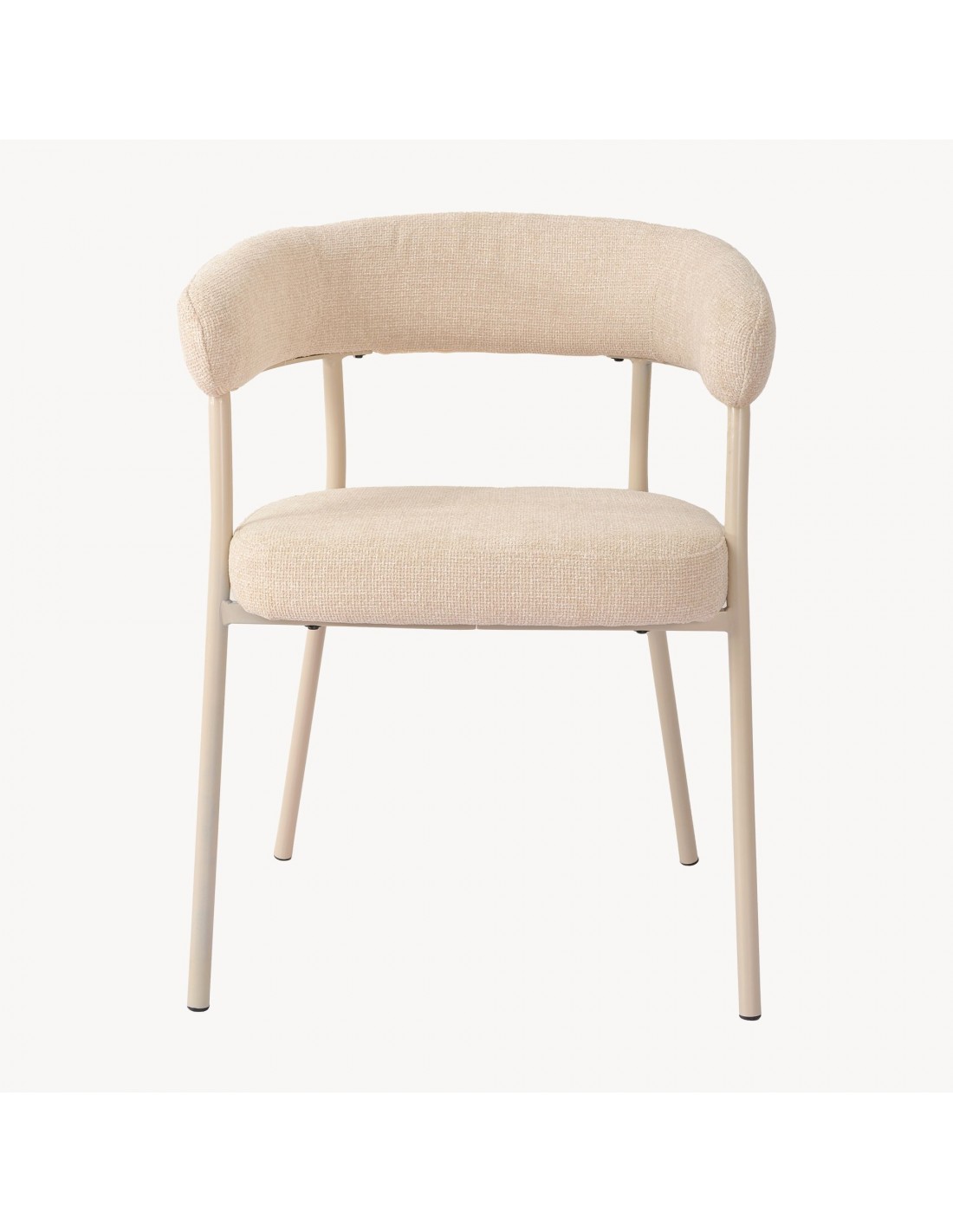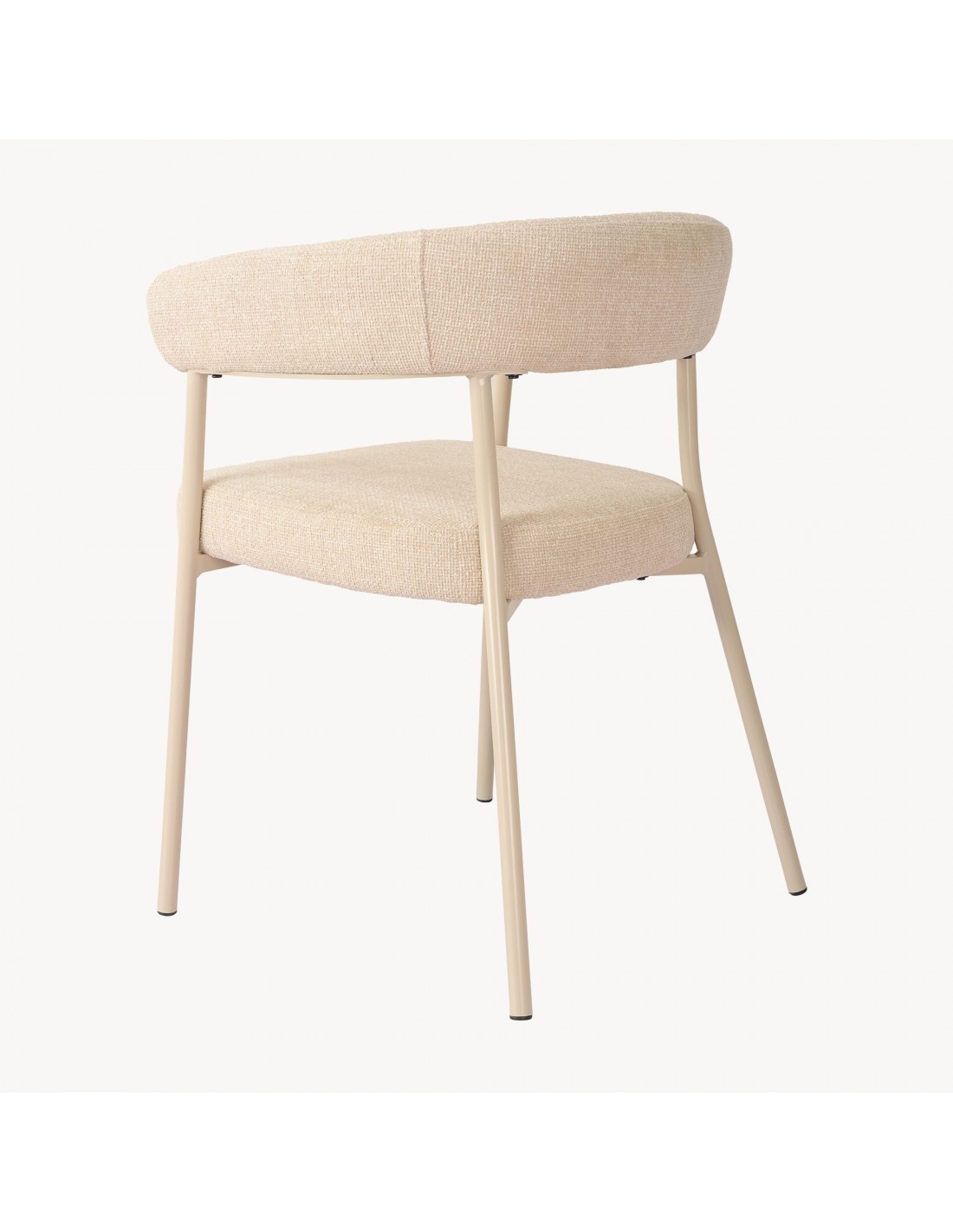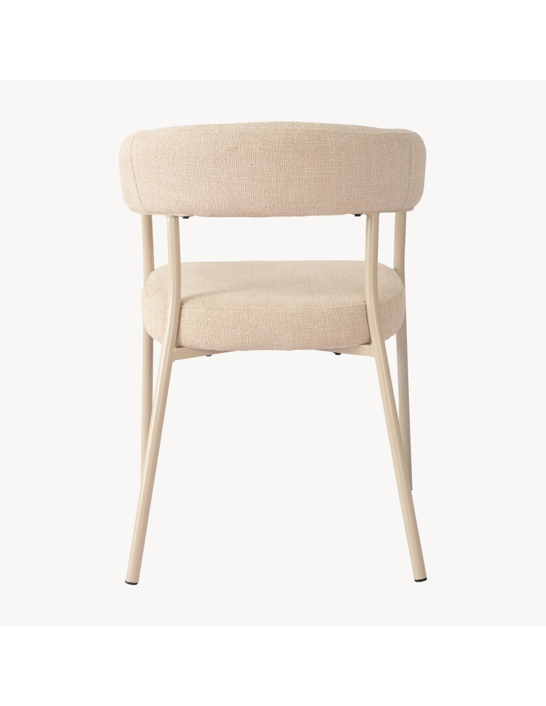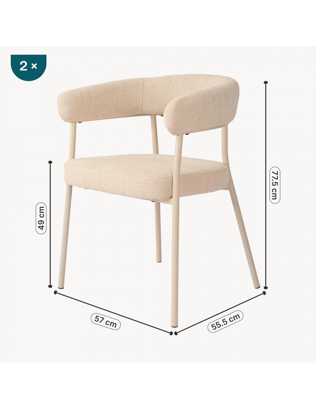 Sæt med 2 x spisebordsstole udført i et moderne design, fremstillet med stel i beigelakeret metal og sæde i beige polyester. Stolene måler 77,5 cm i højden over ryggen og med en siddehøjde på 49 cm.