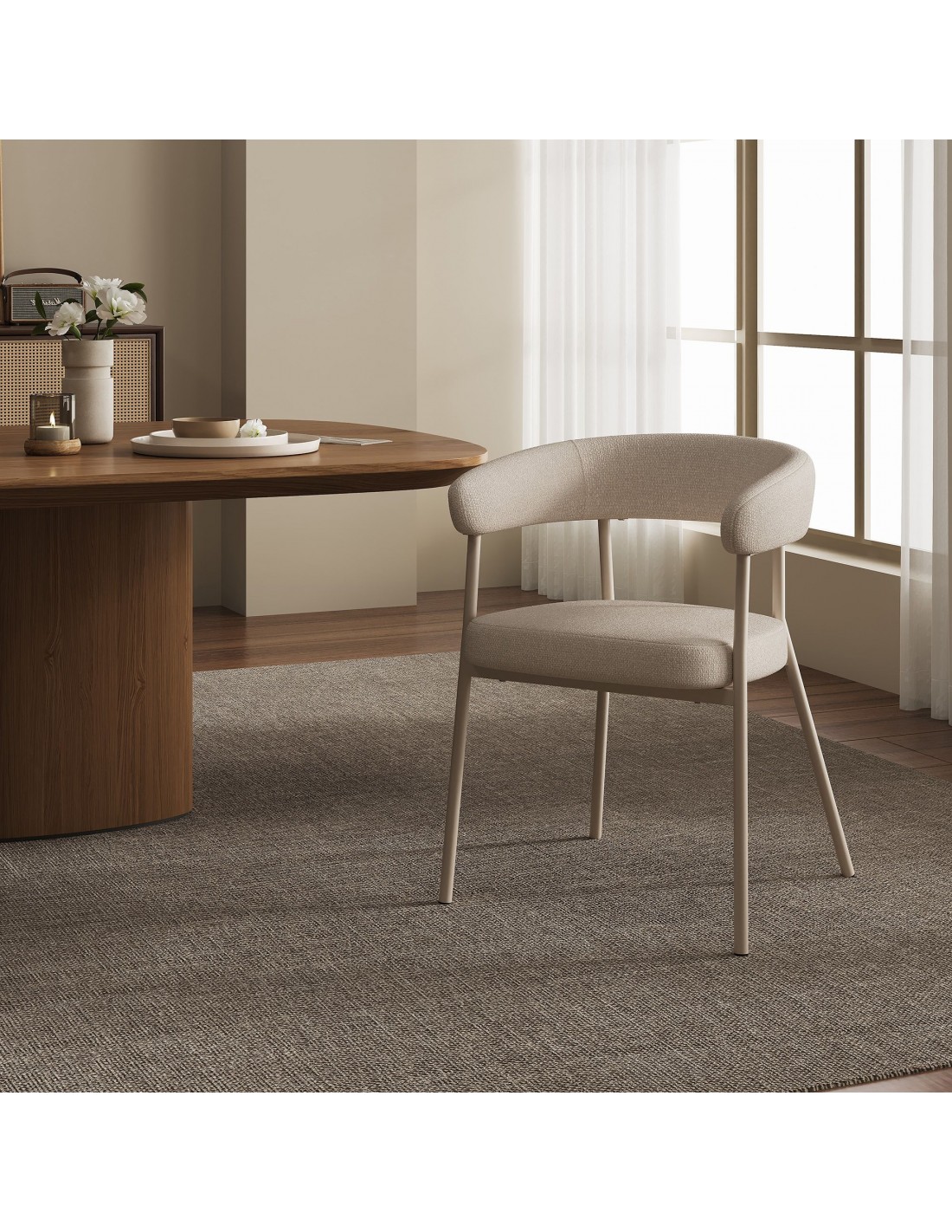Sæt med 2 x spisebordsstole i metal og polyester H77,5 cm - Beige