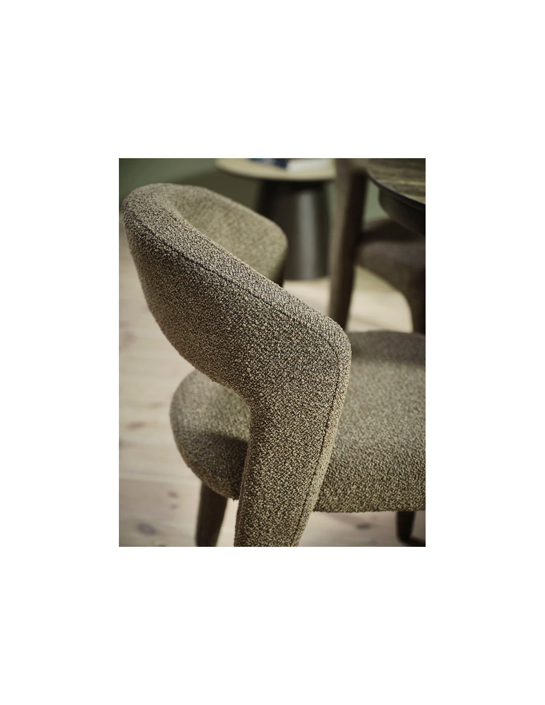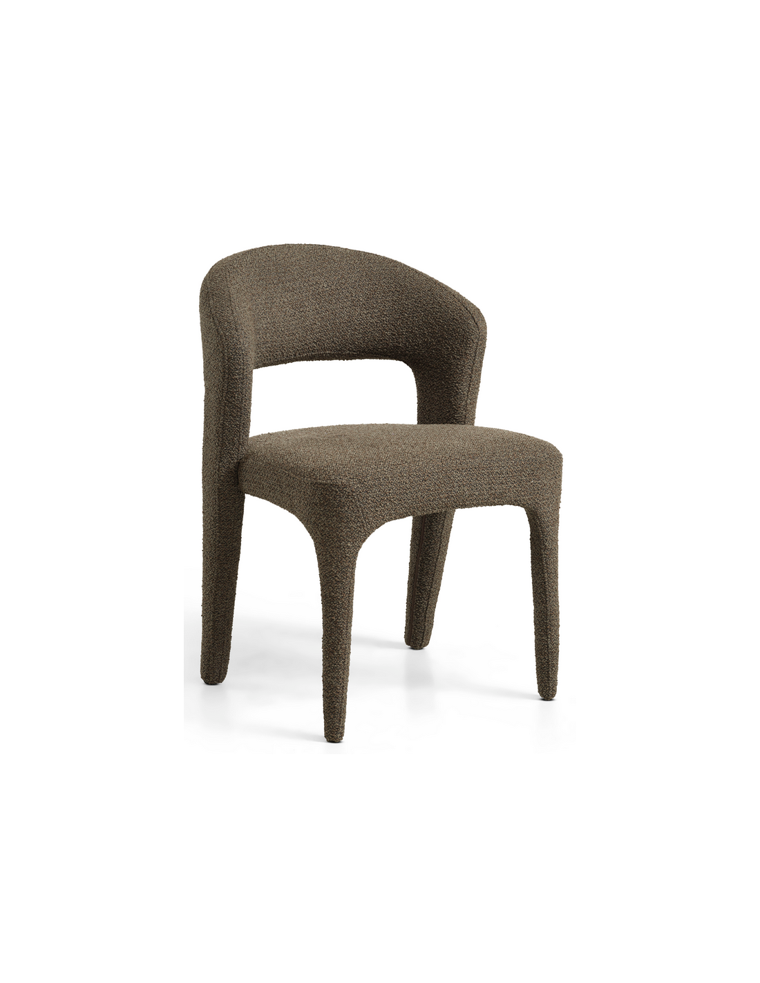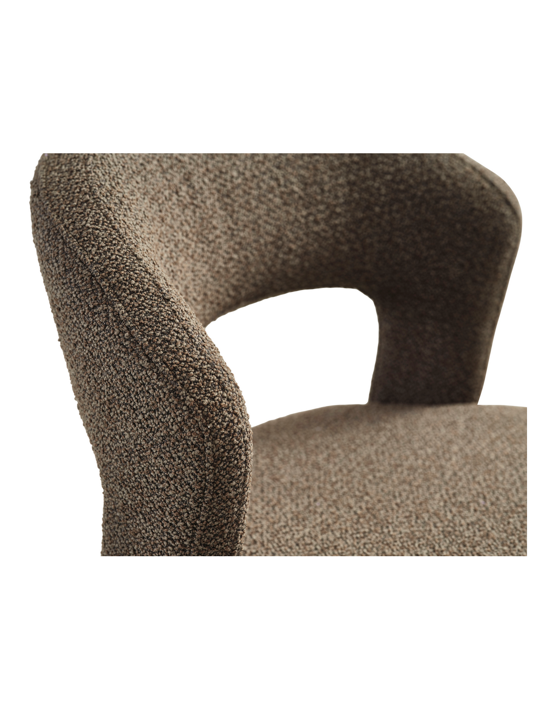 TEDDY Sæt med 2 x spisebordsstole udført i et moderne design fremstillet i brun bouclé polyester. Stolene måler 80 cm i højden over ryggen og med siddehøjde på 49 cm.