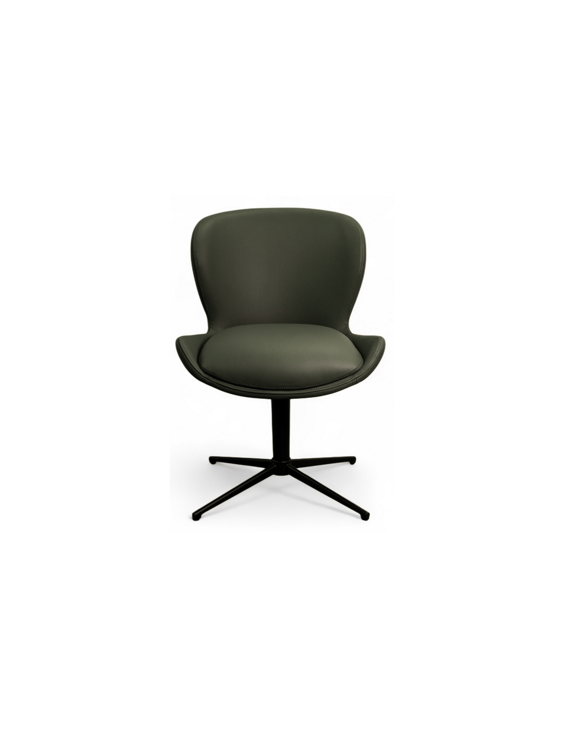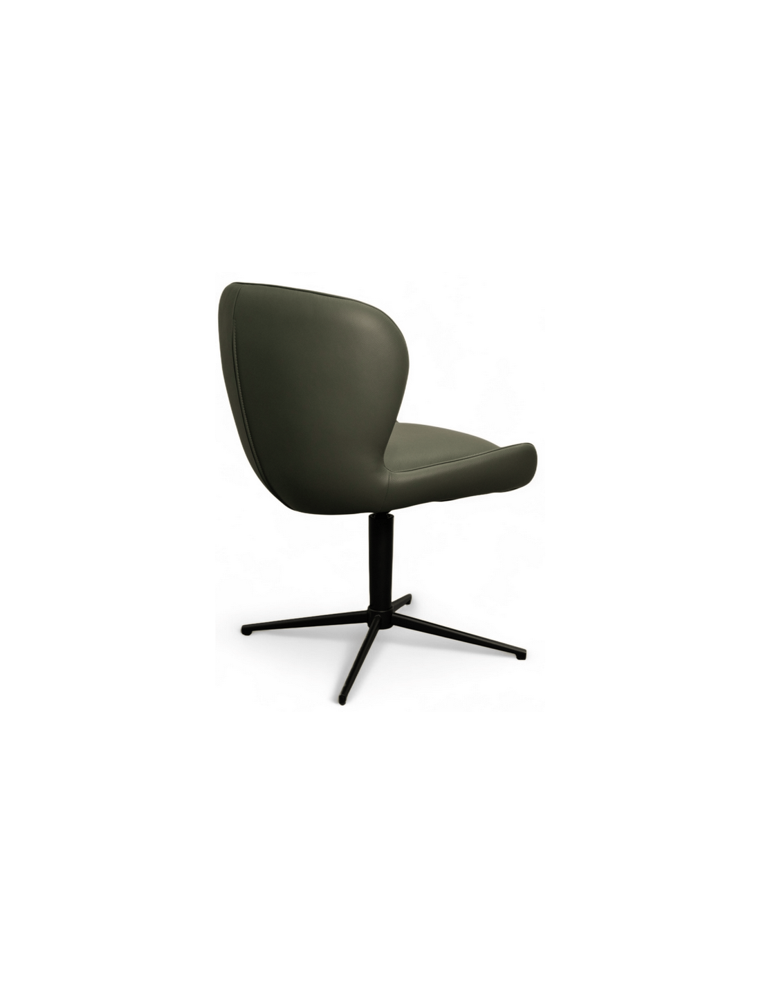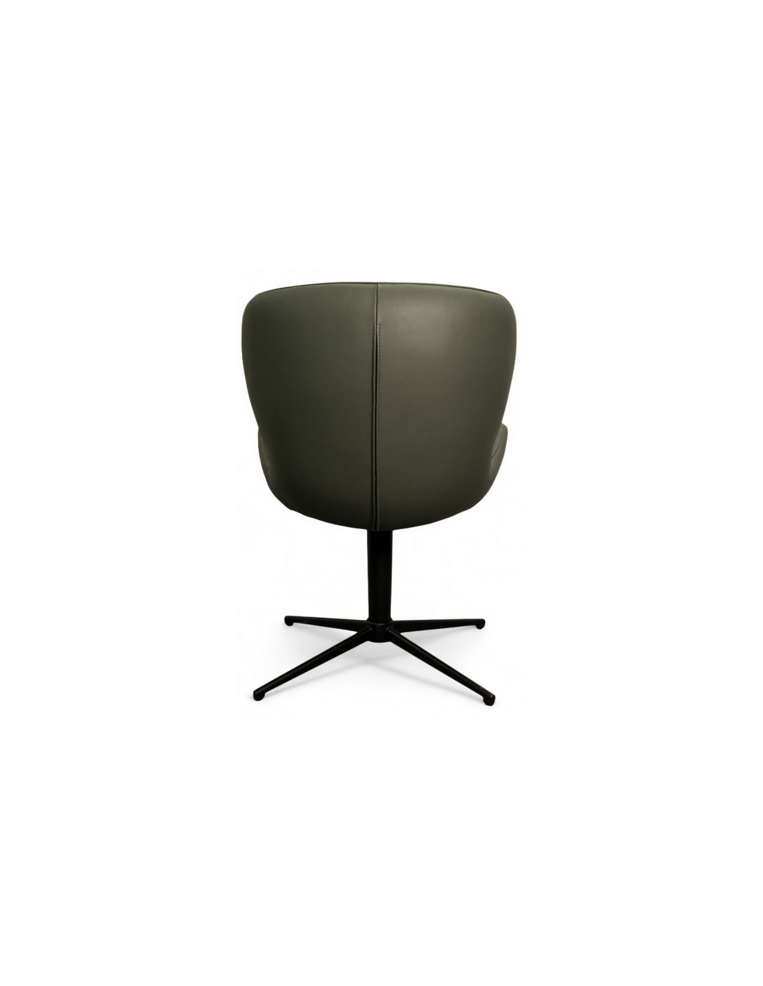 Sæt med 2 x spisebordsstole med armlæn og drejefod, udført i et design fremstillet i sortlakeret metal og grøn ægte læder. Stolene måler 83 cm i højden over ryggen og med siddehøjde på 50 cm.