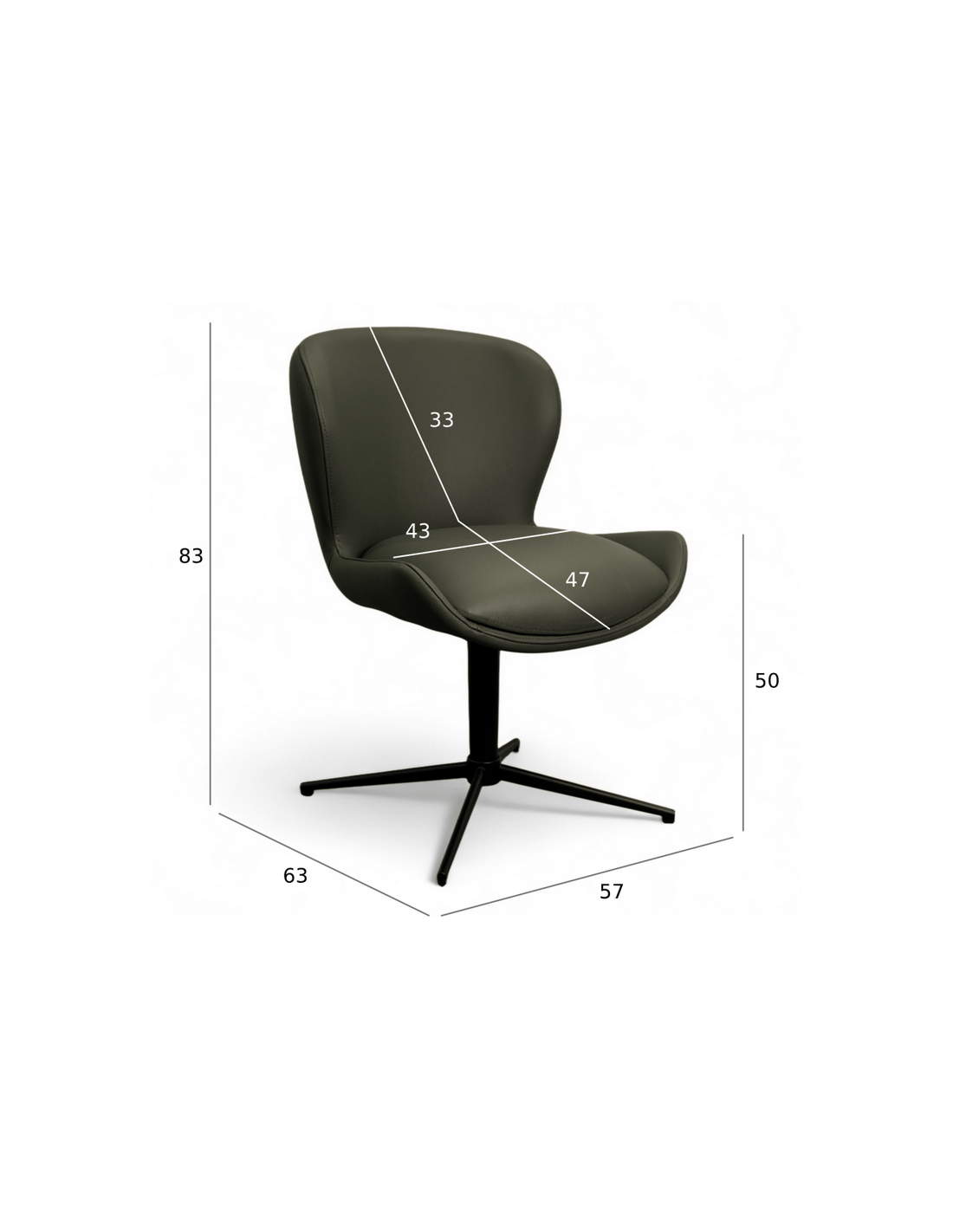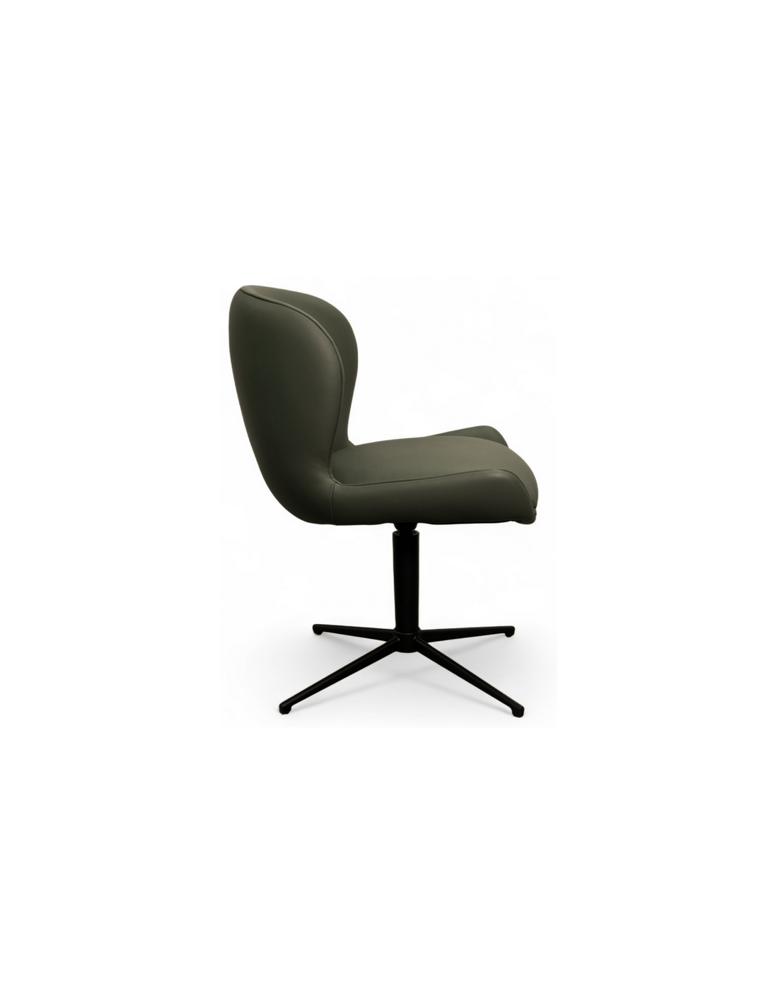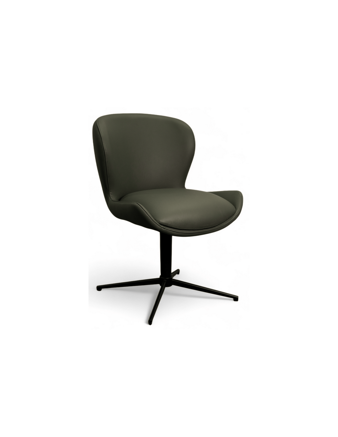 Sæt med 2 x spisebordsstole med armlæn og drejefod, udført i et design fremstillet i sortlakeret metal og grøn ægte læder. Stolene måler 83 cm i højden over ryggen og med siddehøjde på 50 cm.