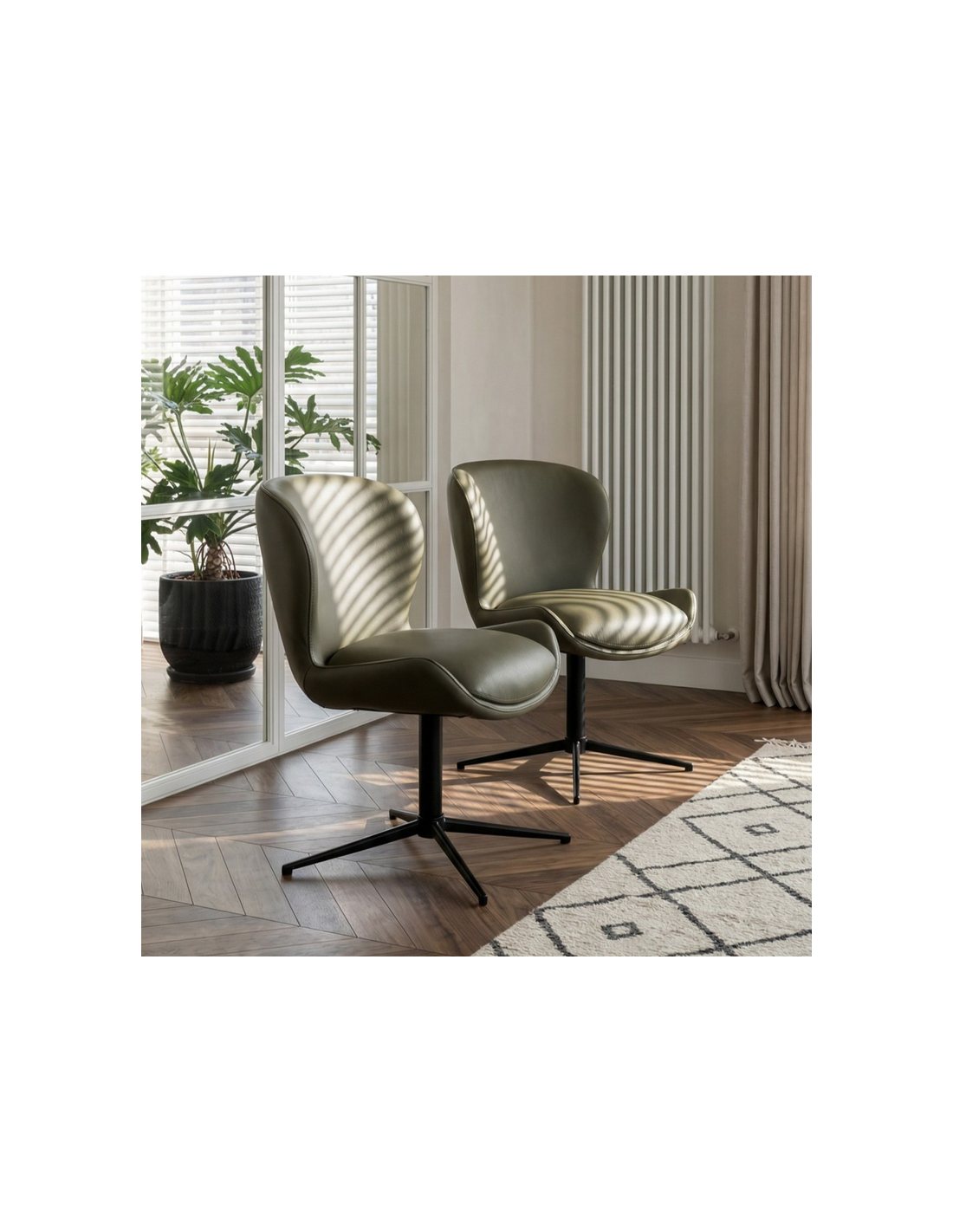 Sæt med 2 x Spisebordsstole med drejefod i metal og læder H83 cm - Sort/Grøn