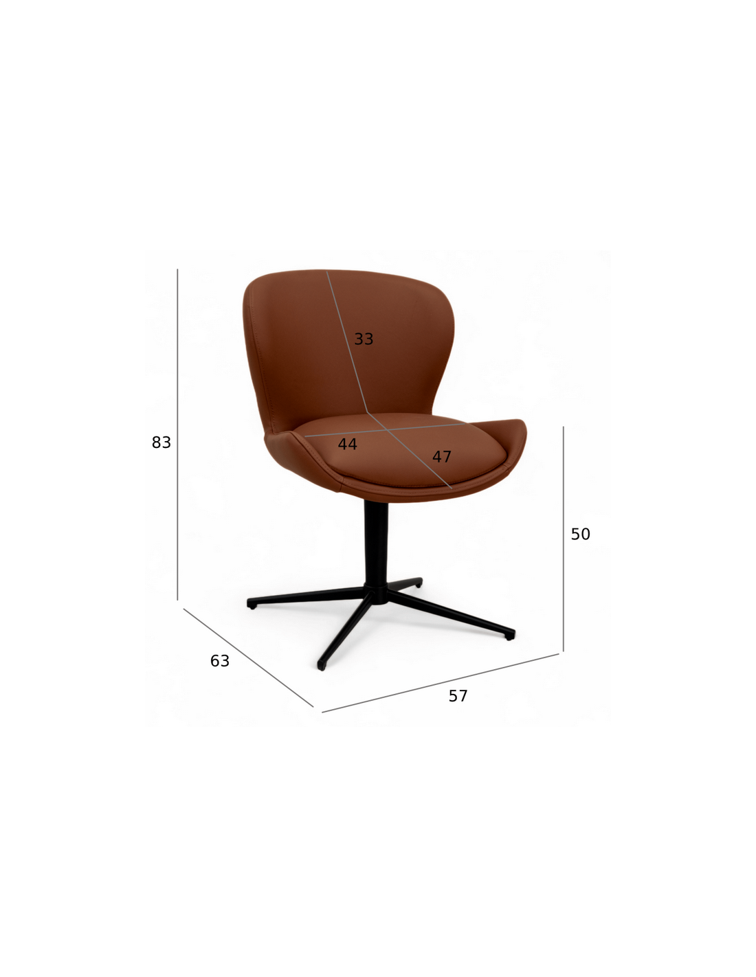 Sæt med 2 x spisebordsstole med armlæn og drejefod, udført i et design fremstillet i sortlakeret metal og mørkebrun ægte læder. Stolene måler 83 cm i højden over ryggen og med siddehøjde på 50 cm.