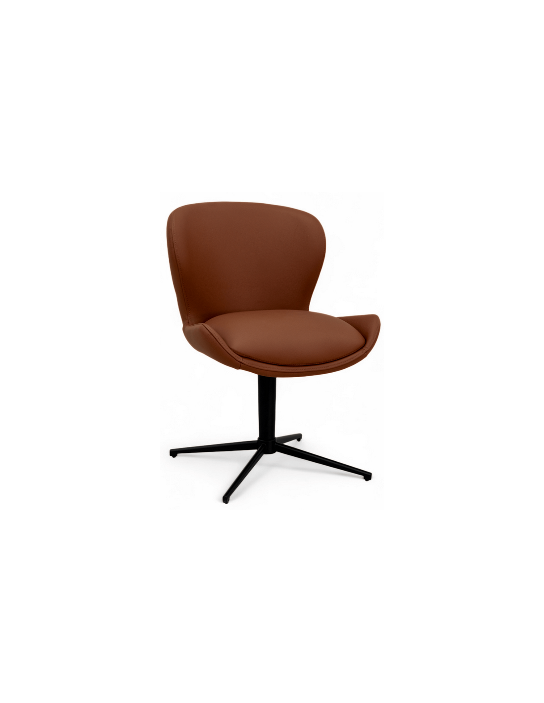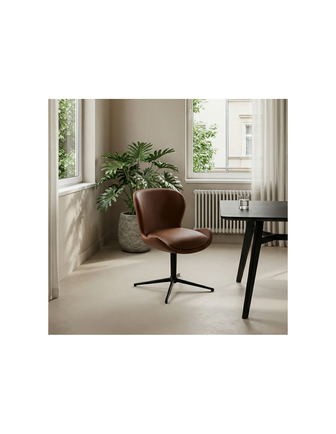 Sæt med 2 x Spisebordsstole med drejefod i metal og læder H83 cm - Sort/Mørkebrun