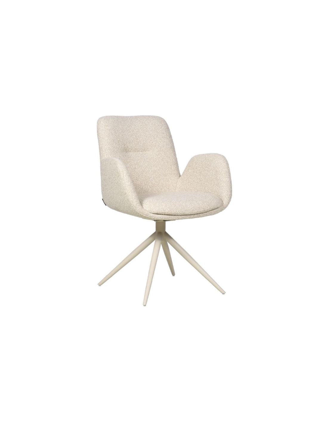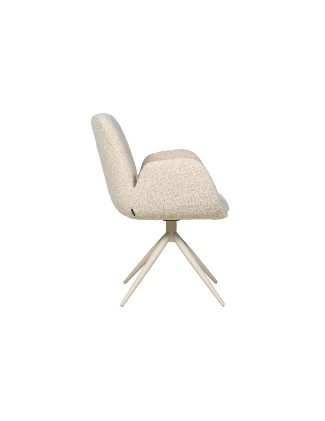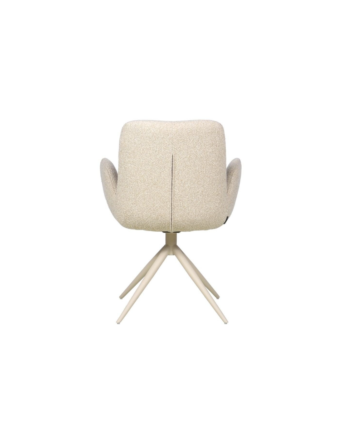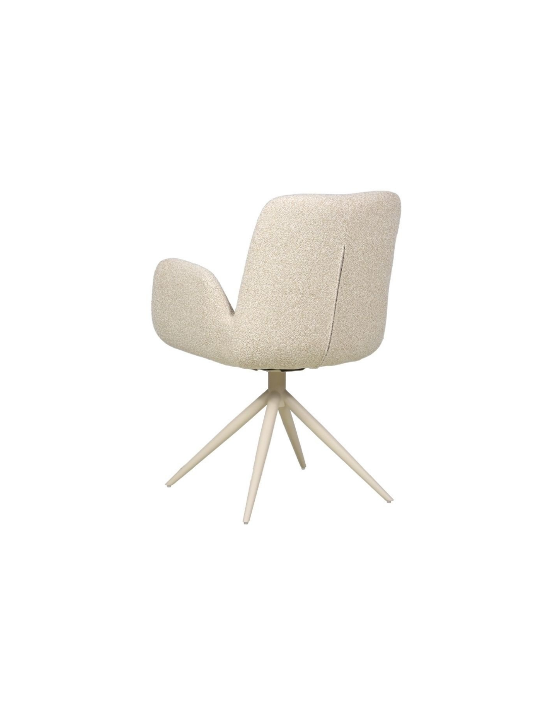 ALEX Spisebordsstol med drejefod, udført i et moderne Skandinavisk design af beigelakeret metal og meleret taupefarvet bouclé polyester. Spisebordsstolen måler 86 cm i højden over ryggen og med en siddehøjde på 49 cm.