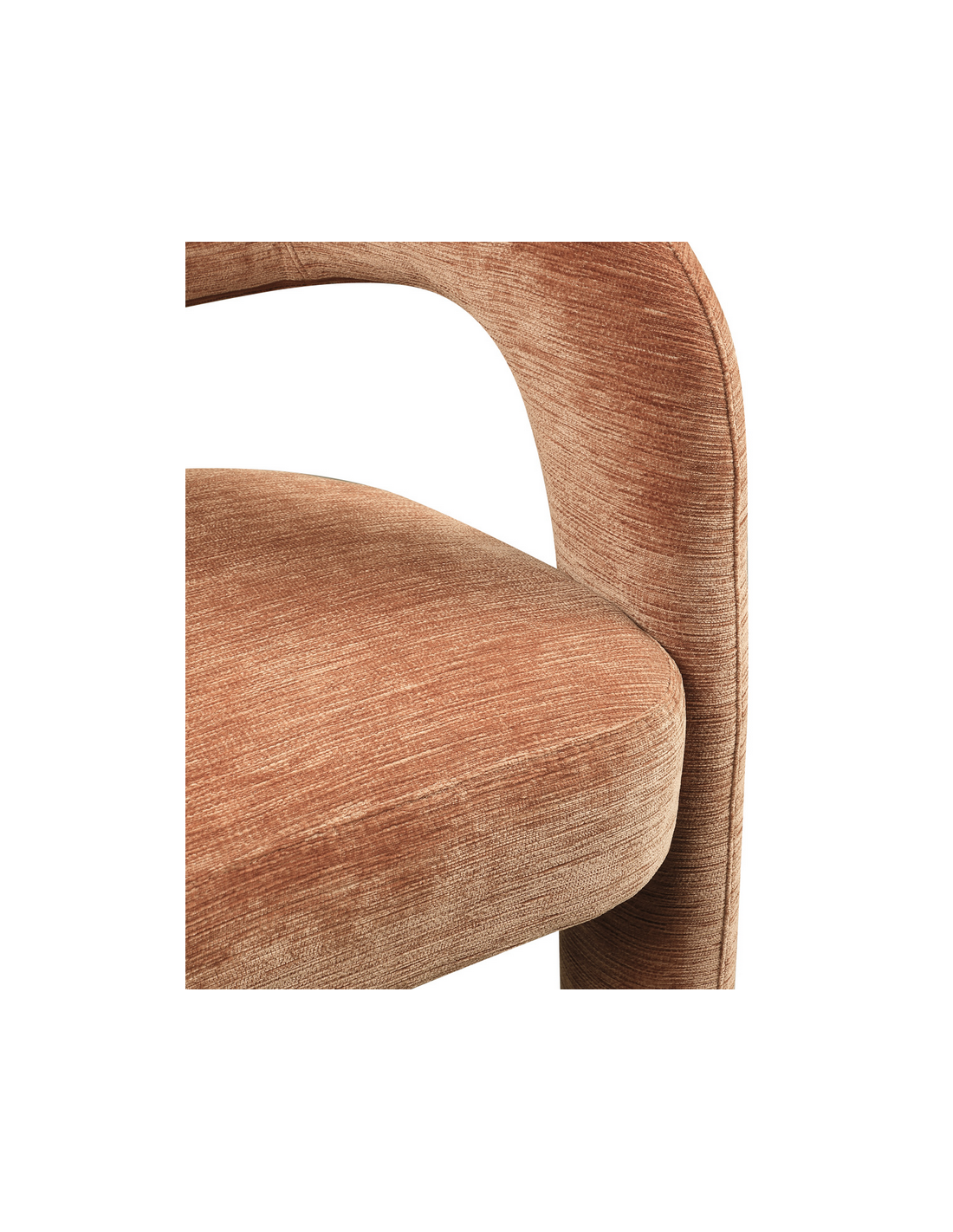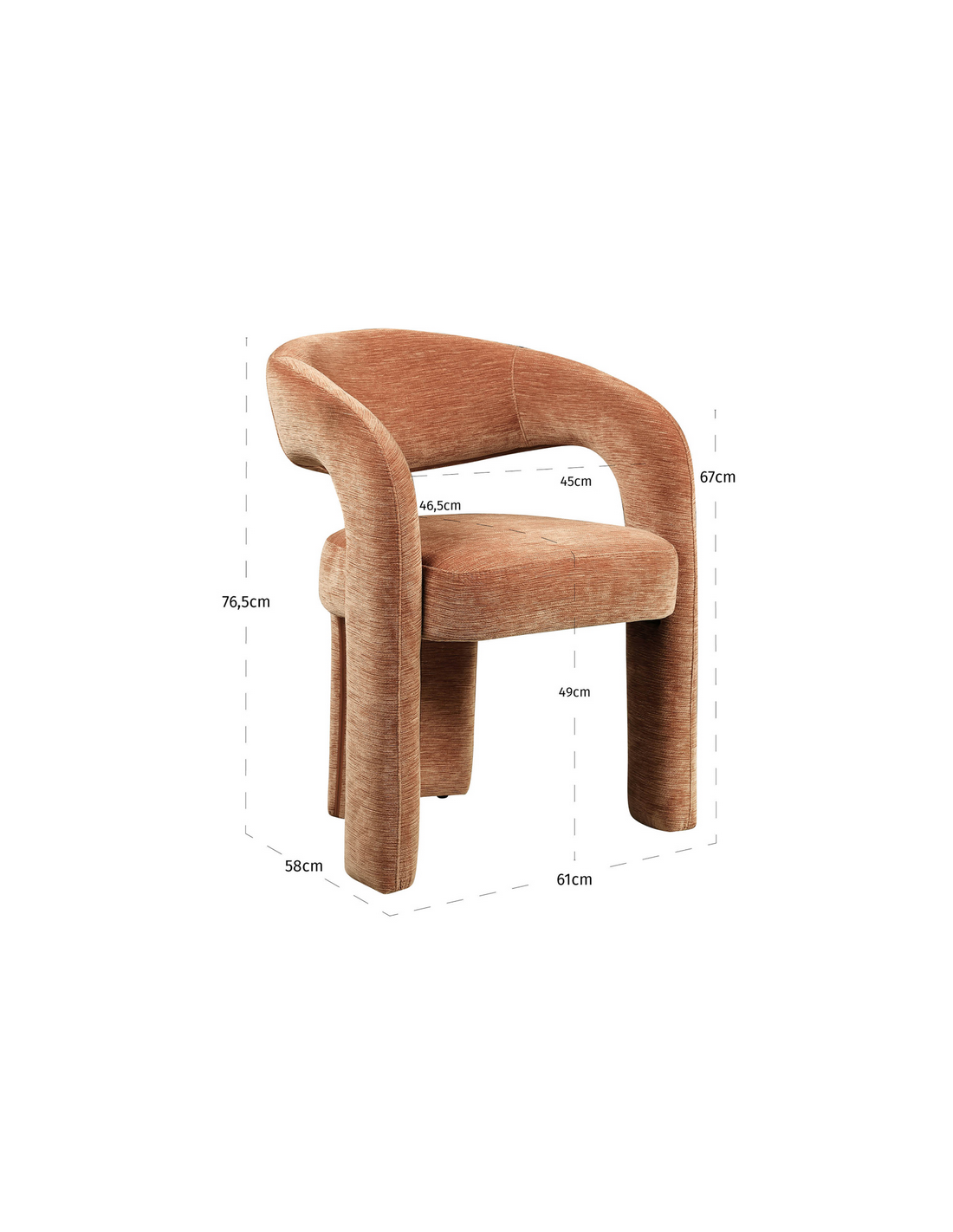 SOHO Spisebordsstol med armlæn, udført i et design fra hollandske Richmond Interiors fremstillet i mokka mousse chenille polyester. Stolen måler 76,5 cm i højden over ryggen og 61 x 58 cm i bredde og dybde.