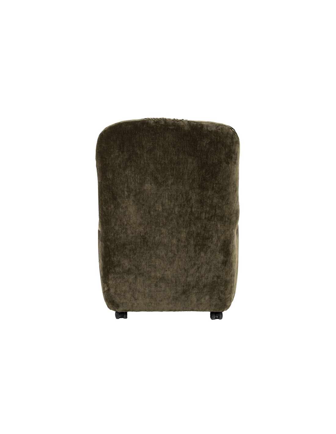 NOOK Spisebordsstol med hjul, udført i et moderne design af lækkert blødt grønt polyester. Stolen måler 88 cm over ryggen og med en siddehøjde på 53 cm.