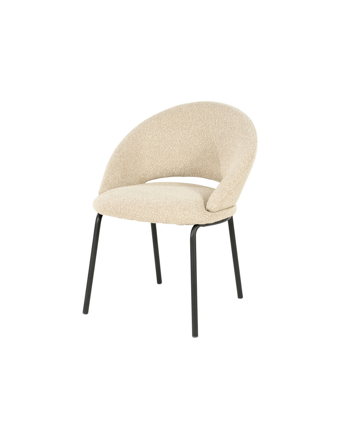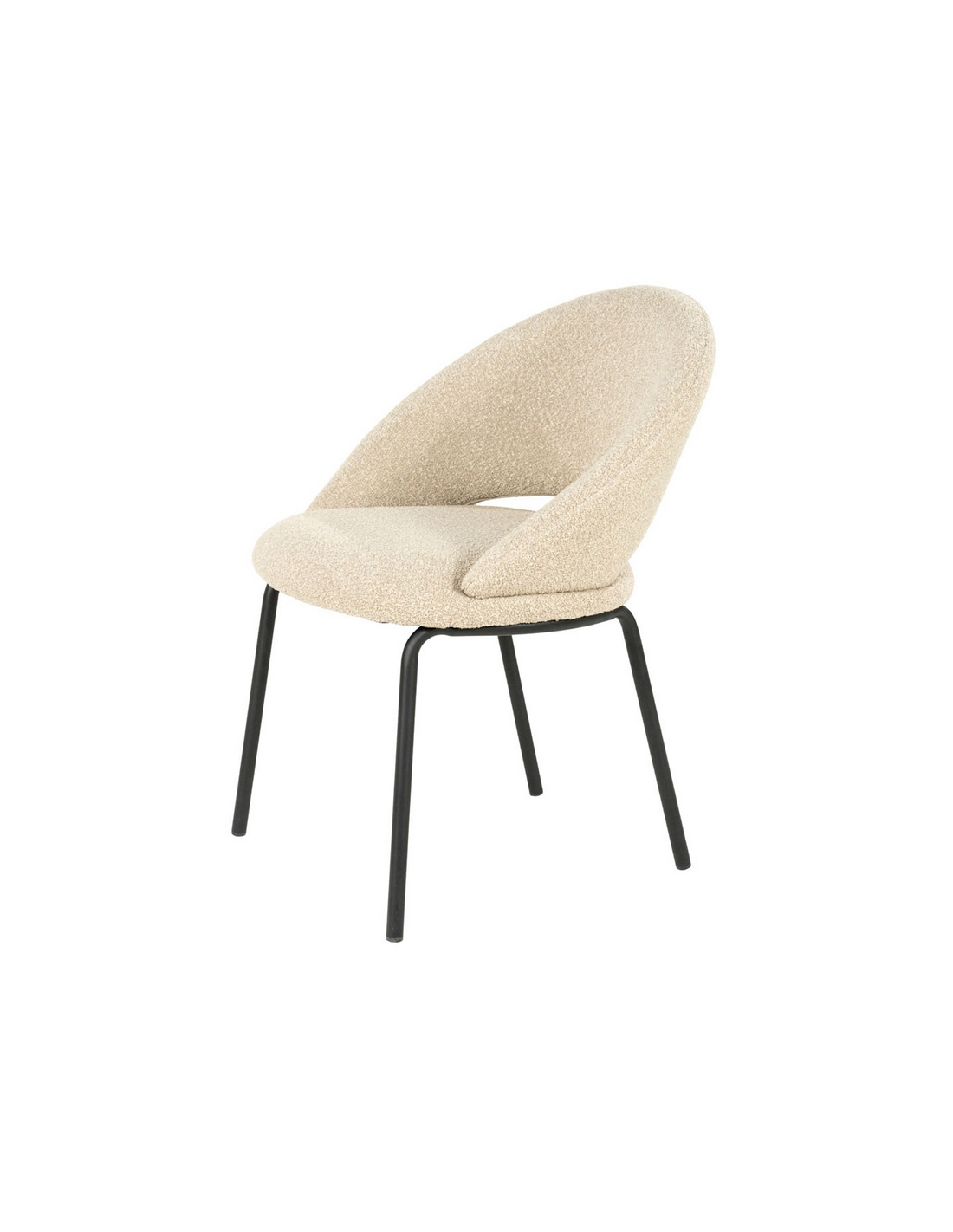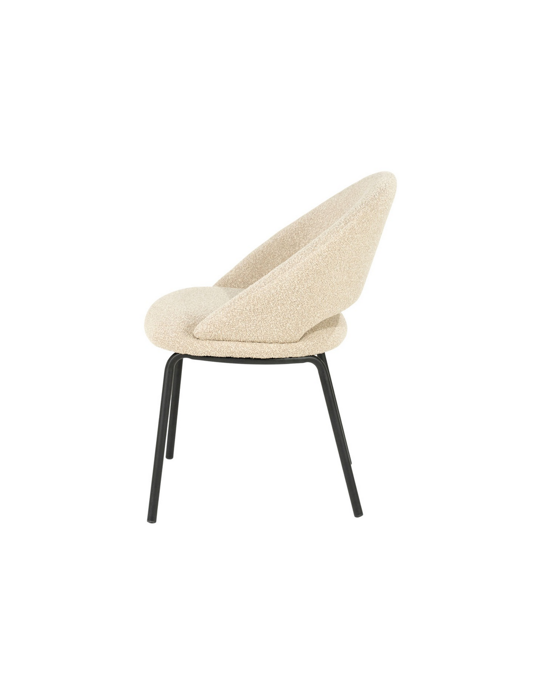 NIDO Spisebordsstol udført i et moderne design af sortlakeret stål og taupefarvet bouclé polyester. Stolen måler 77,5 cm over ryggen og med en siddehøjde på 49 cm.