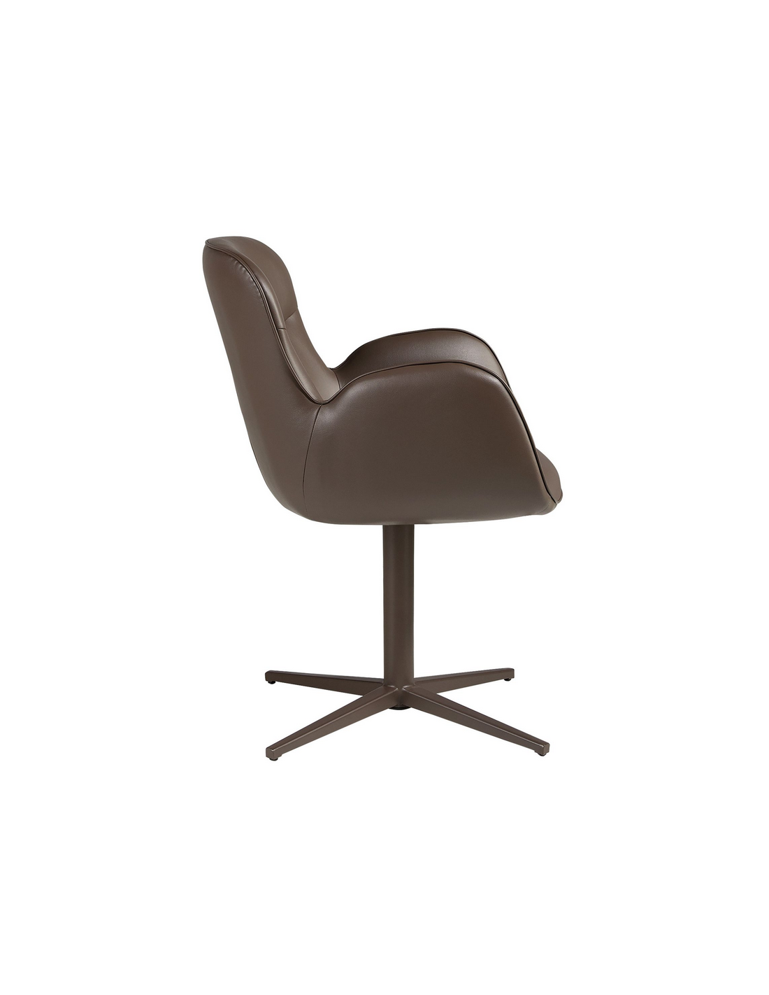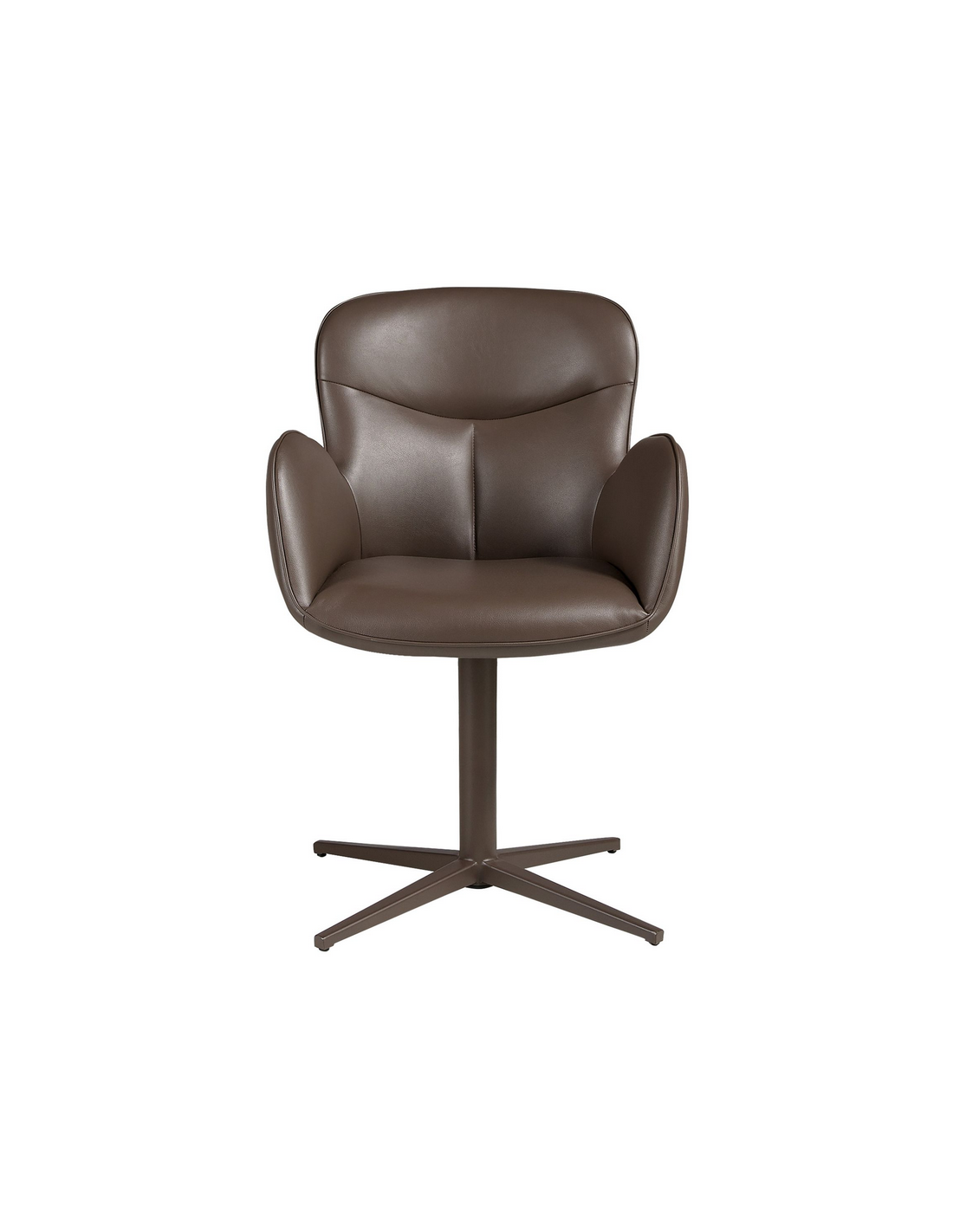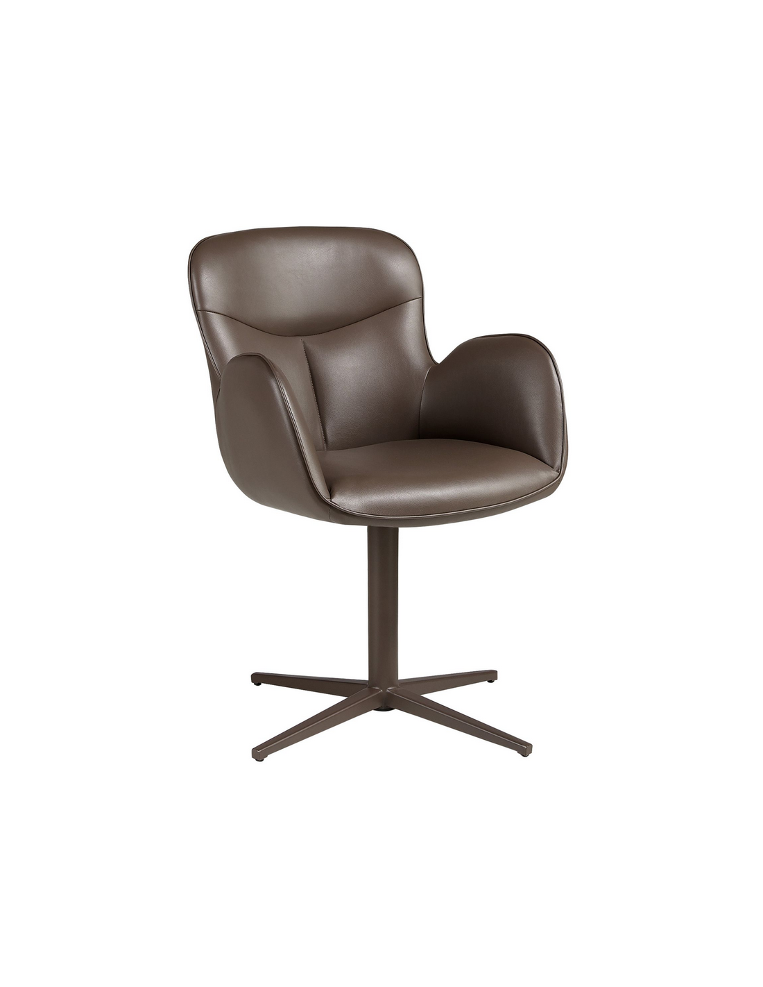 Spisebordsstol med armlæn udført i et moderne design fra Angel Cerdá. Spisebordsstolen er fremstillet med stel i brunlakeret stål og sæde i chokoladebrun vegansk læder (leatherette). Stolen måler 90 cm i højden over ryggen og har en siddehøjde på 49 cm.