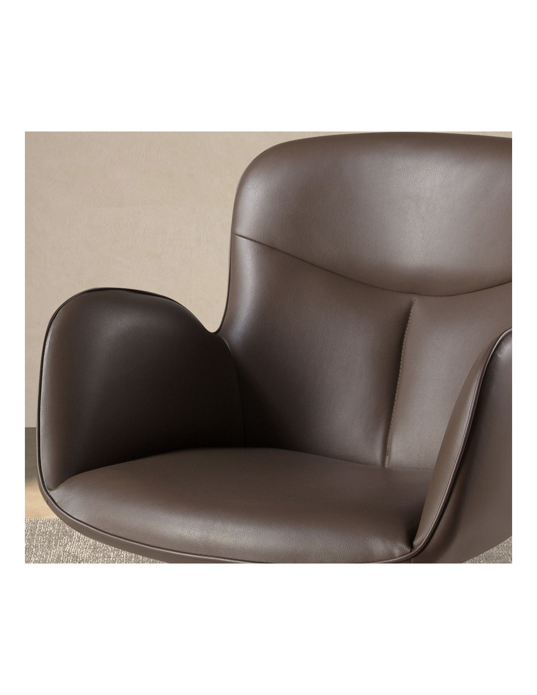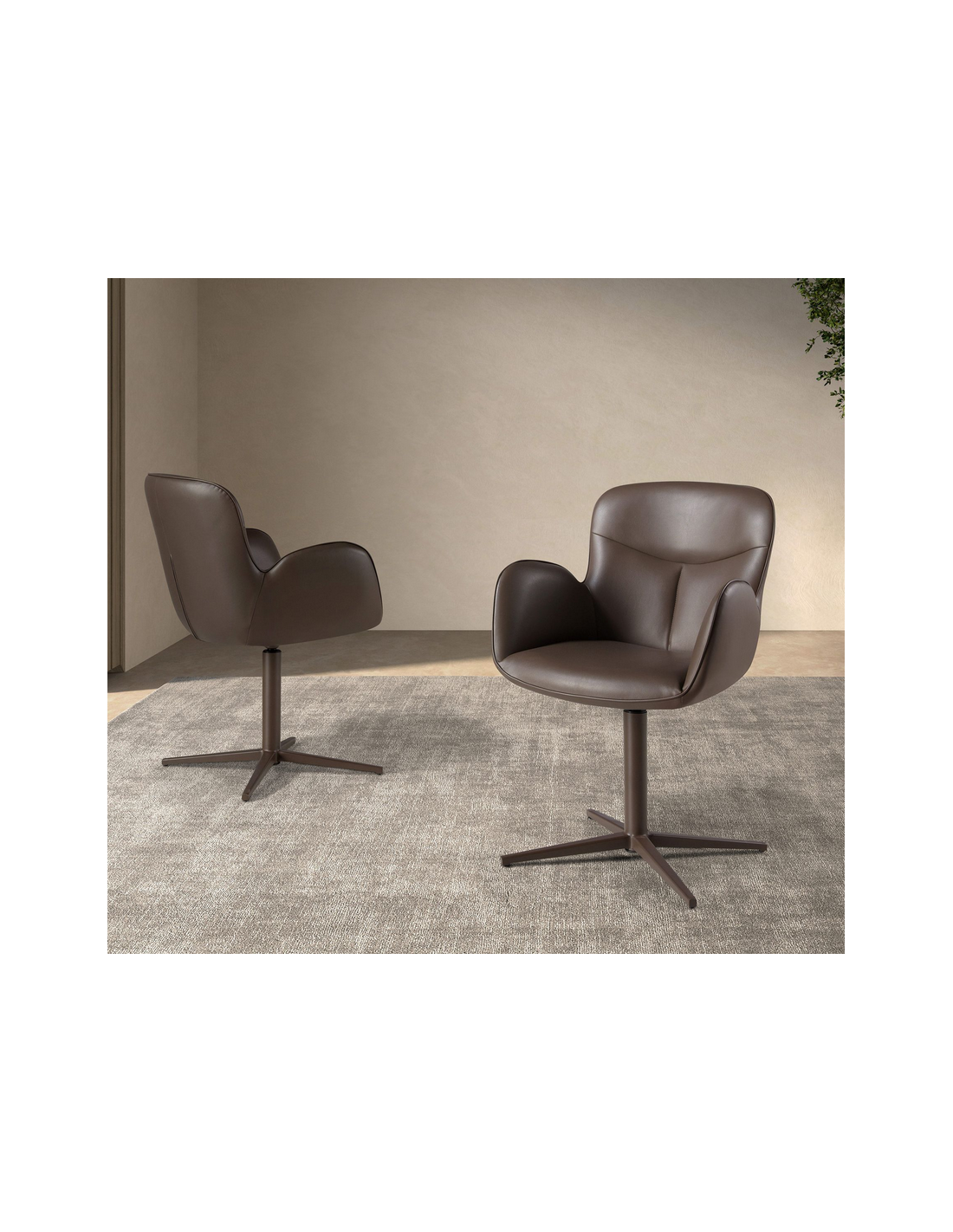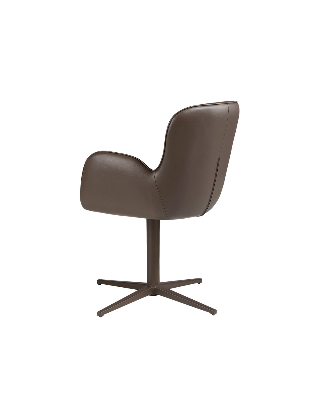 Spisebordsstol med armlæn udført i et moderne design fra Angel Cerdá. Spisebordsstolen er fremstillet med stel i brunlakeret stål og sæde i chokoladebrun vegansk læder (leatherette). Stolen måler 90 cm i højden over ryggen og har en siddehøjde på 49 cm.