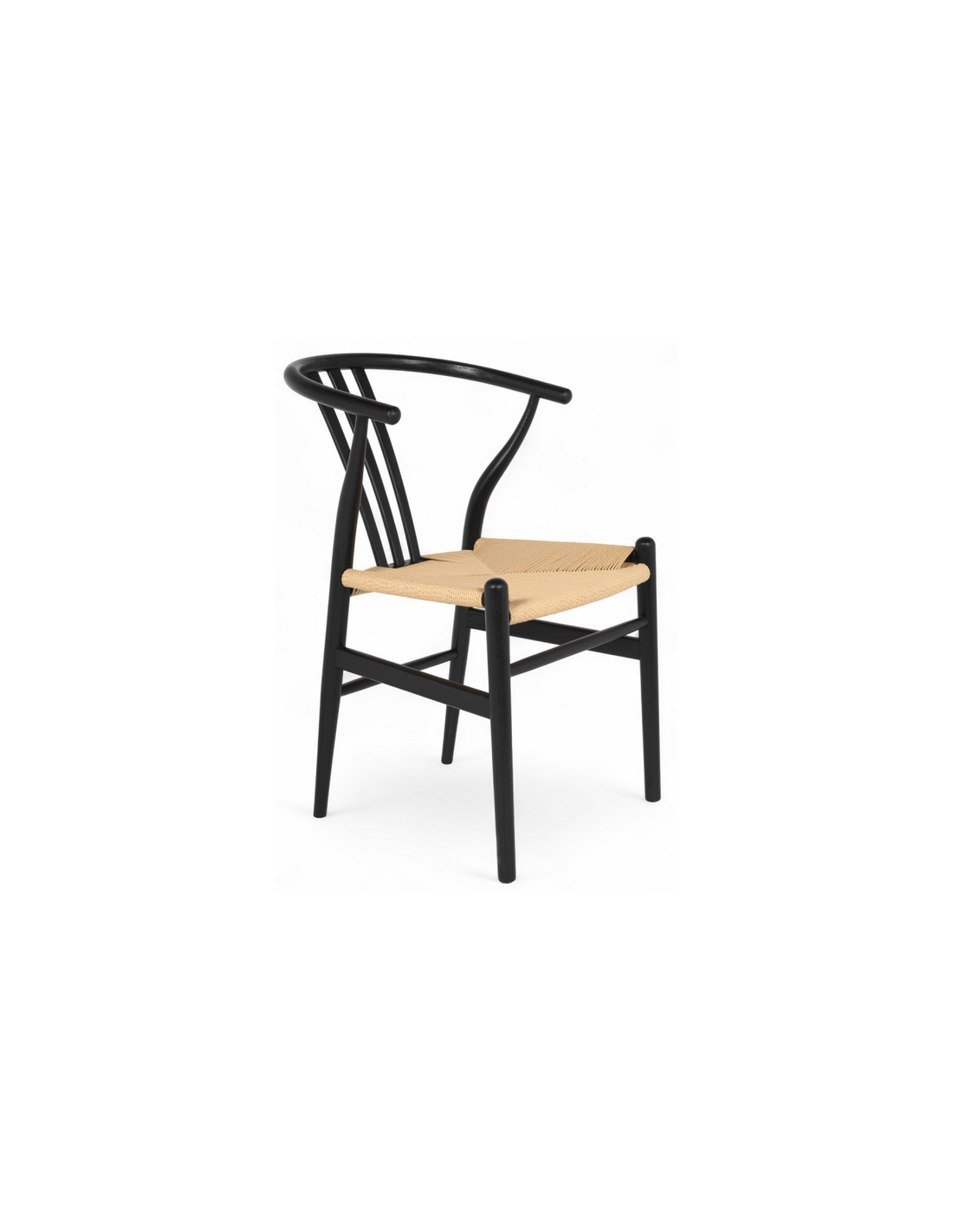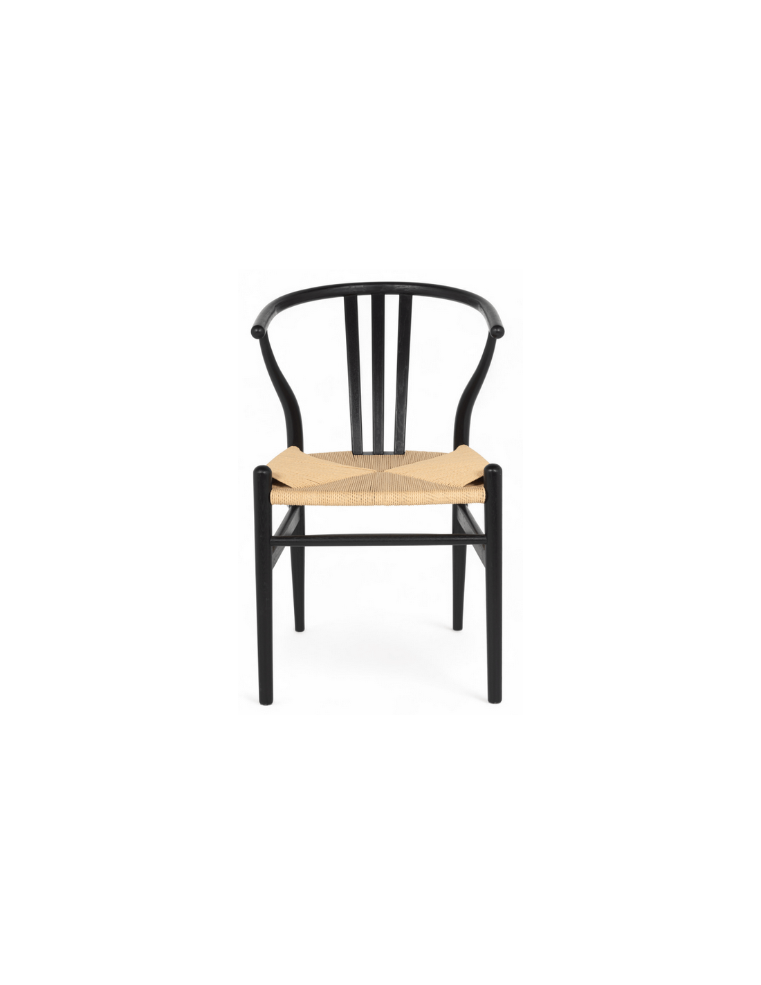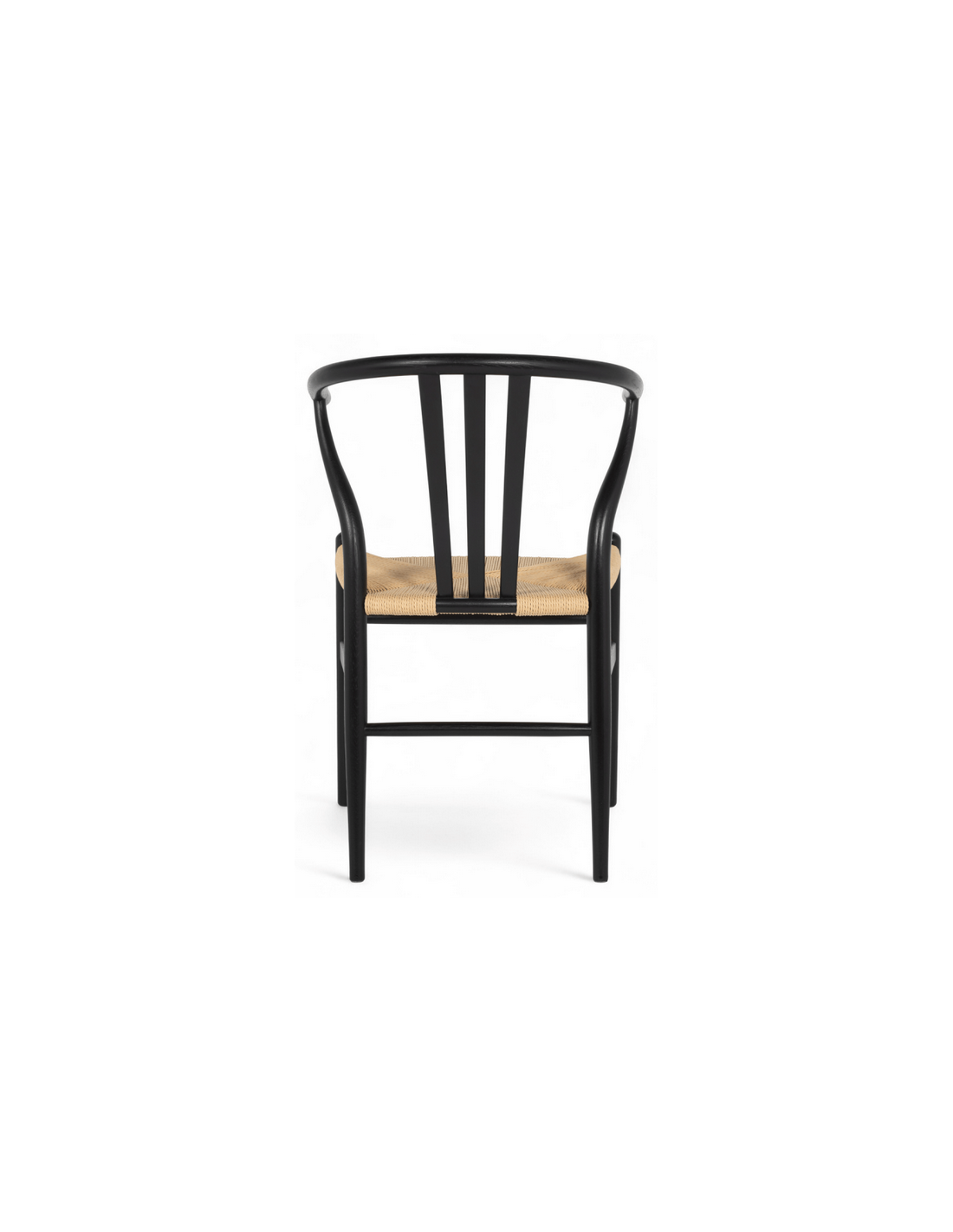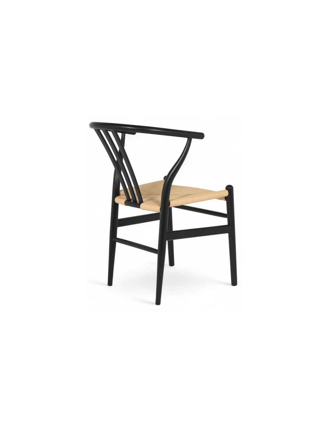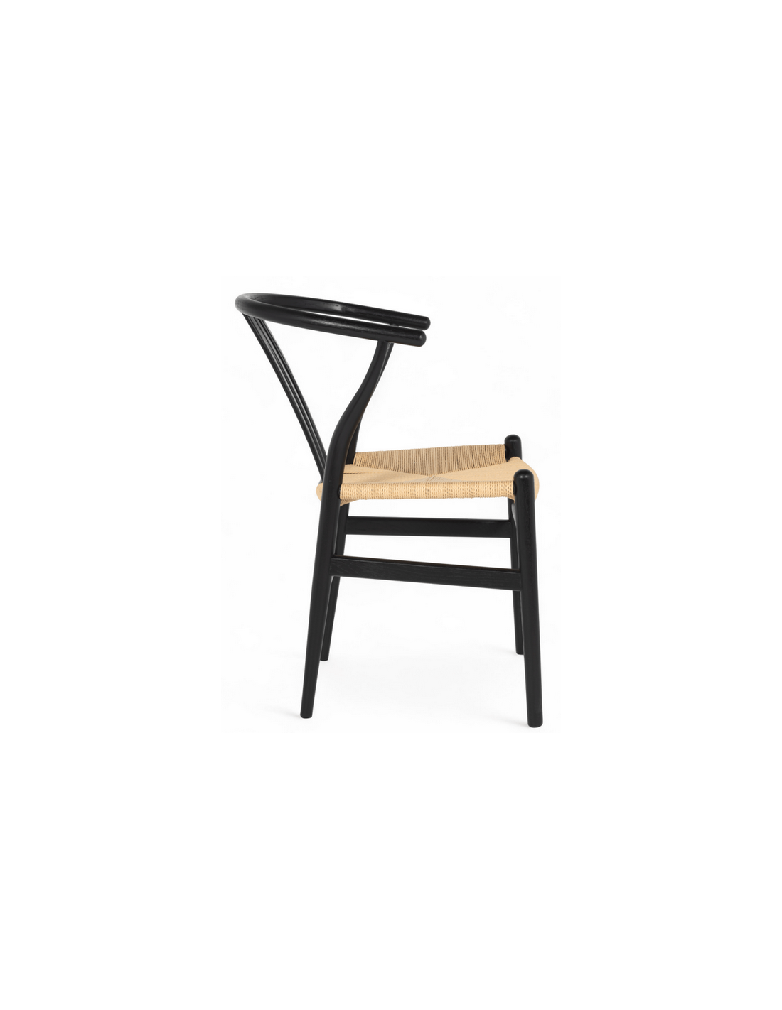Sæt med 2 x spisebordsstole med armlæn, udført i et moderne og nordisk design fremstillet i sortlakeret egetræ og beige håndflettet papirreb. Stolene måler 78 cm i højden over ryggen og med siddehøjde på 45 cm.