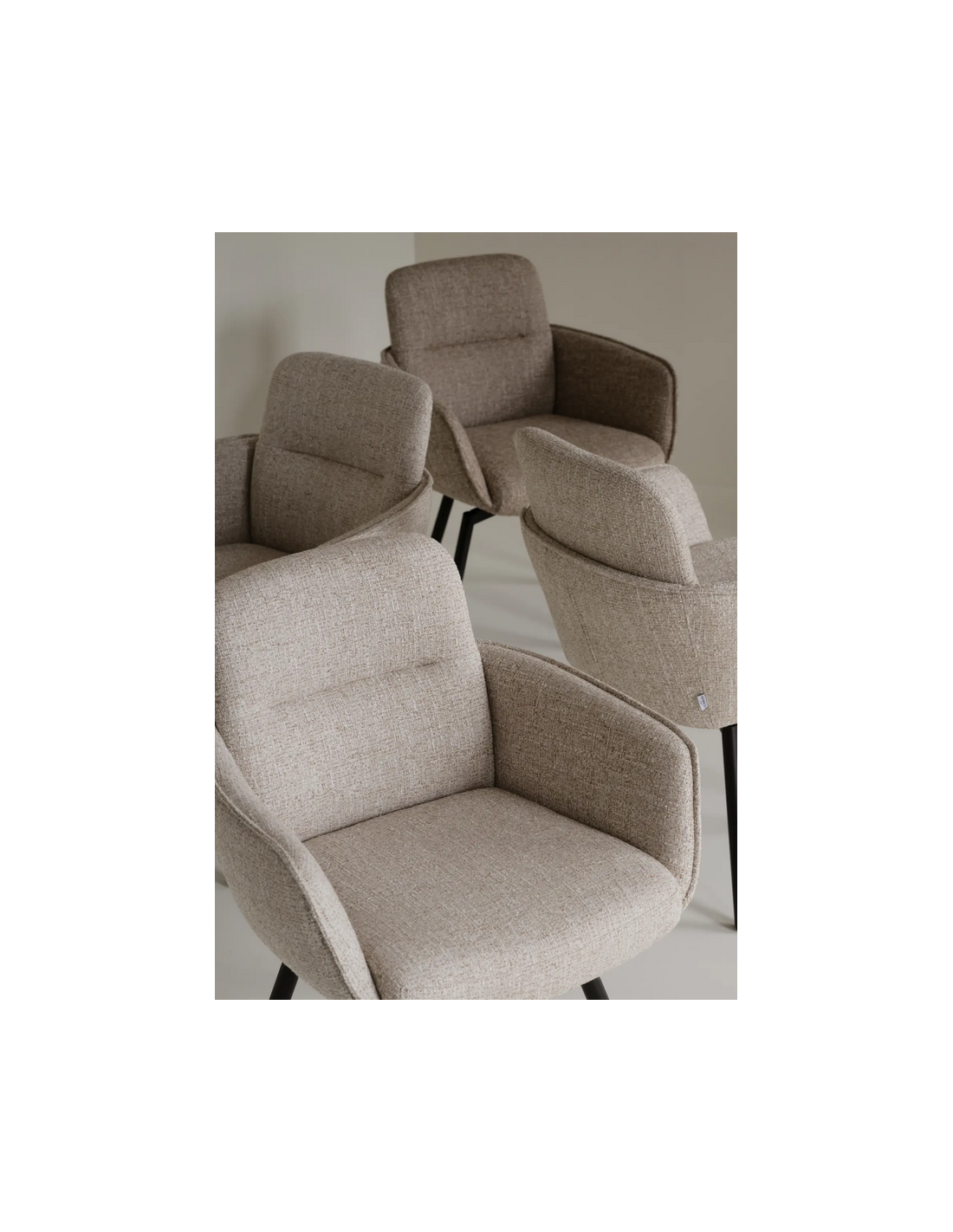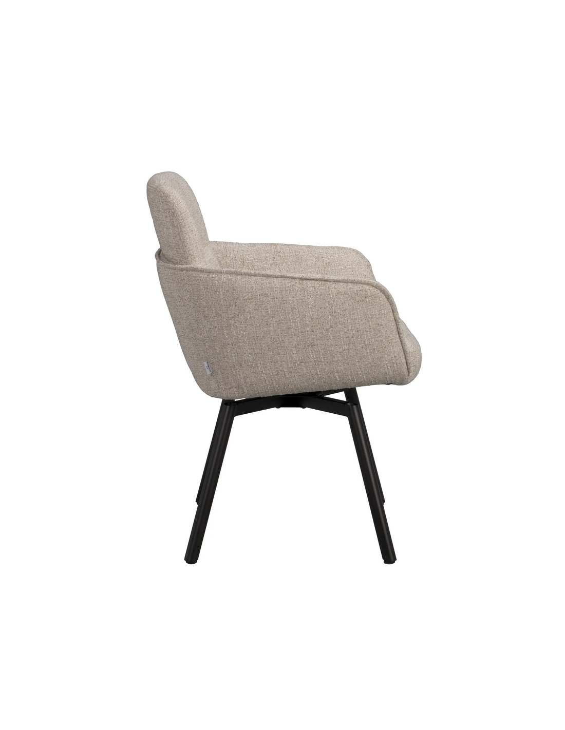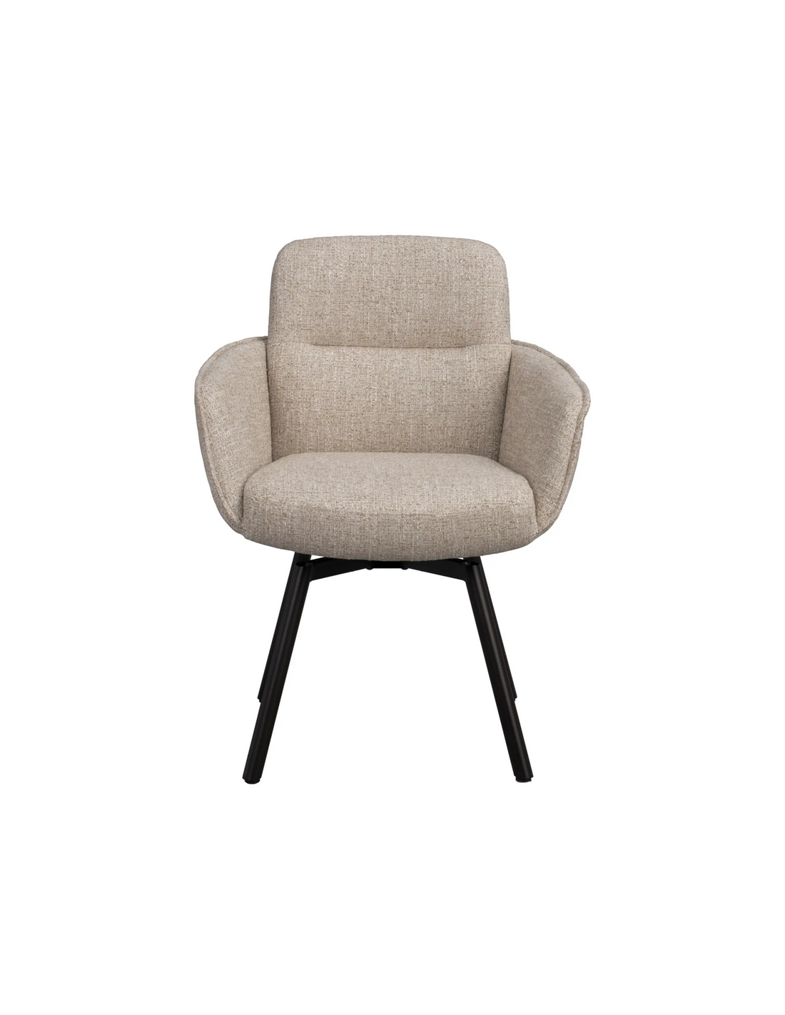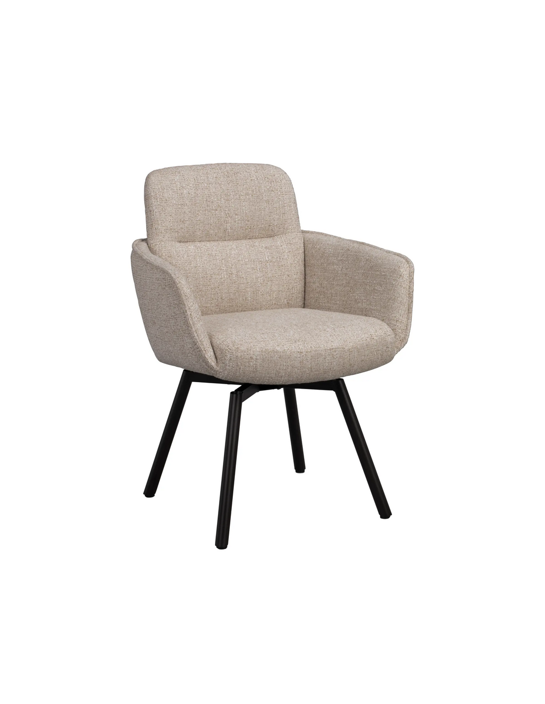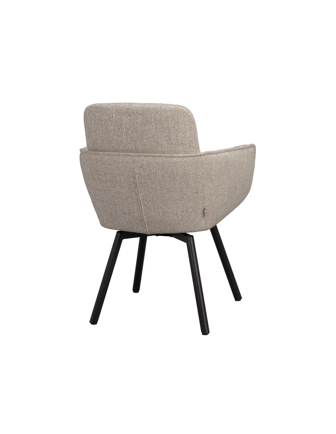 Roswell sæt med 2 x spisebordsstole med drejefod udført i et design fremstillet af sortlakeret metal og lys beige polyester. Stolene måler 85 cm i højden over ryggen og med siddehøjde på 51 cm.