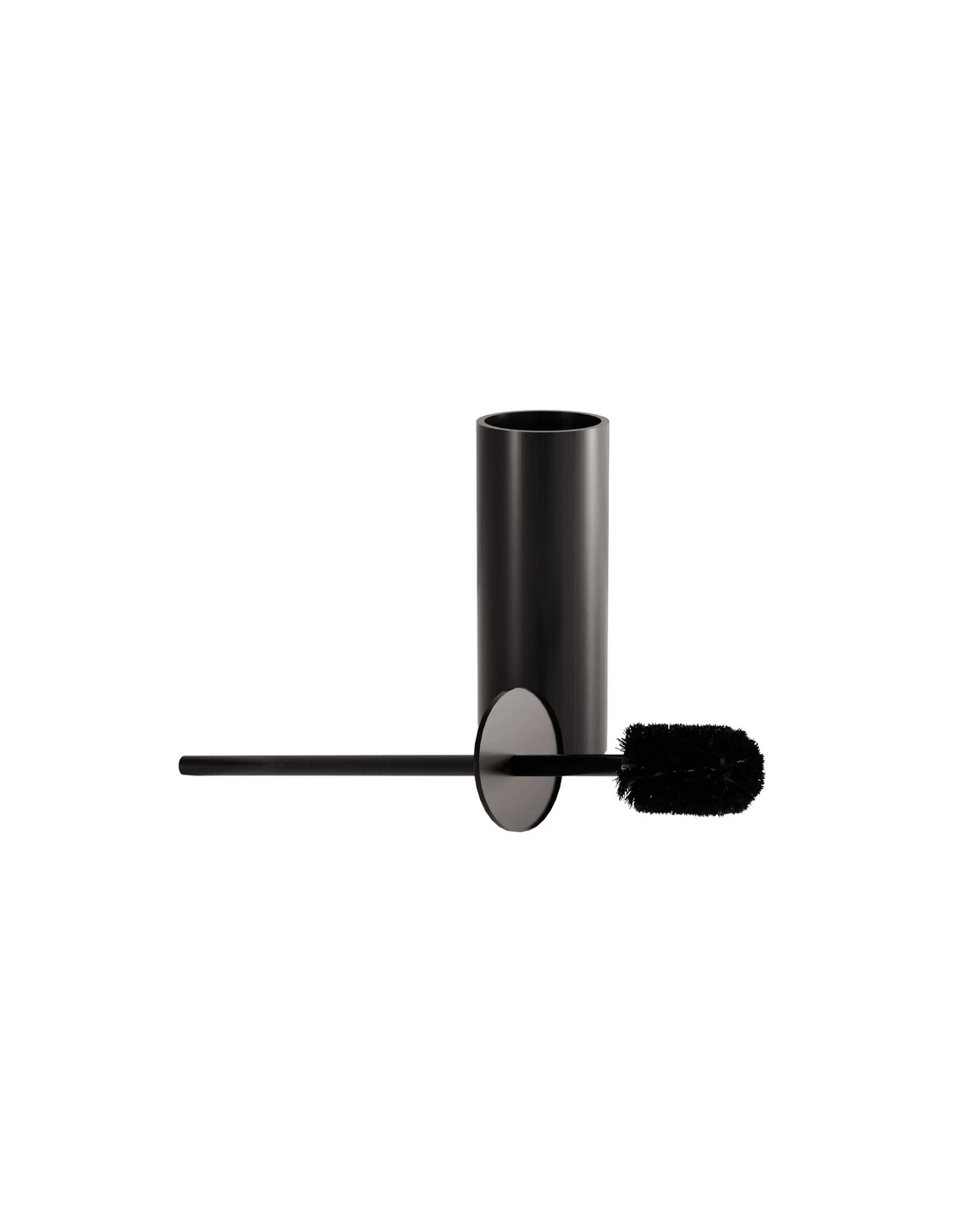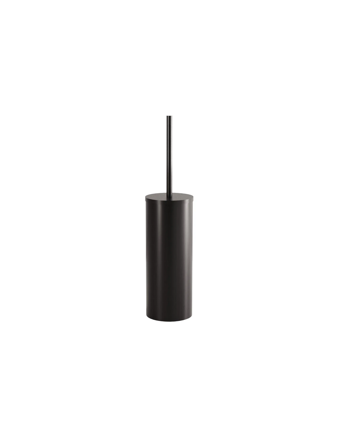 Toiletbørste udført i et moderne og stilrent design af mat sortlakeret metal og kunststof. Toiletbørsten er til gulv og måler 40 cm i højden og 9 cm i diameter.