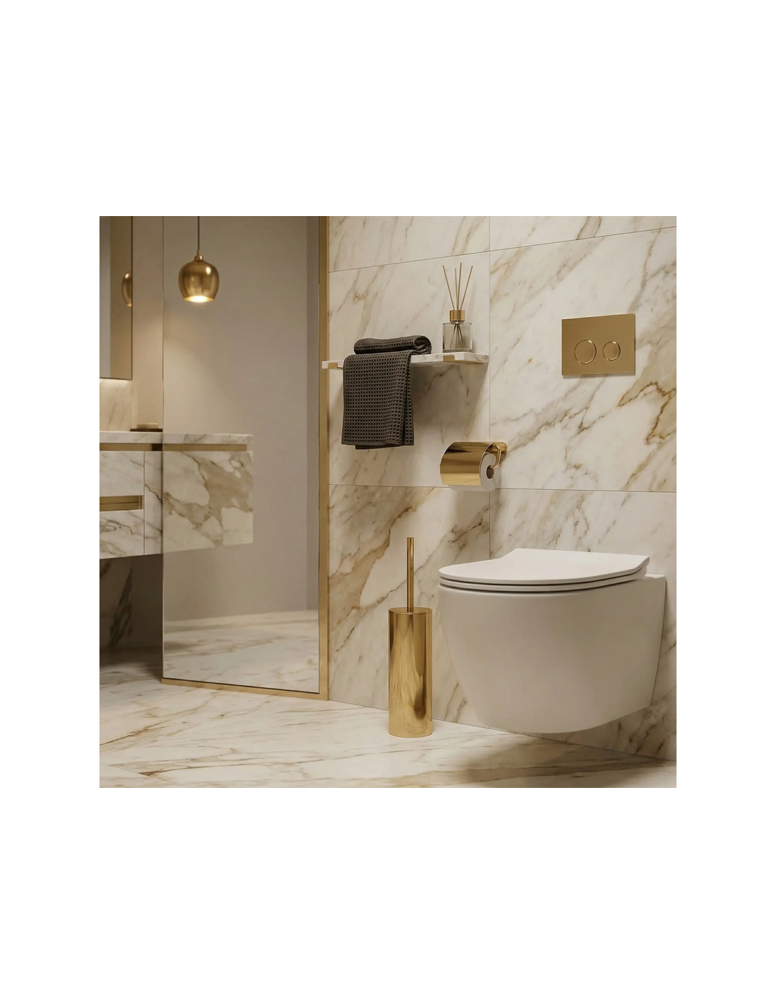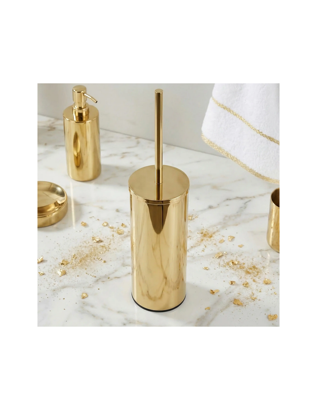 Toiletbørste i metal og kunststof H40 cm - Guld