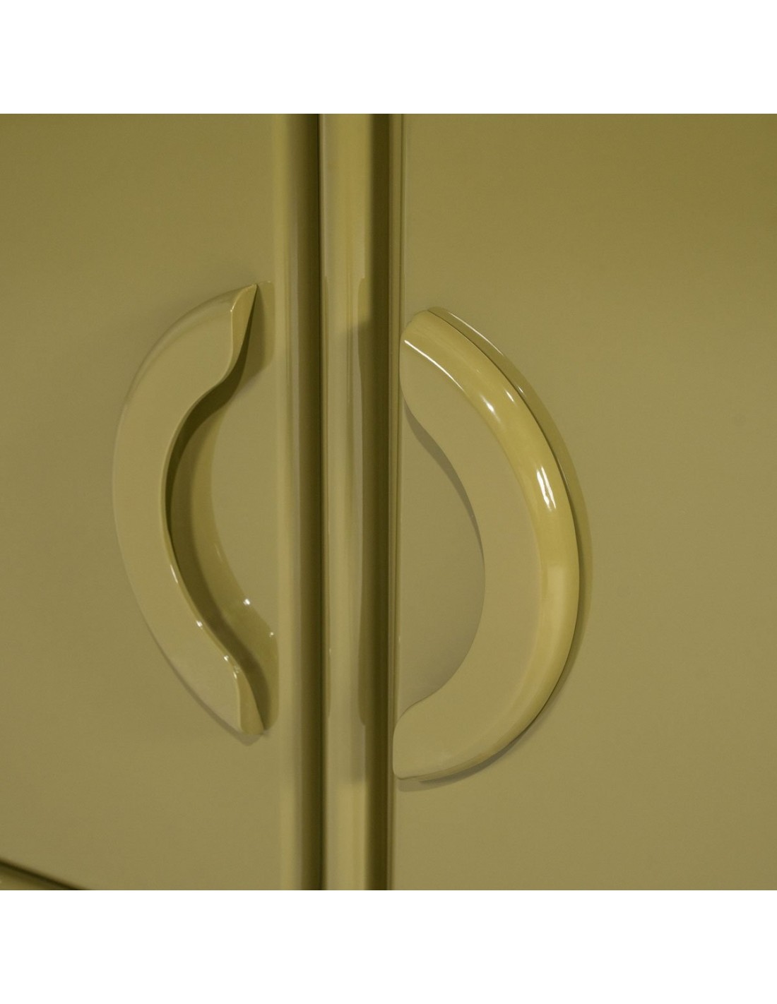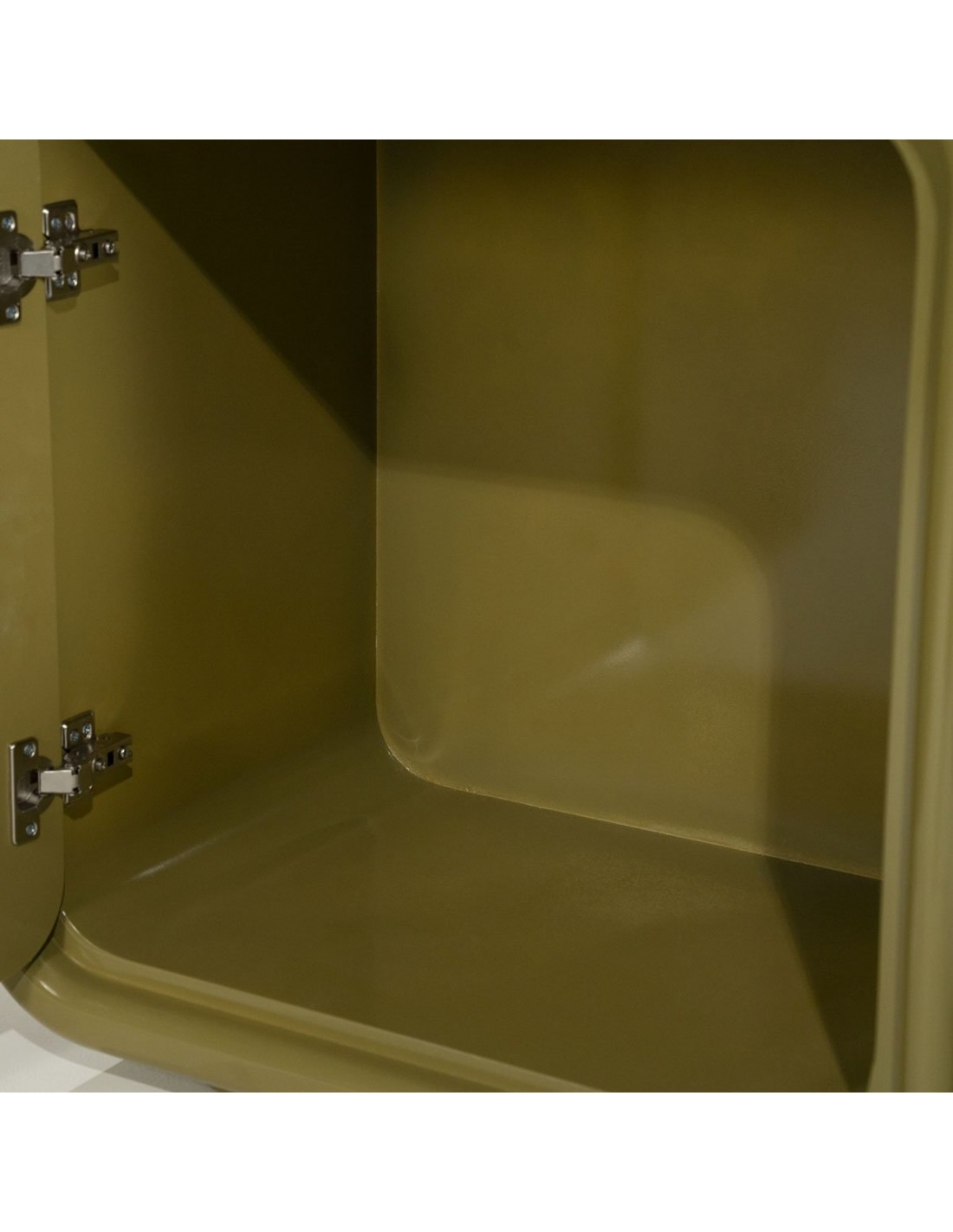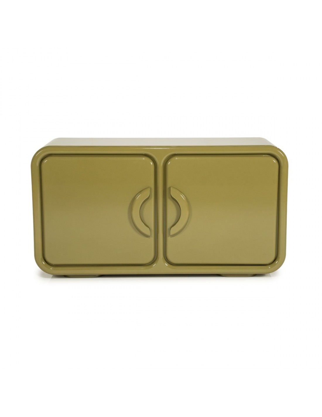 GUBBY Tvbord med 2 skabe, udført i et retropræget design af grøn højglans lakeret MDF. Tvbordet måler 65 cm i højden og 120 x 40 cm i bredde og dybde.