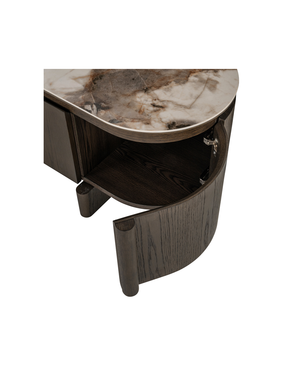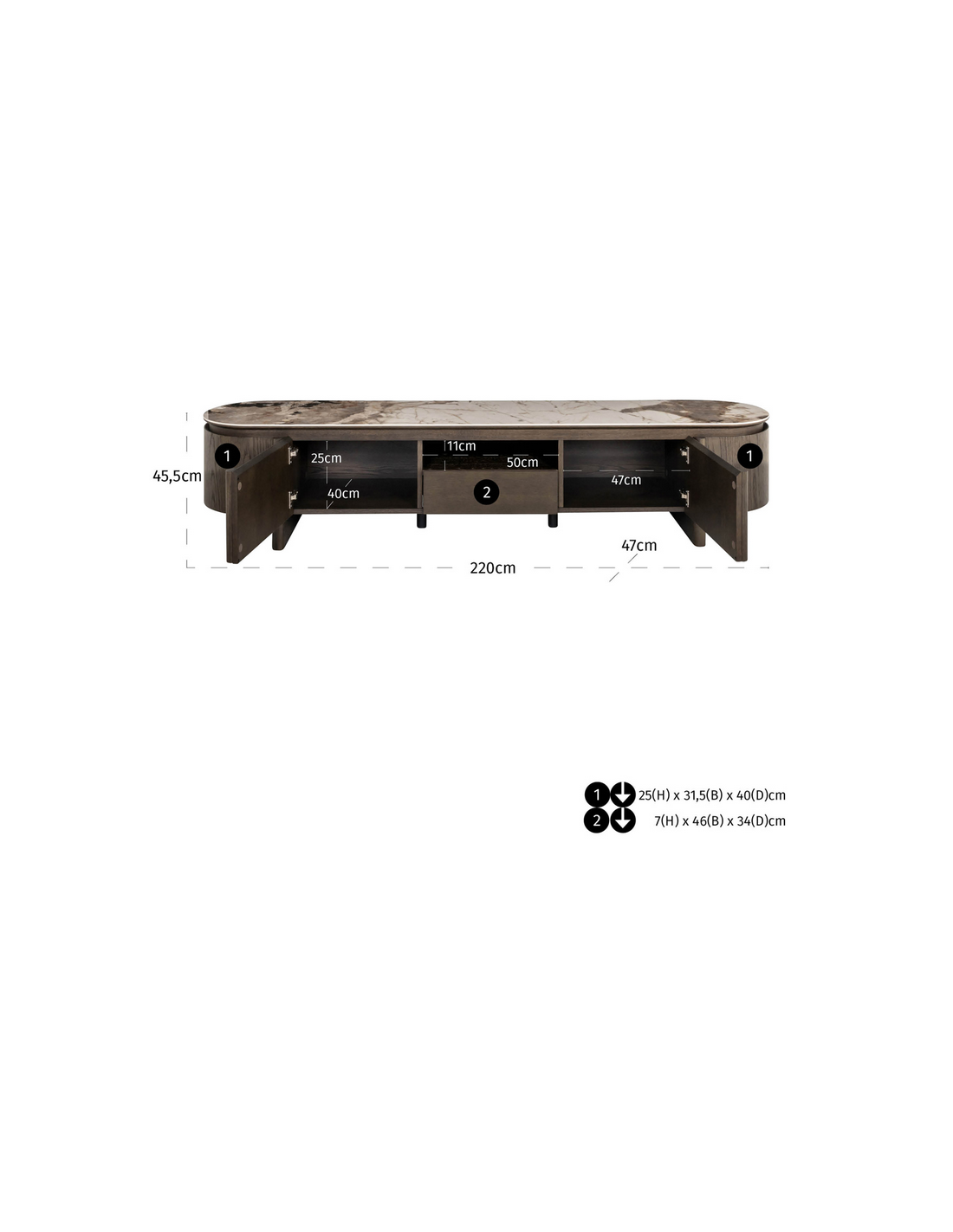 LANGFORD Tvbord i egetræsfinér, MDF og keramik H45,5 x B220 x D47 cm - Brun/Brun marmor