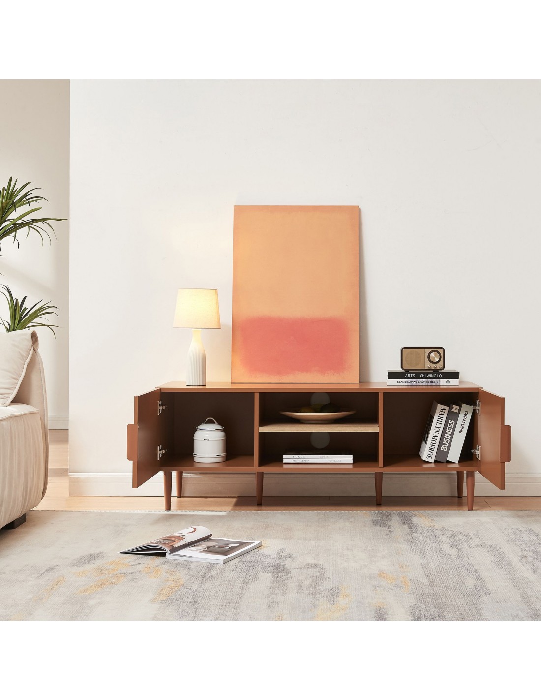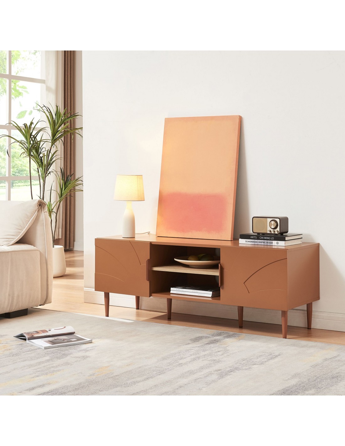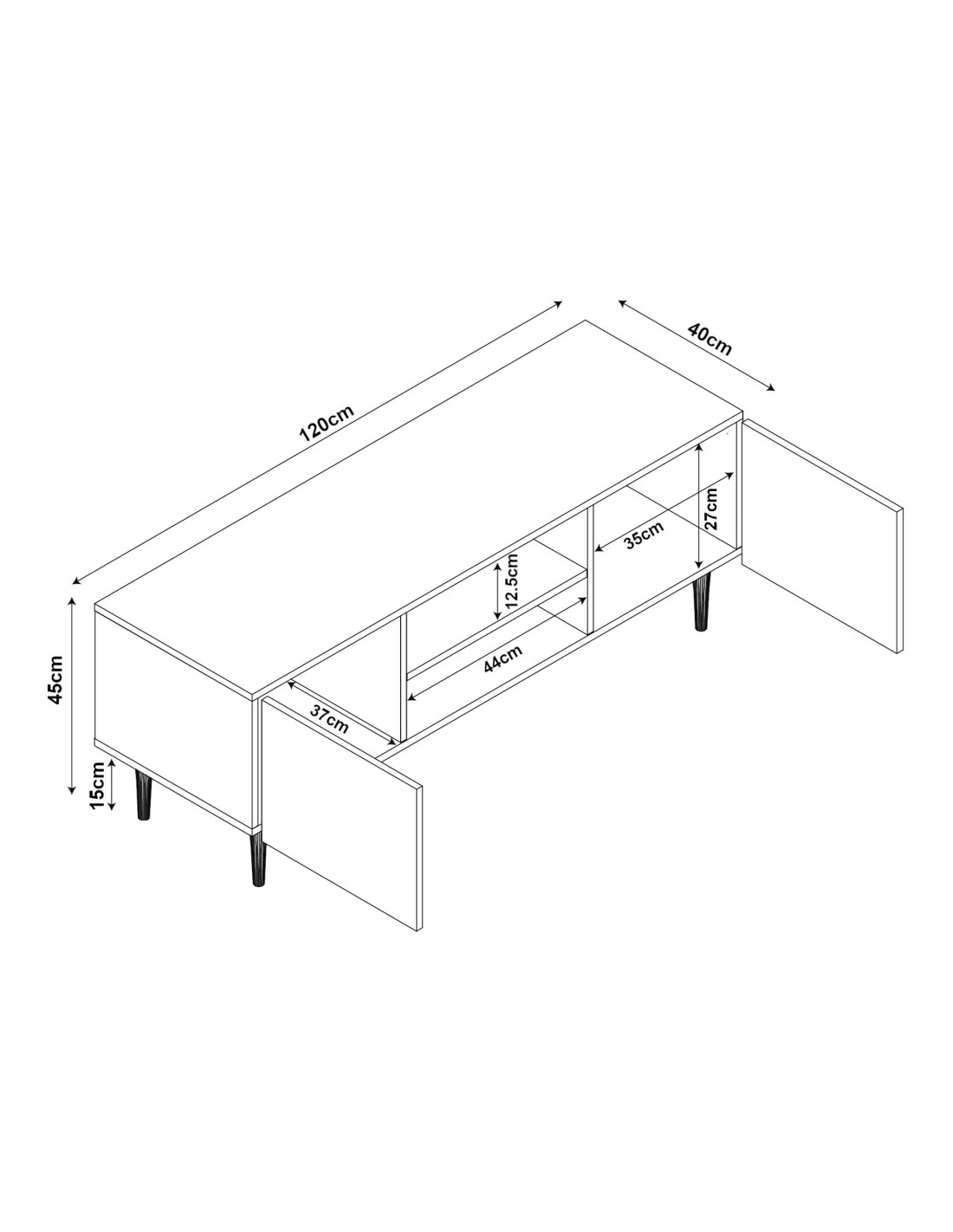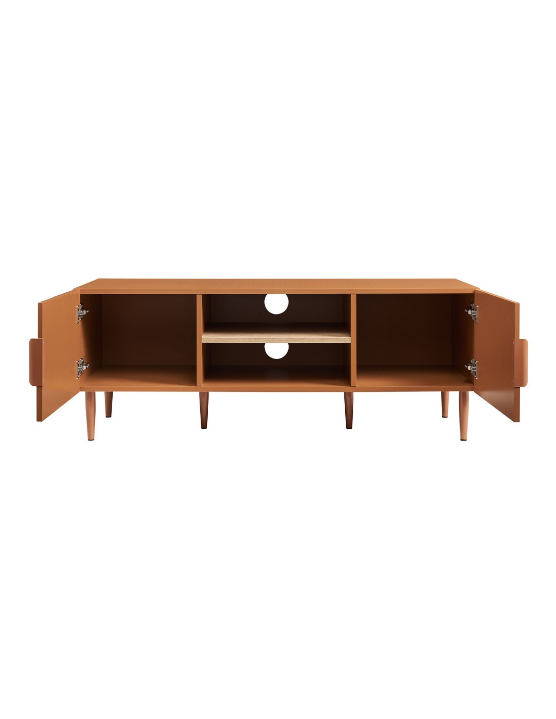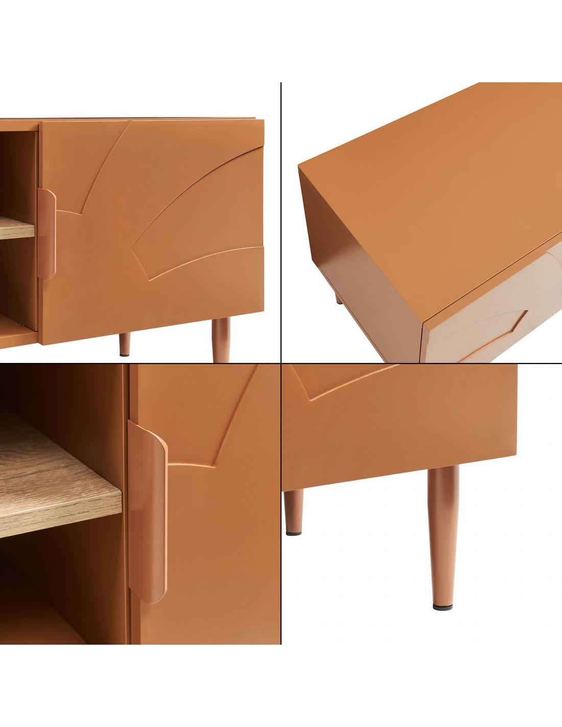 STAR Tvbord udført i et moderne og Skandinavisk design af rustfarvet lakeret stål og rustfarvet- og egetræsfarvet MDF. Tvbordet har 2 skabe og 2 åbne hylderum. Tvbordet måler 45 cm i højden og 120 x 40 cm i bredde og dybde.