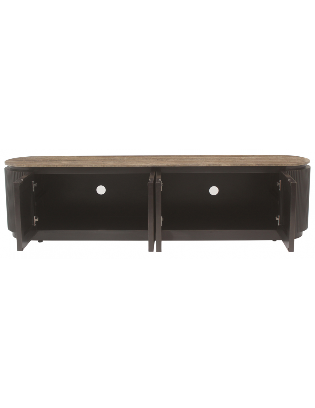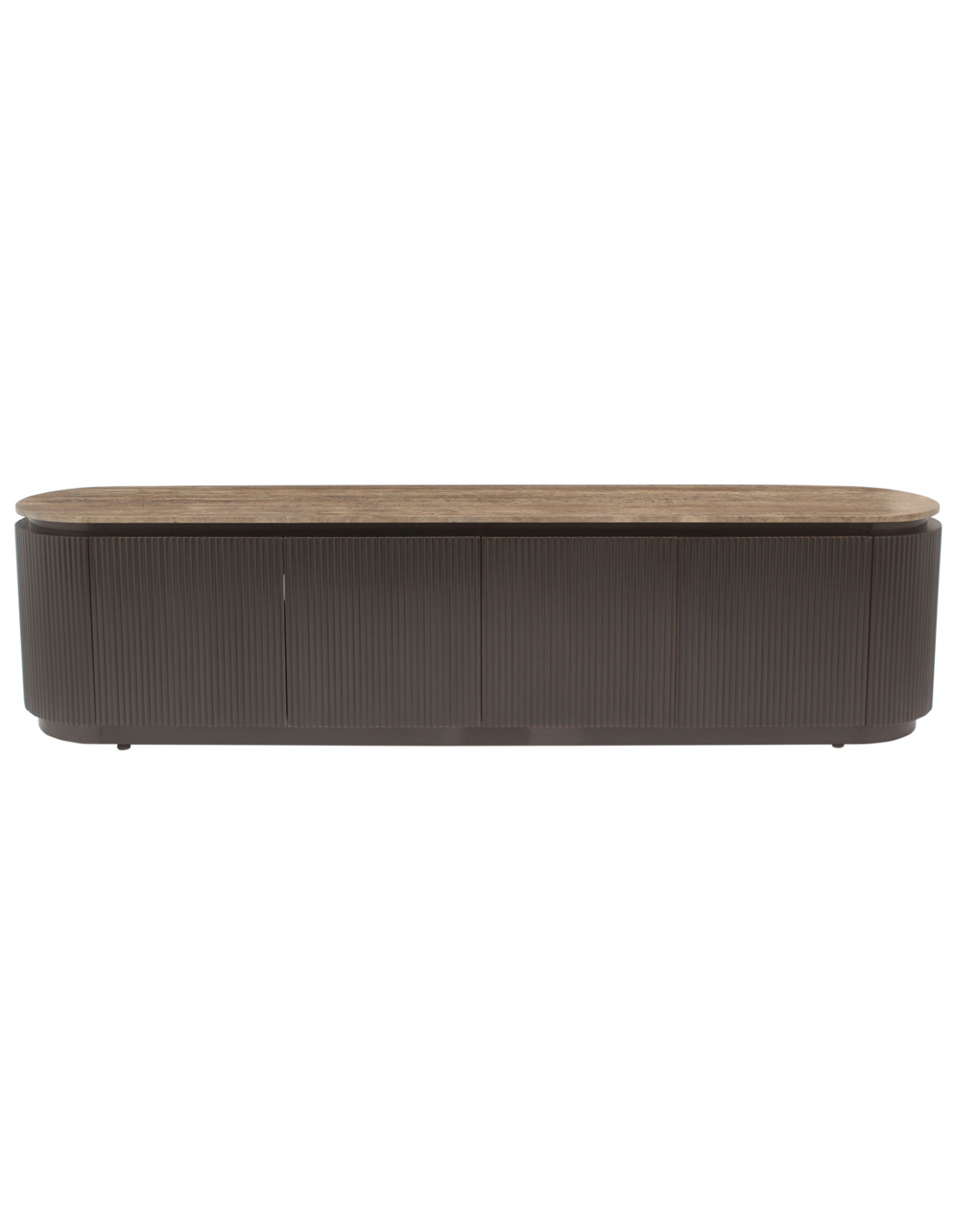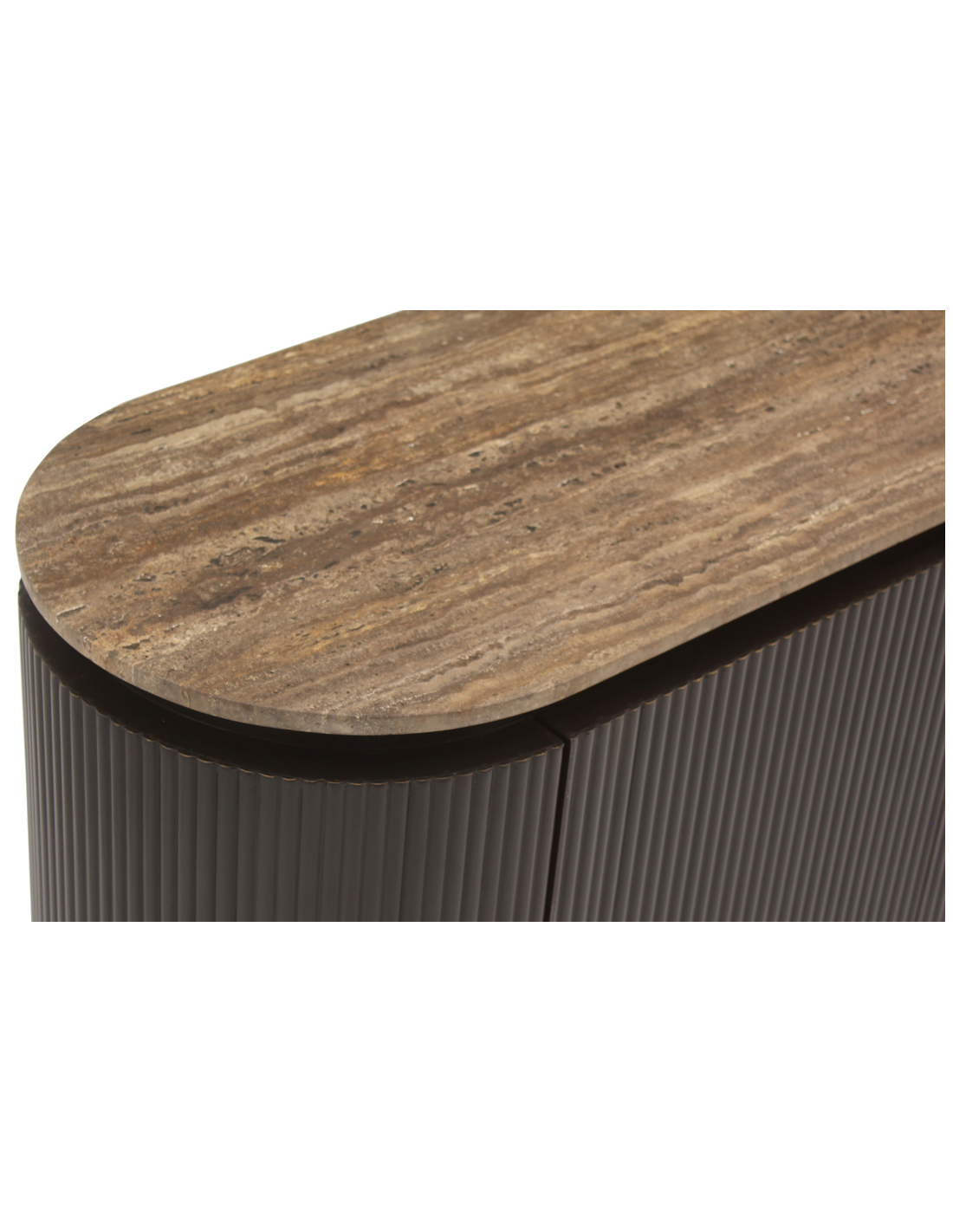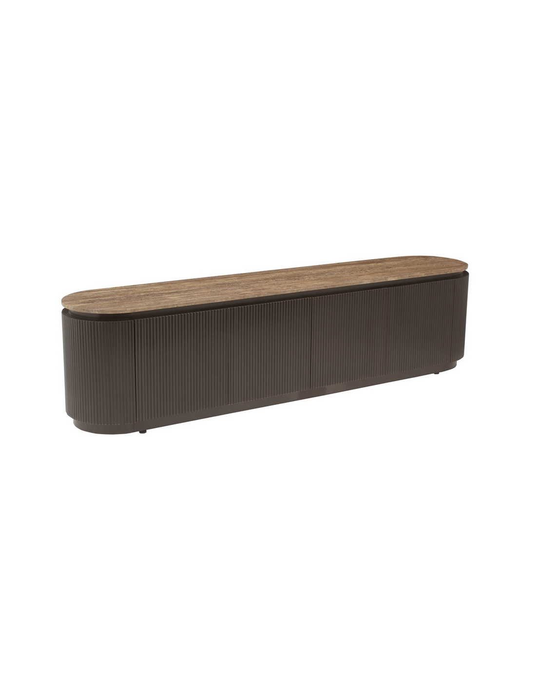 RUSSO Tvbord i messing, MDF og travertin H50 x B200 x D40 cm - Antik brun/Brun travertin