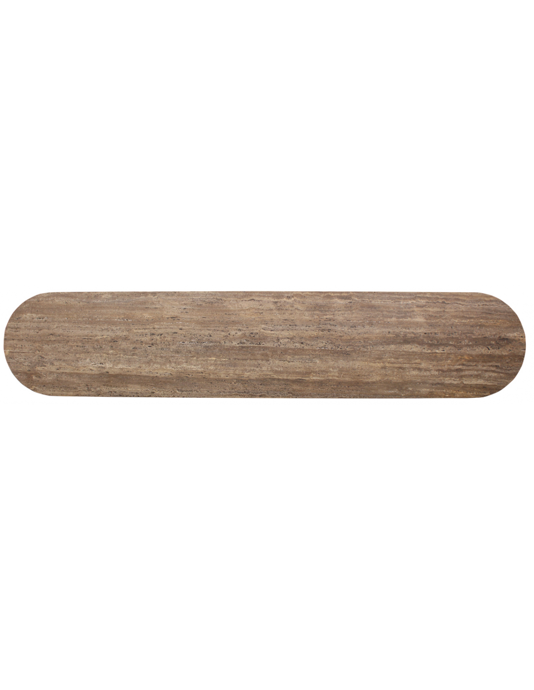 RUSSO Tvbord fra hollandske Richmond Interiors, udført i et design af antik brunlakeret messing og MDF og med topplade i brun travertin. Tvbordet måler 50 cm i højden og 200 x 40 cm i bredde og dybde.