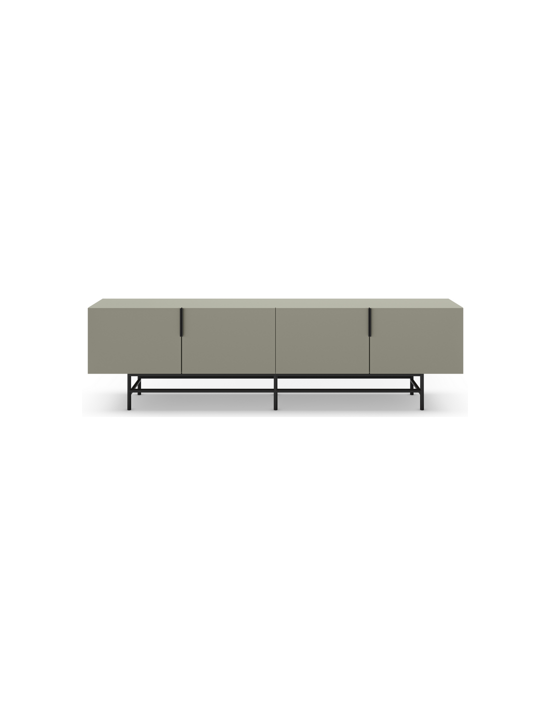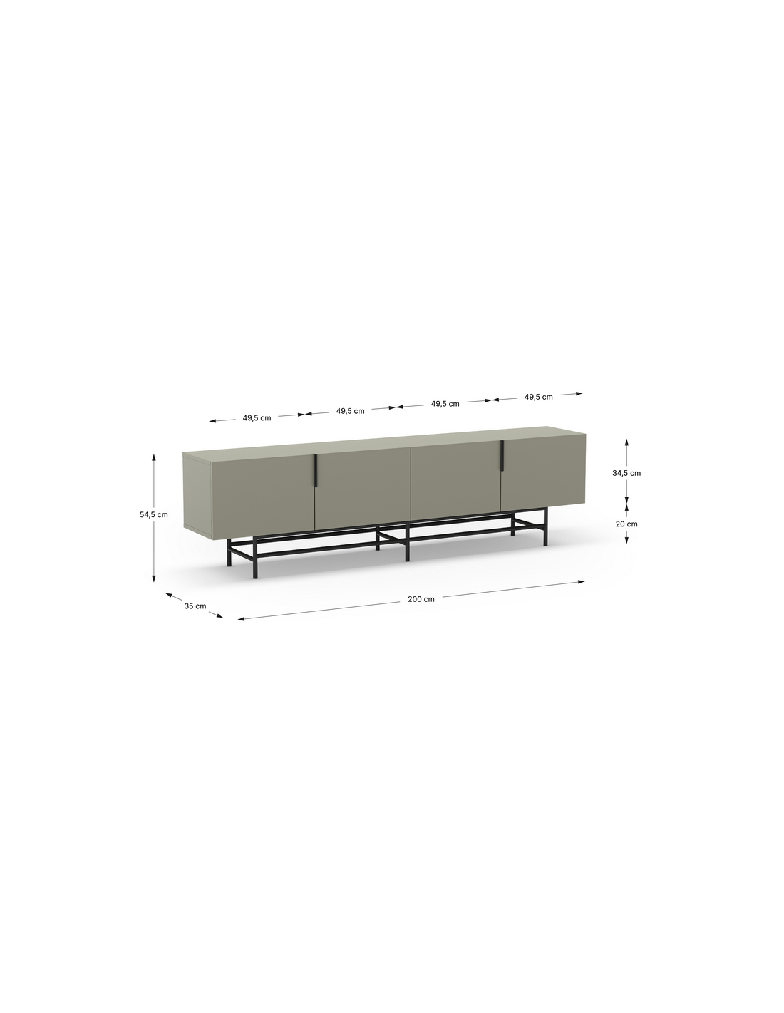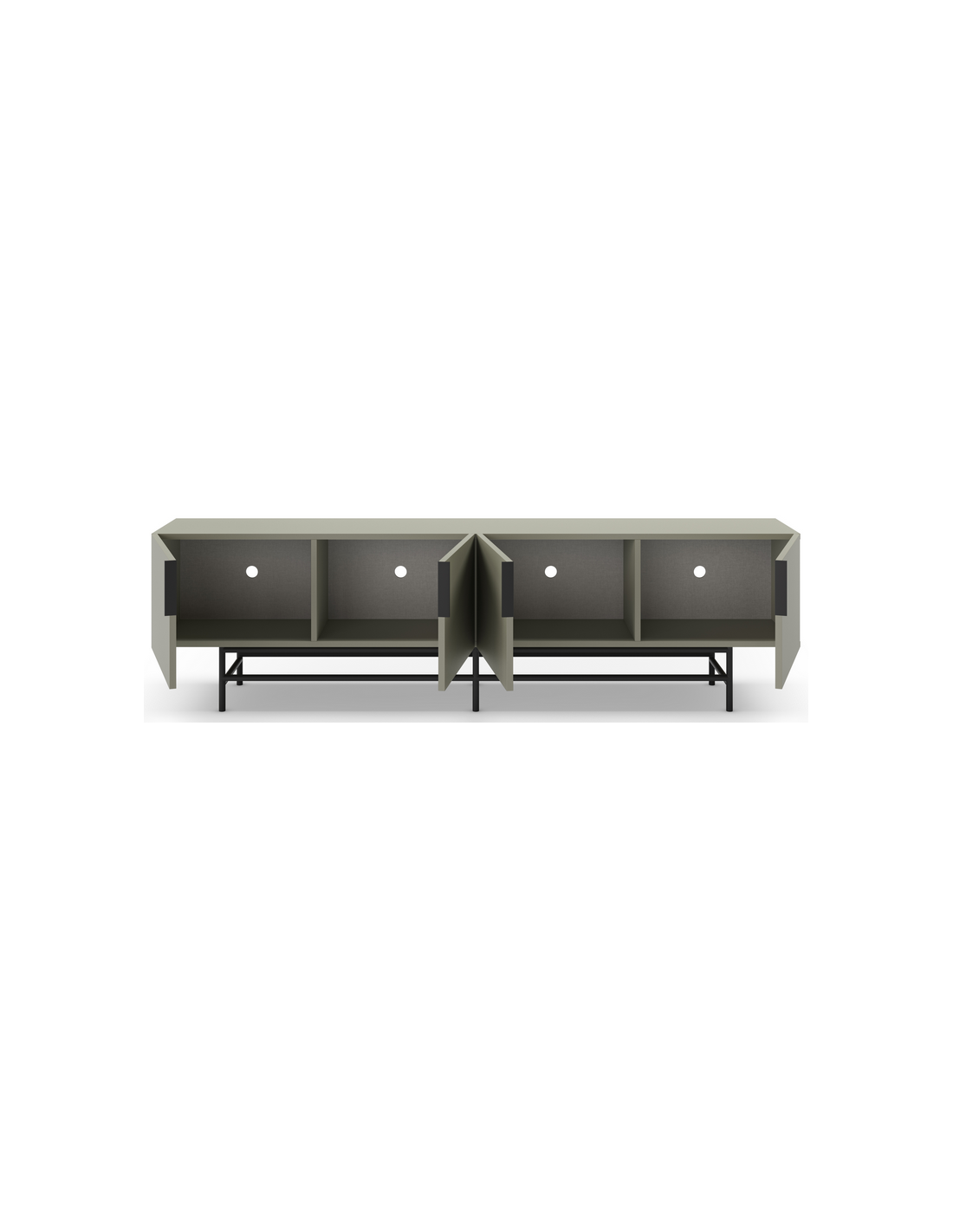 ELDIA Tvbord udført i et moderne design af sortlakeret metal og grøn melamin. Tvbordet måler 54,5 cm i højden og 200 x 35 cm i bredde og dybde og kommer med 4 skabe.