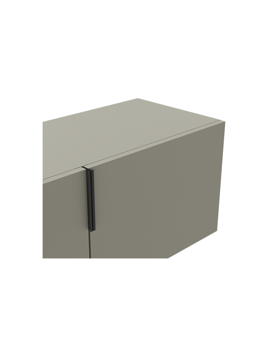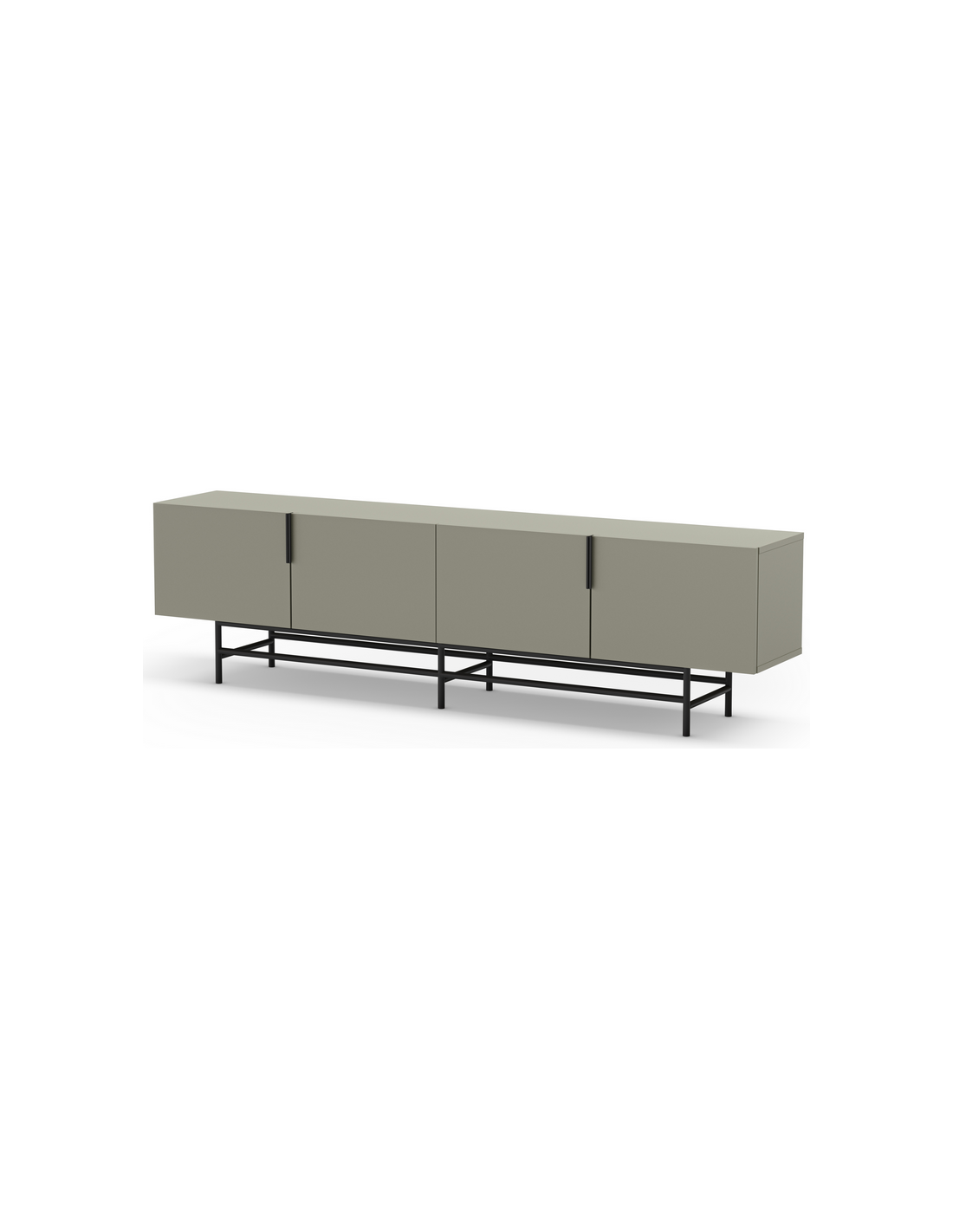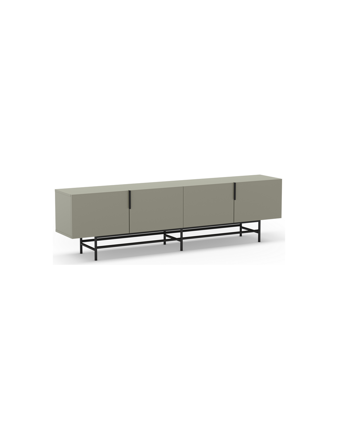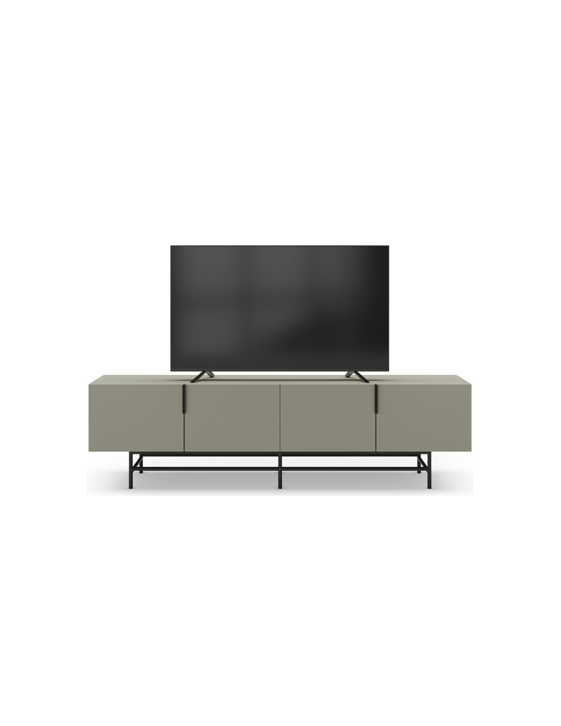 ELDIA Tvbord udført i et moderne design af sortlakeret metal og grøn melamin. Tvbordet måler 54,5 cm i højden og 200 x 35 cm i bredde og dybde og kommer med 4 skabe.