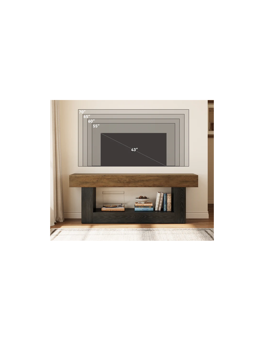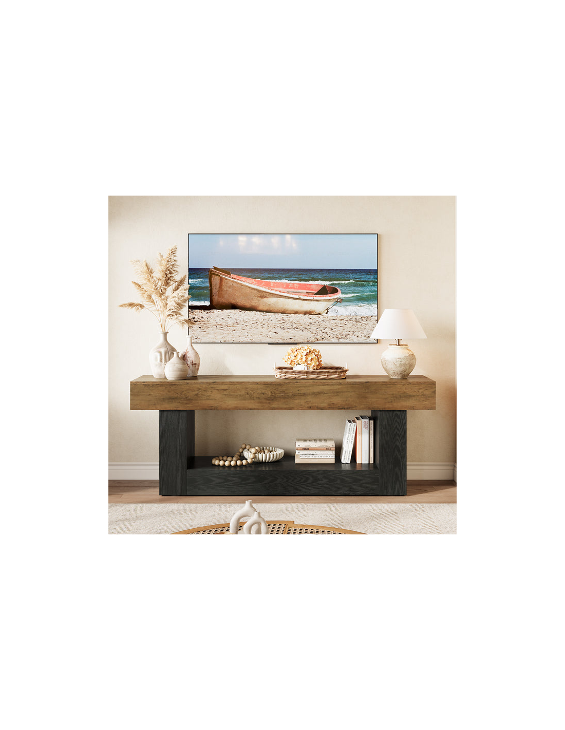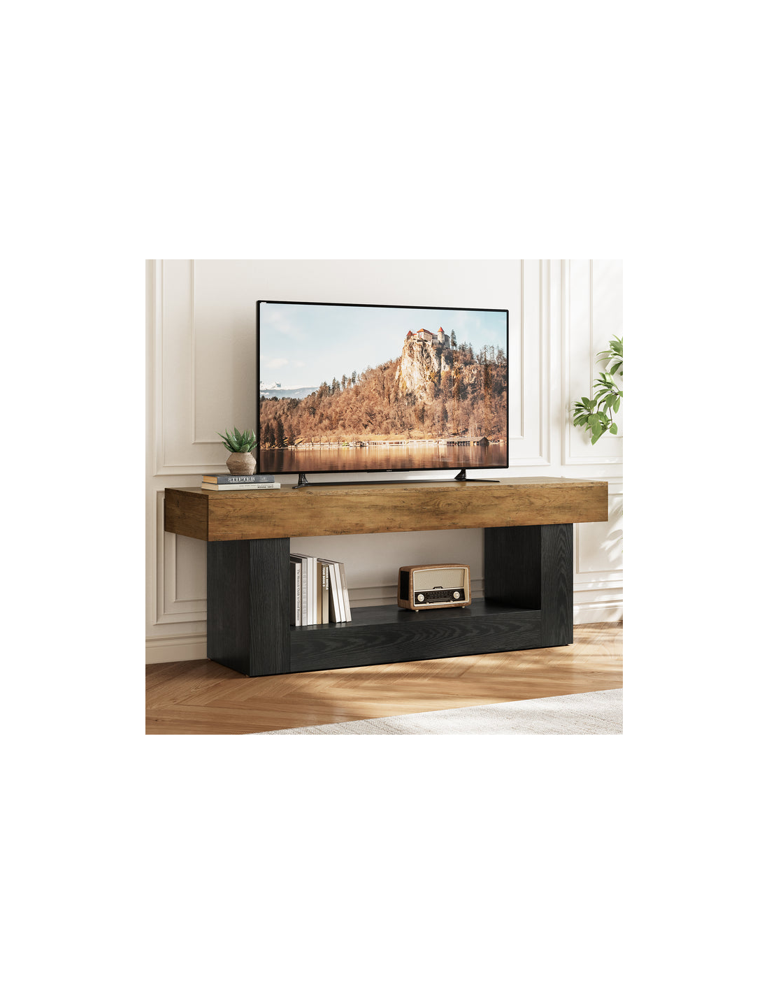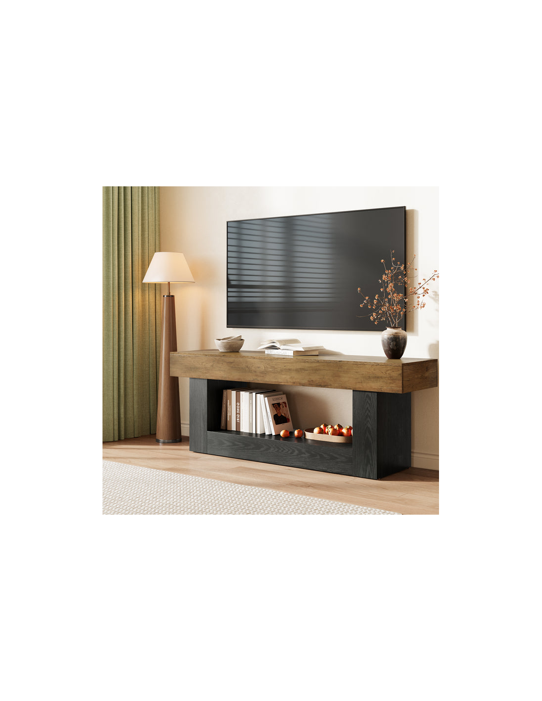 Tvbord i MDF og møbelplade H60 x B160 x D40 cm - Sort/Naturbrun